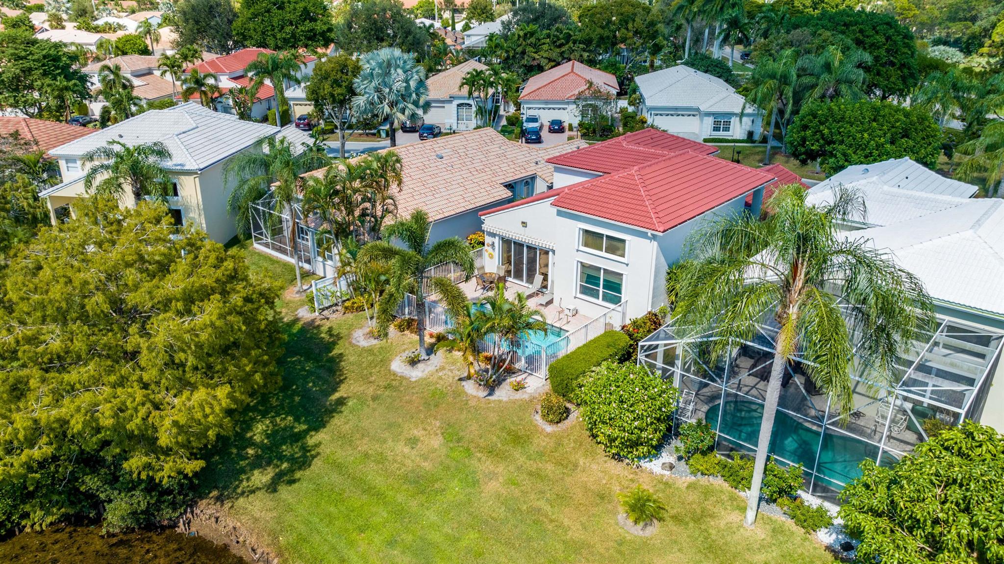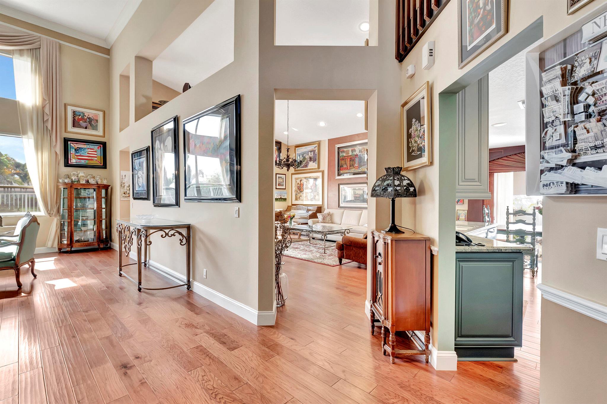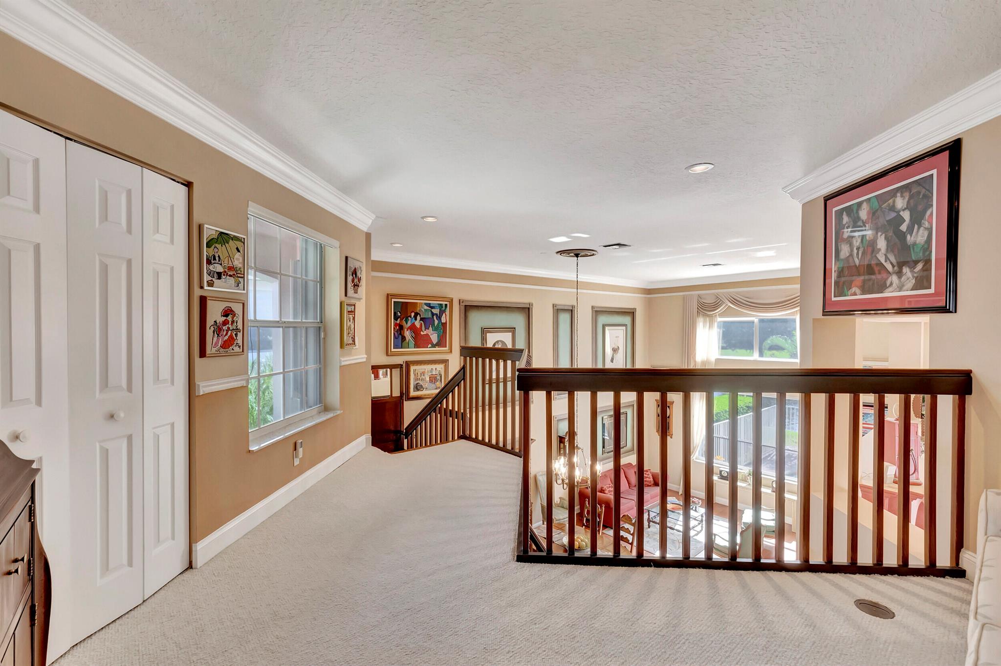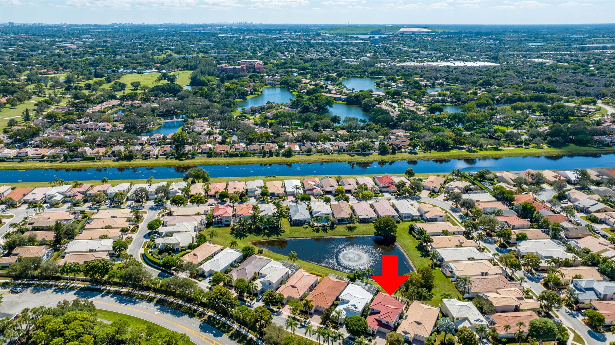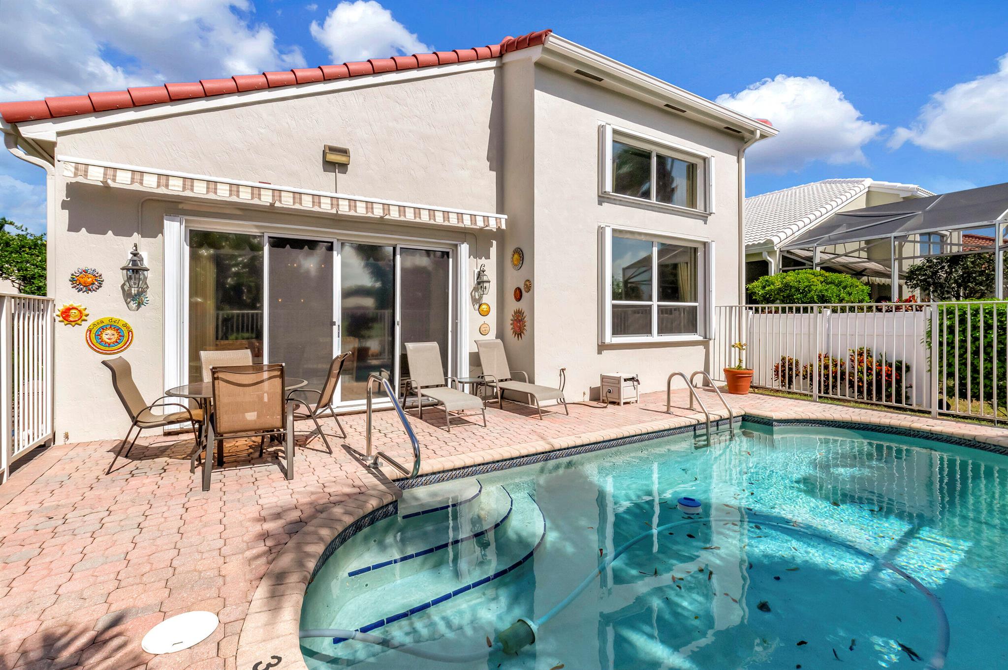 This is the home that is too good to be true ---magnificent lake and fountain view and an inground swimming pool with a retractable awning !!!! Big ticket items have already been completed: New ROOF and HURRICANE shutters on windows and doors ; New WOOD floors and crown and baseboard MOLDING that are decorative and larger than average . Updated KITCHEN and some updates in the BATHROOMS .... All CLOSETS are professionally done with shelving.This community is part of a country club without mandatory membership... and close to shopping . Primary bedroom is on first floor of this two-story home facing south. LED lights throughout the house.