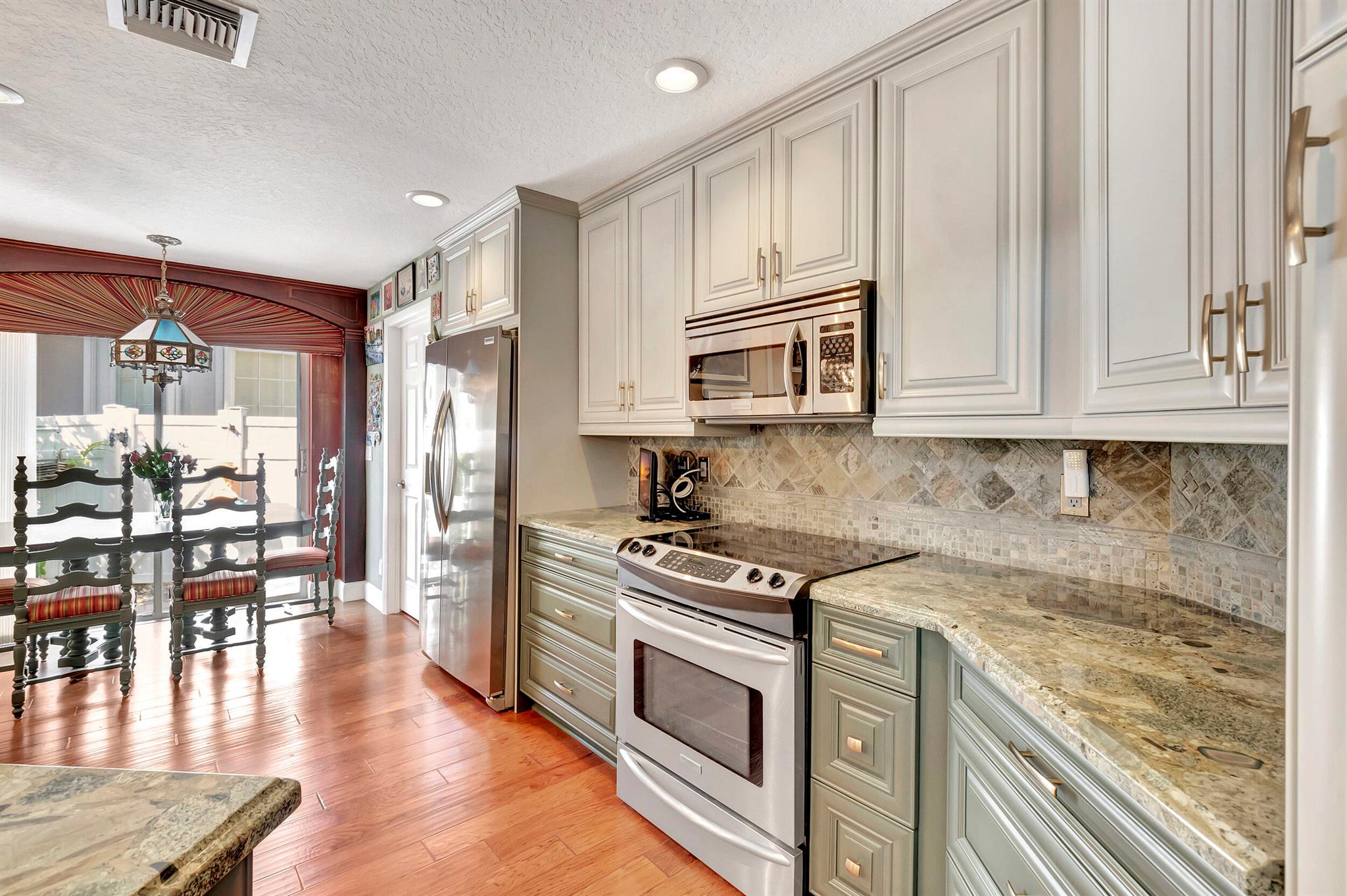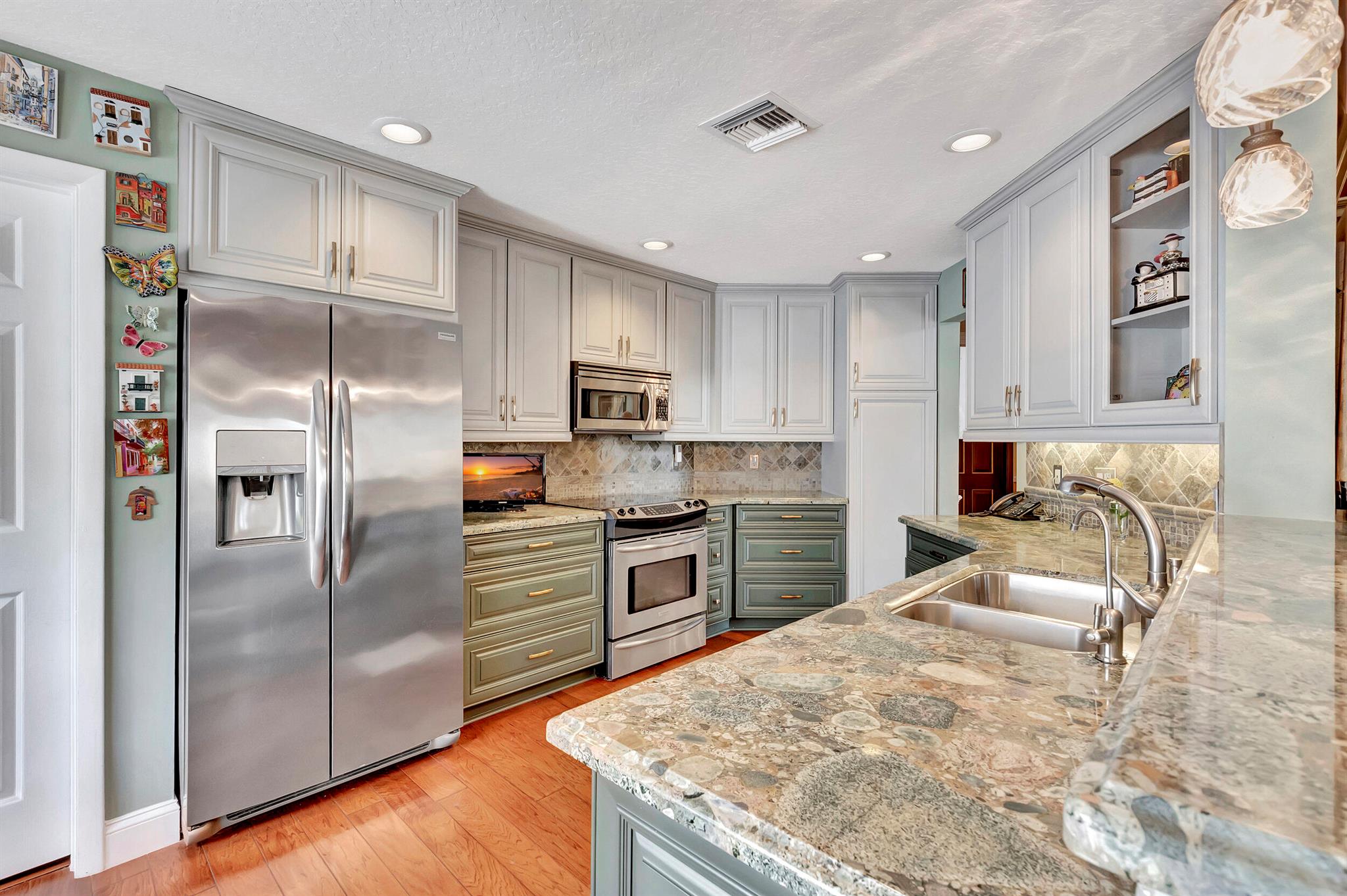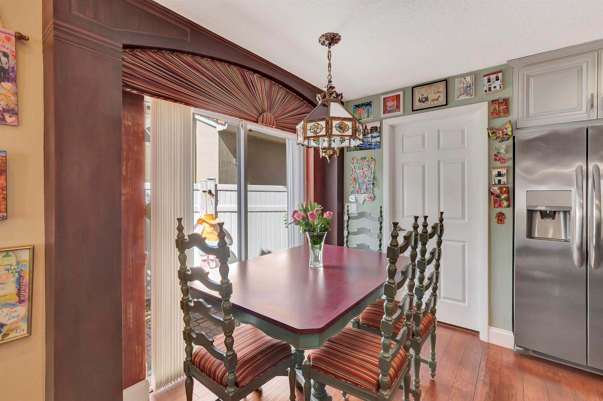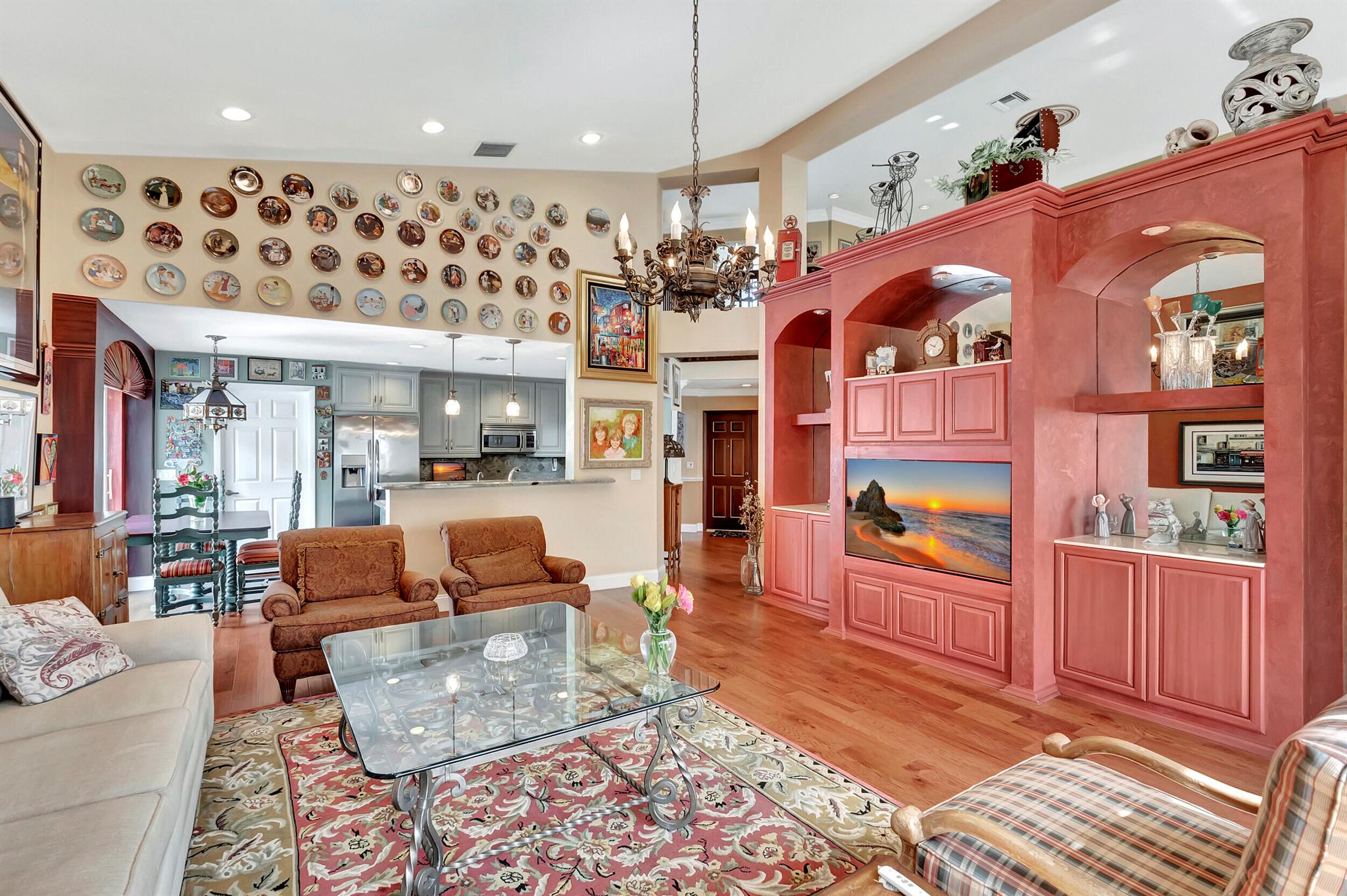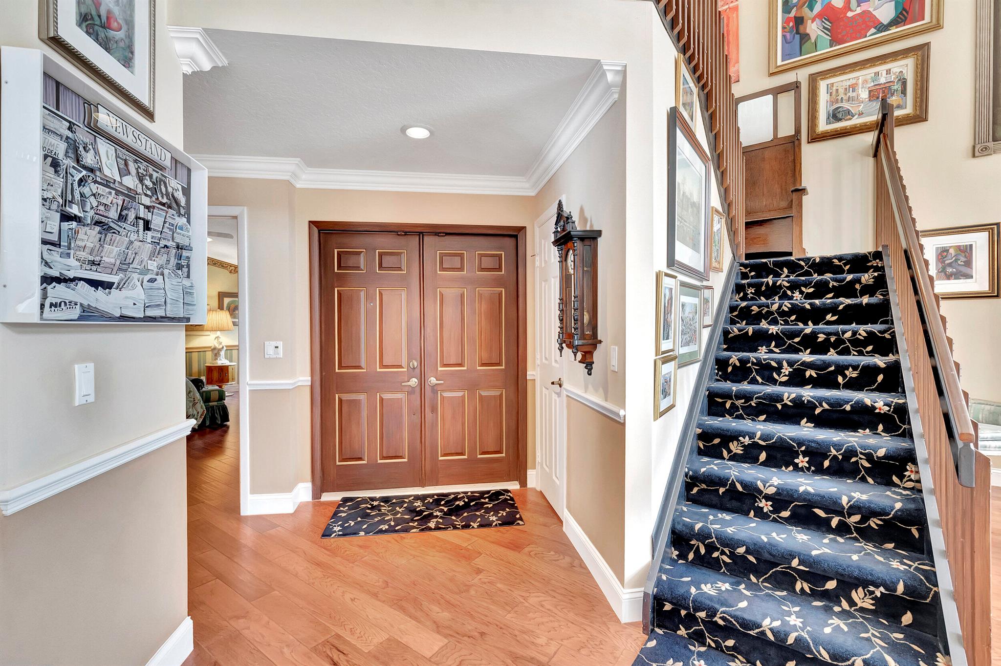 This is the home that is too good to be true ---magnificent lake and fountain view and an inground swimming pool with a retractable awning !!!! Big ticket items have already been completed: New ROOF and HURRICANE shutters on windows and doors ; New WOOD floors and crown and baseboard MOLDING that are decorative and larger than average . Updated KITCHEN and some updates in the BATHROOMS .... All CLOSETS are professionally done with shelving.This community is part of a country club without mandatory membership... and close to shopping . Primary bedroom is on first floor of this two-story home facing south. LED lights throughout the house.