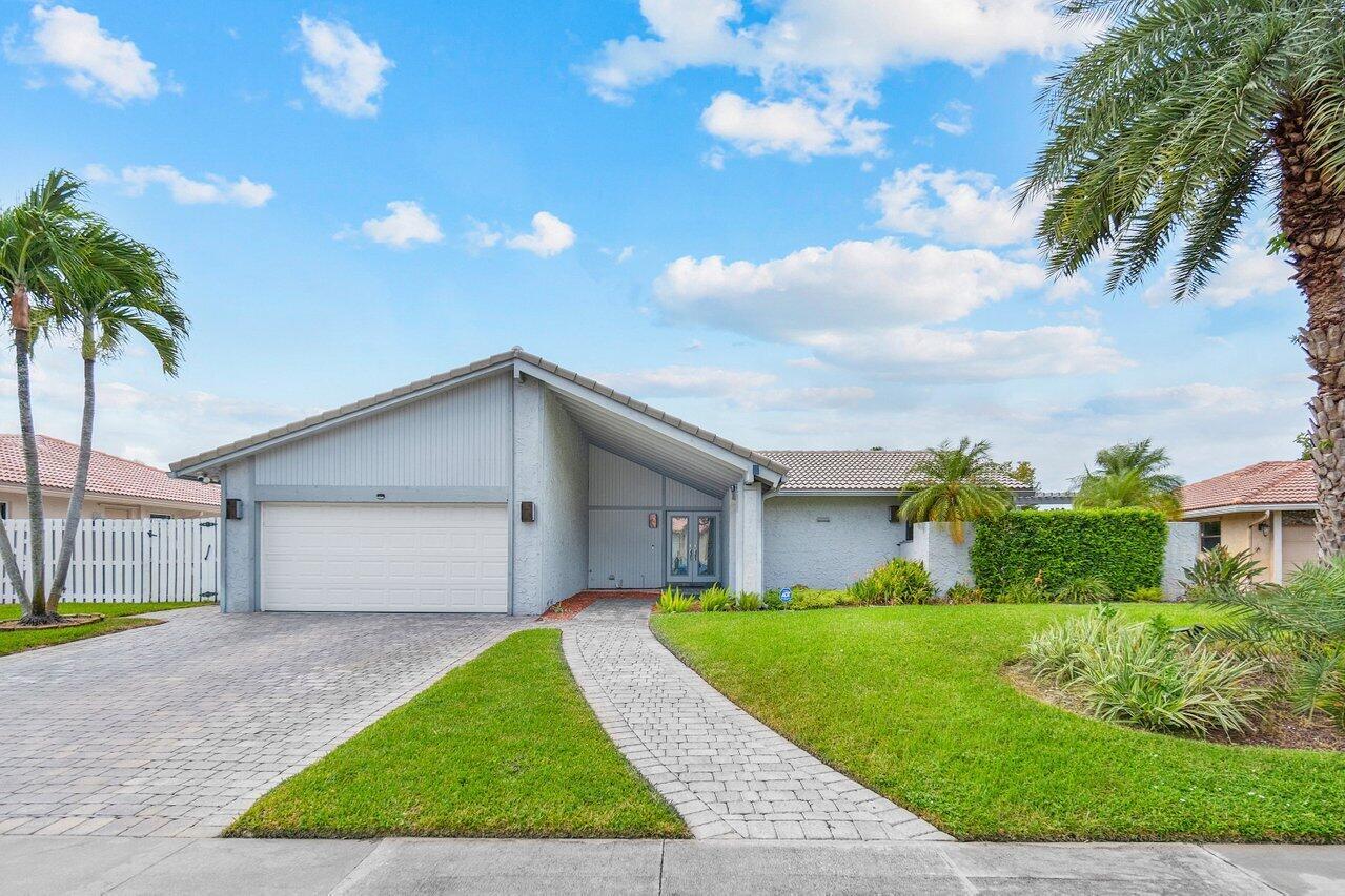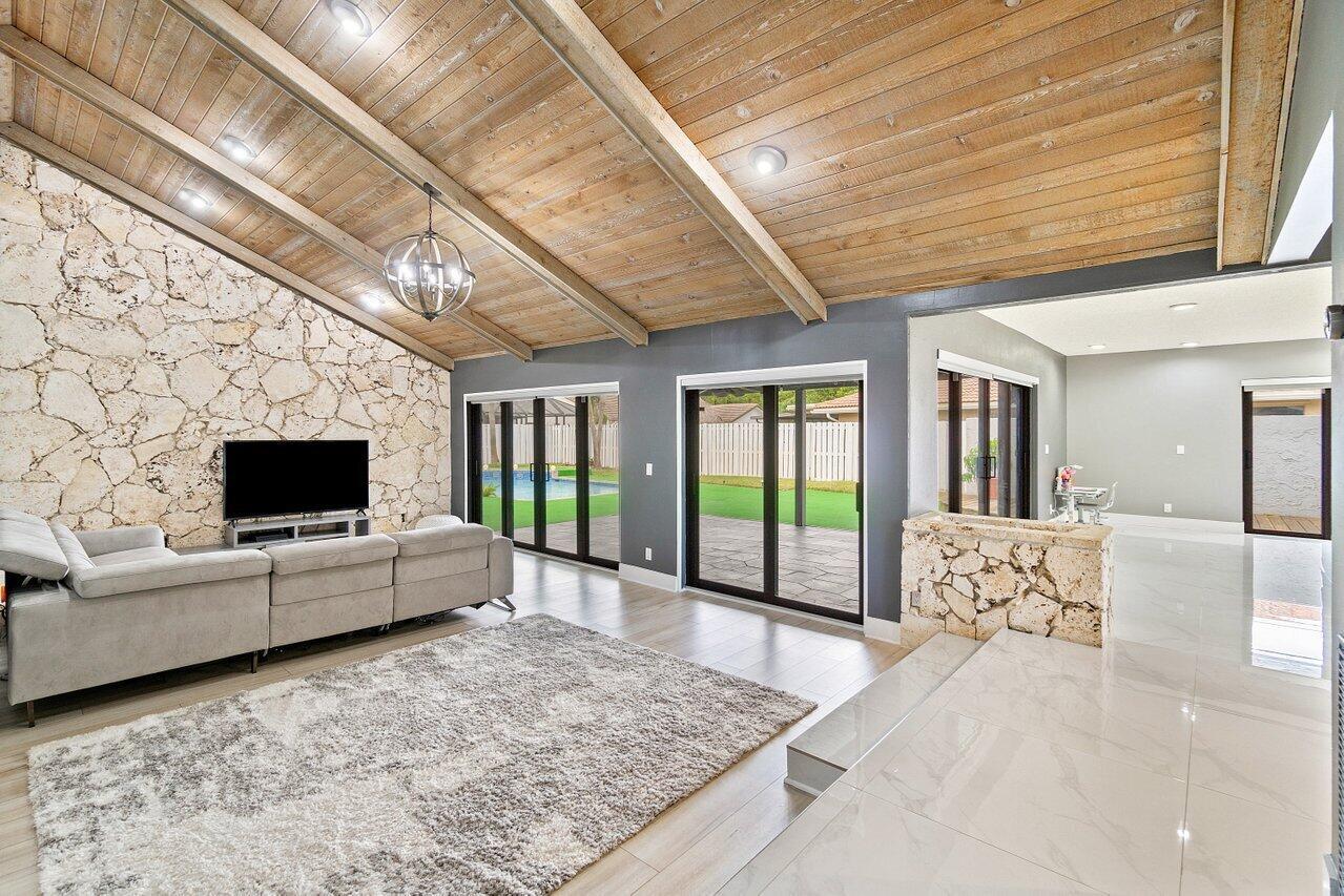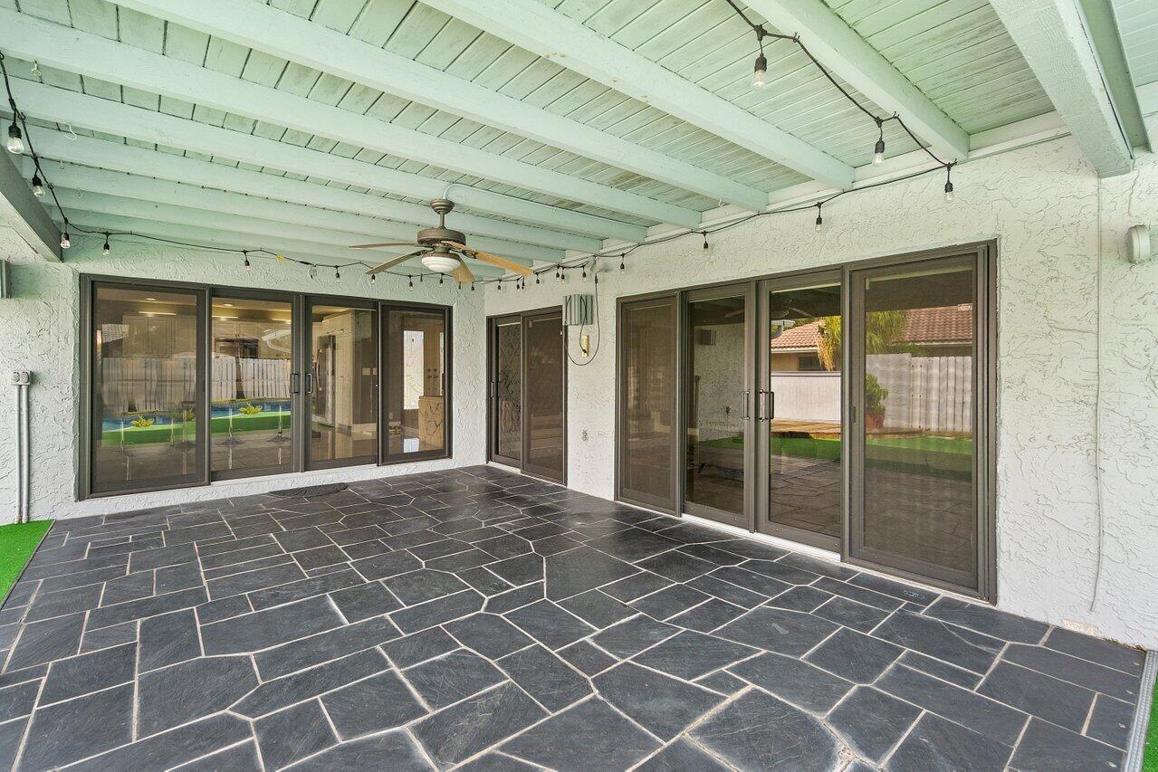 Enjoy the perfect blend of indoor and outdoor living in this exquisite 4-bedroom, 2-bathroom home with pool. lt is nestled in the heart of the coveted community of Jacaranda Lakes. You'll be impressed by the recently remodeled kitchen and primary bathroom, both featuring gorgeous contemporary upgrades. This home boasts all the modern amenities for your enjoyment: new water heater, electric car charger, rain gutters, and multiple outdoor decks thoughtfully designed for your entertainment needs. Privacy is paramount in this completely fenced-in backyard, ensuring a serene and secluded atmosphere. The property is equipped with impact windows and doors throughout, and a recently converted irrigation system. Welcome to a lifestyle of comfort and luxury in this captivating Jacaranda Lakes
