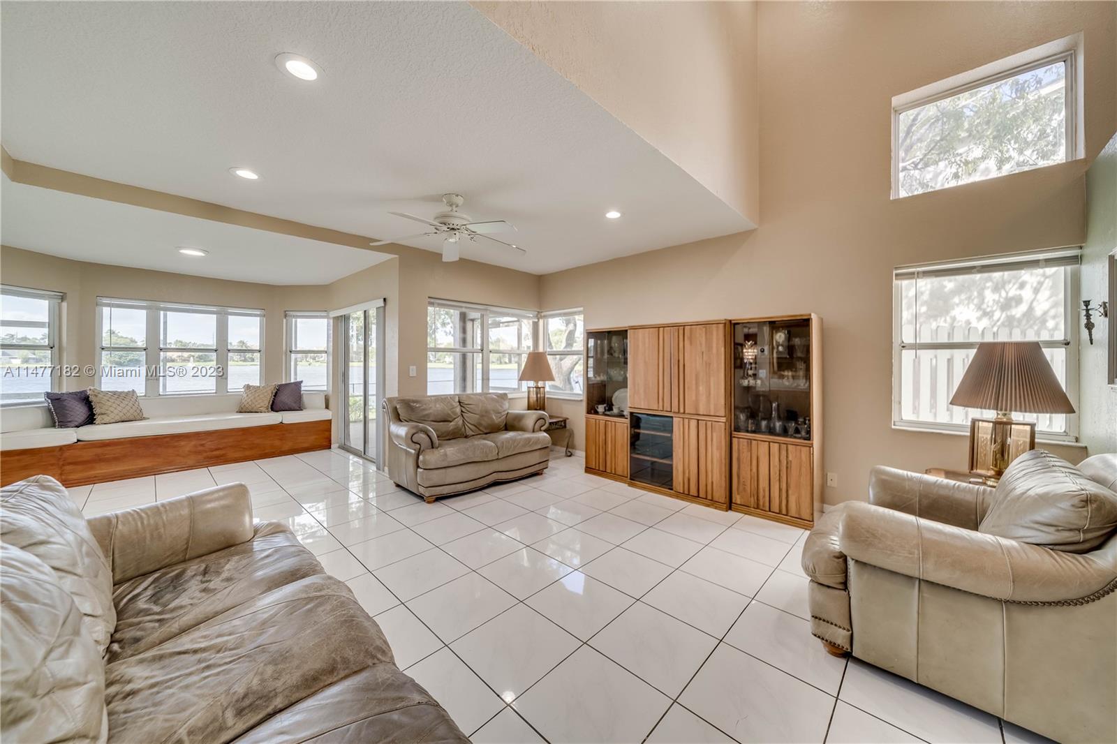 Enjoy sunsets over the water... South Florida is calling. Tranquil water views from this lakefront home set the tone for the relaxing lifestyle you seek. With three spacious bedrooms and a fourth to be used as loft or office space. Relax on the 12x40 lanai with soft breezes and lighted fans to enjoy sunsets by the water Lush backyard boasts a lake-fed sprinkler system for tropical green grass and landscaping. In addition, this property offers a monitored alarm system, perimeter security lights and motion detecting lighting. The roof is just five years old and the property offers a hurricane rated front door, as well as a hurricane rated insulated garage door, storm panels and hardware. The exterior of this home has been recently painted and the interior has been freshened up as well.