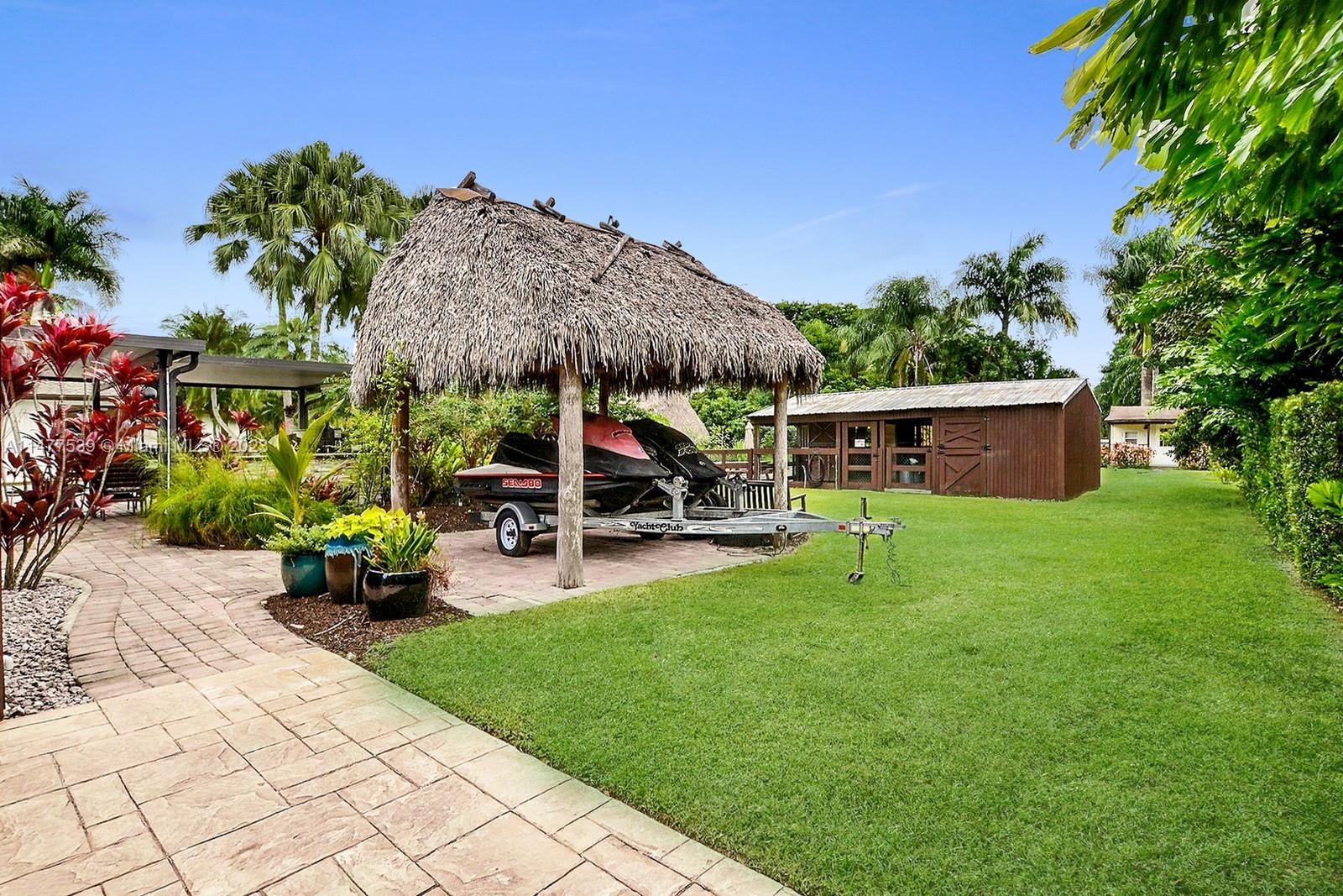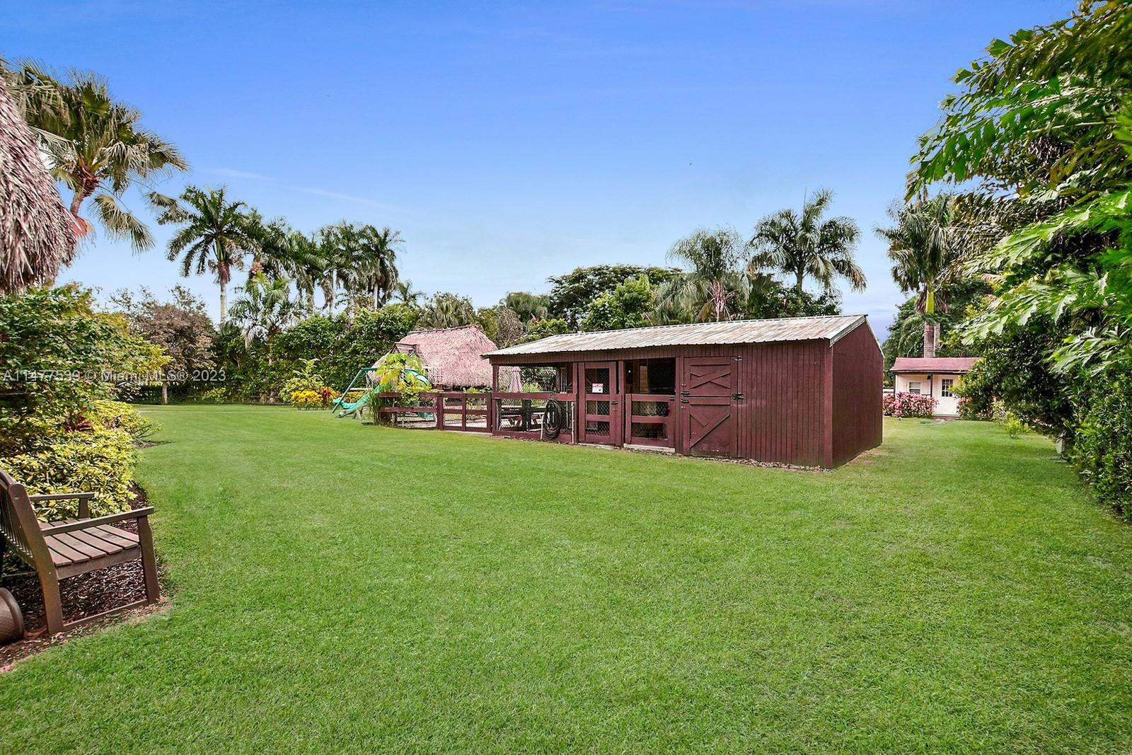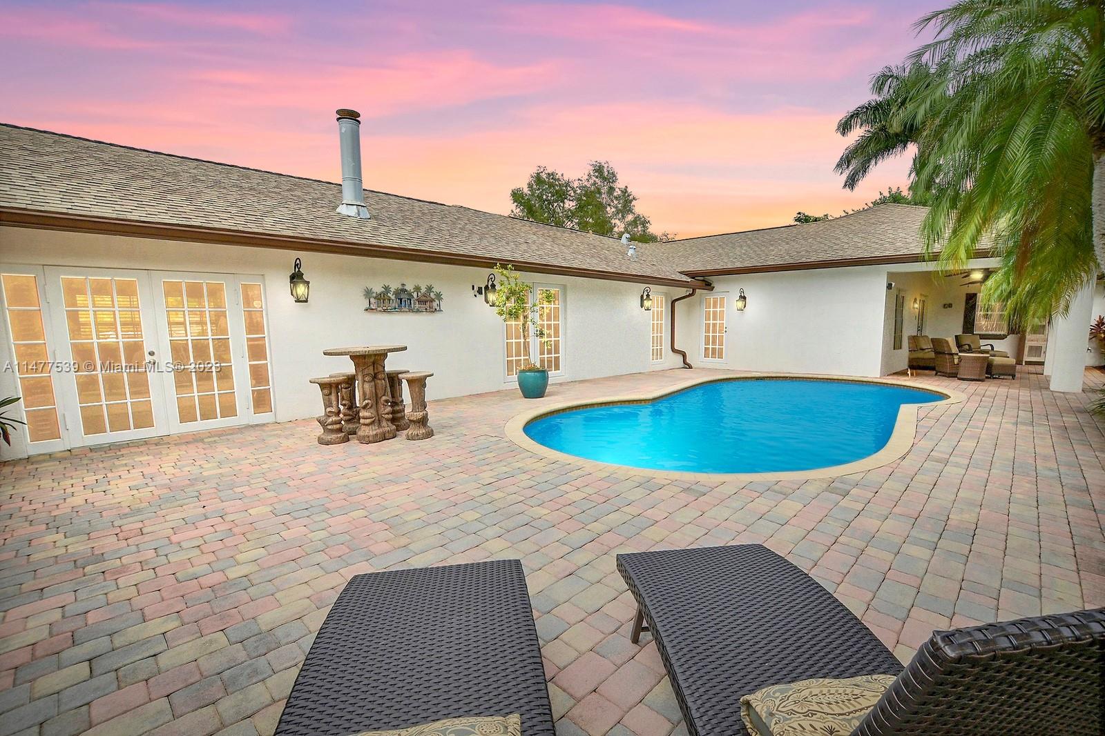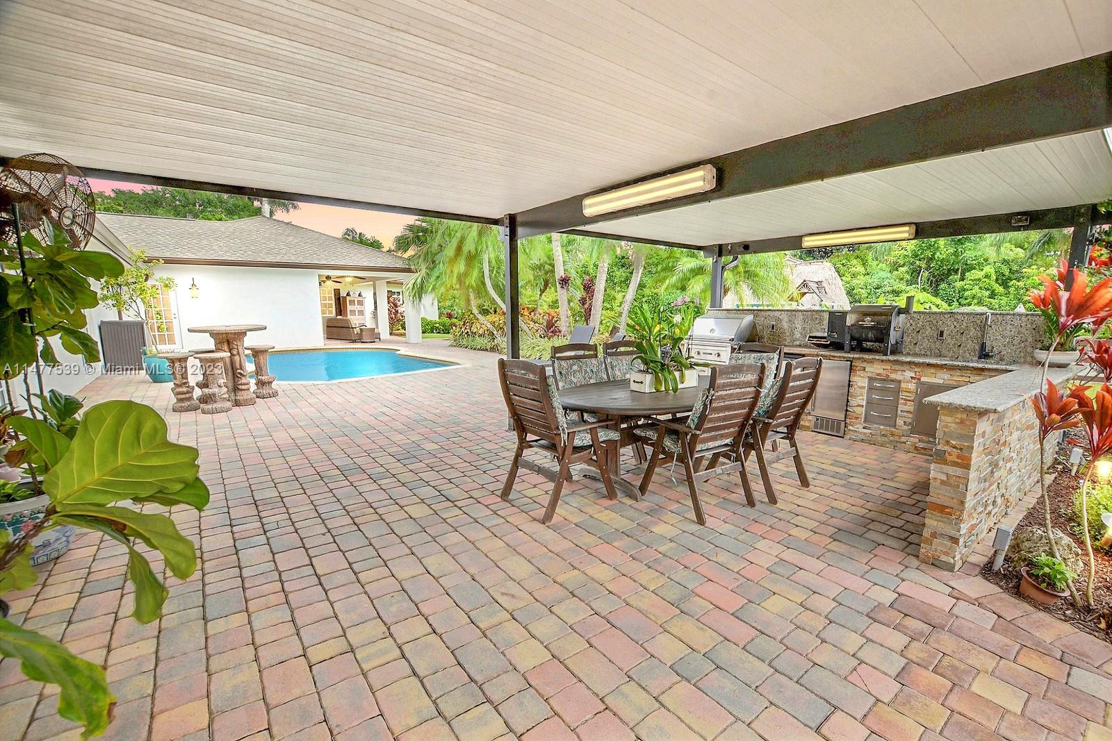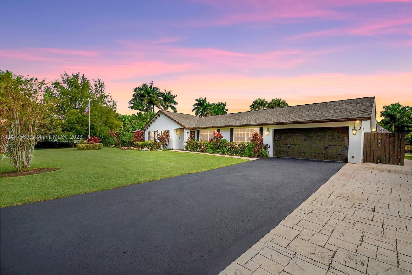 YOUR VERY OWN SOUTHWEST RANCHES PRIVATE RETREAT AWAITS! GORGEOUS HOME FEATURING CHEF'S KITCHEN W ISLAND, STAINLESS APPLIANCES, VIKING FRIDGE, BOSCH COOKTOP, OVEN & WARMING DRAWER, MIELE COFFEE MAKER, WOOD CABINETS IN KITCHEN & BEAUTIFUL WET BAR; HIGH CEILINGS W ELEGANT BEAMS, ROMANTIC WOOD BURNING FIREPLACE, MARBLE FLOORS. GRAND PRIMARY SUITE W 2 CLOSETS, SPA-LIKE BATH W 2 VANITIES, JETTED TUB & WALK-IN SHOWER. SOLID DOORS INSIDE, IMPACT WINDOWS & GARAGE DOORS. PERFECT HOME TO ENTERTAIN, THERE IS SOMETHING FUN FOR ALL AGES. OUTDOOR FULLY EQUIPPED KITCHEN W ICEMAKER, FREEZER, STAINLESS BBQ & DRAWERS, REFRESHING POOL, PLAYGROUND, 2 CHICKEE HUTS W PAVER FLOORS, SEVERAL VARIETIES OF FRUIT TREES, VEGETABLE GARDEN & CHICKEN COOP. PARK 10+ CARS BETWEEN GARAGE & DRIVEWAYS + ROOM FOR RV PARKING.