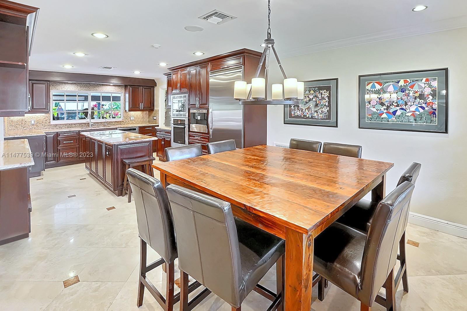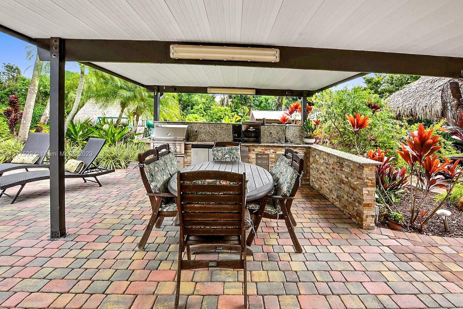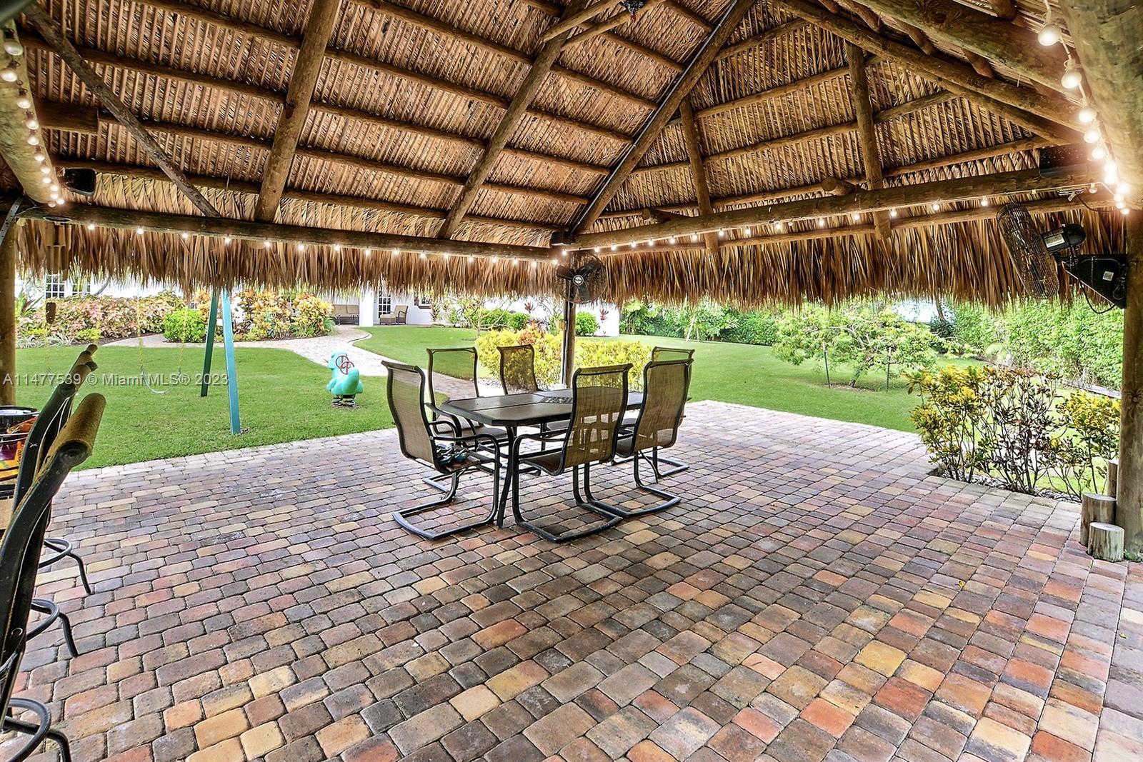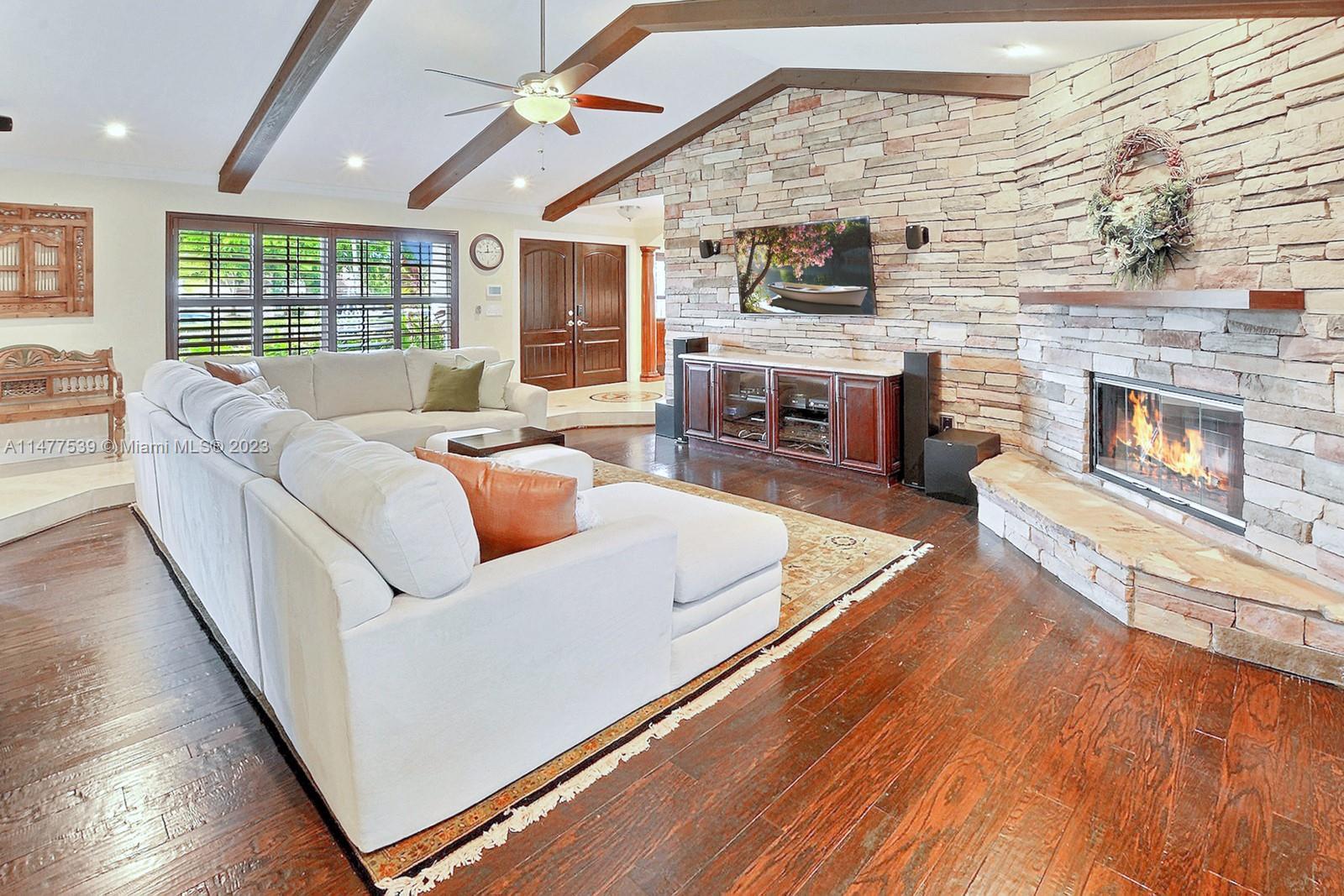 YOUR VERY OWN SOUTHWEST RANCHES PRIVATE RETREAT AWAITS! GORGEOUS HOME FEATURING CHEF'S KITCHEN W ISLAND, STAINLESS APPLIANCES, VIKING FRIDGE, BOSCH COOKTOP, OVEN & WARMING DRAWER, MIELE COFFEE MAKER, WOOD CABINETS IN KITCHEN & BEAUTIFUL WET BAR; HIGH CEILINGS W ELEGANT BEAMS, ROMANTIC WOOD BURNING FIREPLACE, MARBLE FLOORS. GRAND PRIMARY SUITE W 2 CLOSETS, SPA-LIKE BATH W 2 VANITIES, JETTED TUB & WALK-IN SHOWER. SOLID DOORS INSIDE, IMPACT WINDOWS & GARAGE DOORS. PERFECT HOME TO ENTERTAIN, THERE IS SOMETHING FUN FOR ALL AGES. OUTDOOR FULLY EQUIPPED KITCHEN W ICEMAKER, FREEZER, STAINLESS BBQ & DRAWERS, REFRESHING POOL, PLAYGROUND, 2 CHICKEE HUTS W PAVER FLOORS, SEVERAL VARIETIES OF FRUIT TREES, VEGETABLE GARDEN & CHICKEN COOP. PARK 10+ CARS BETWEEN GARAGE & DRIVEWAYS + ROOM FOR RV PARKING.
