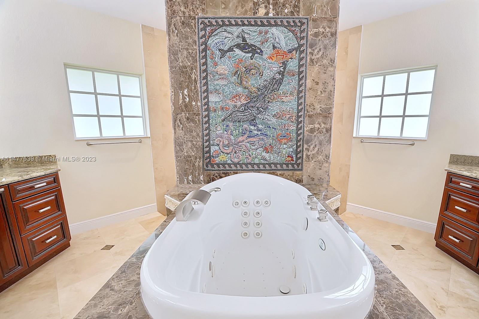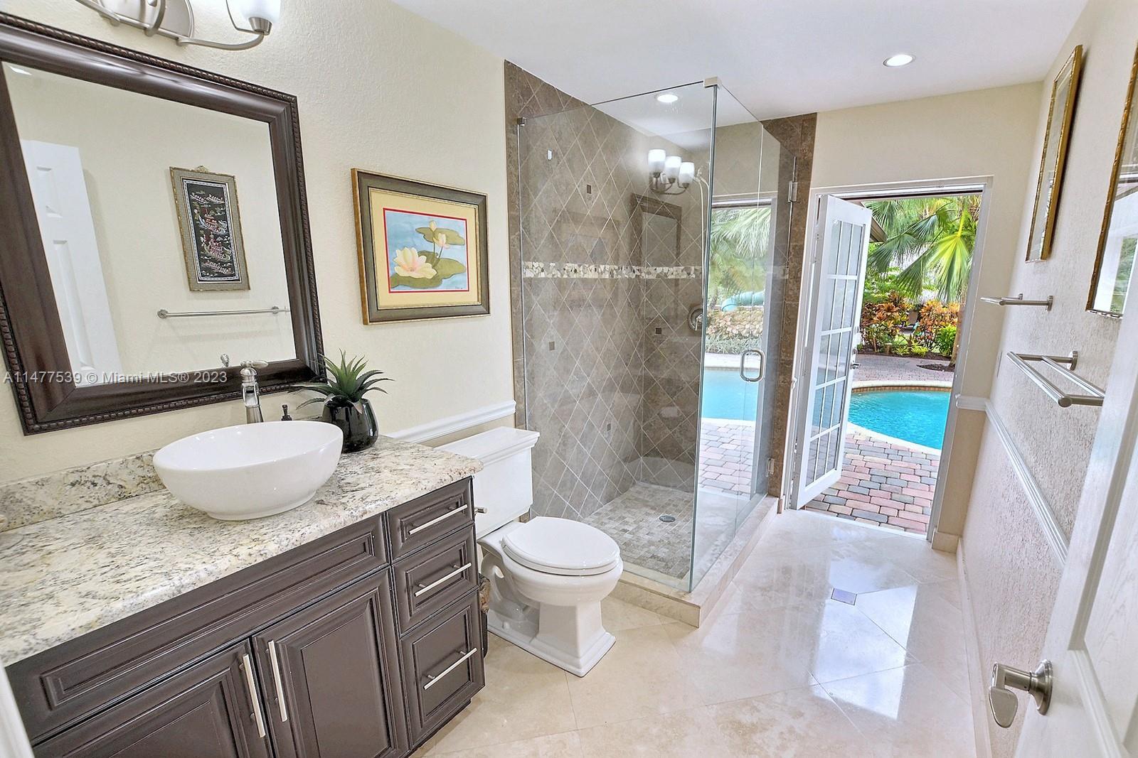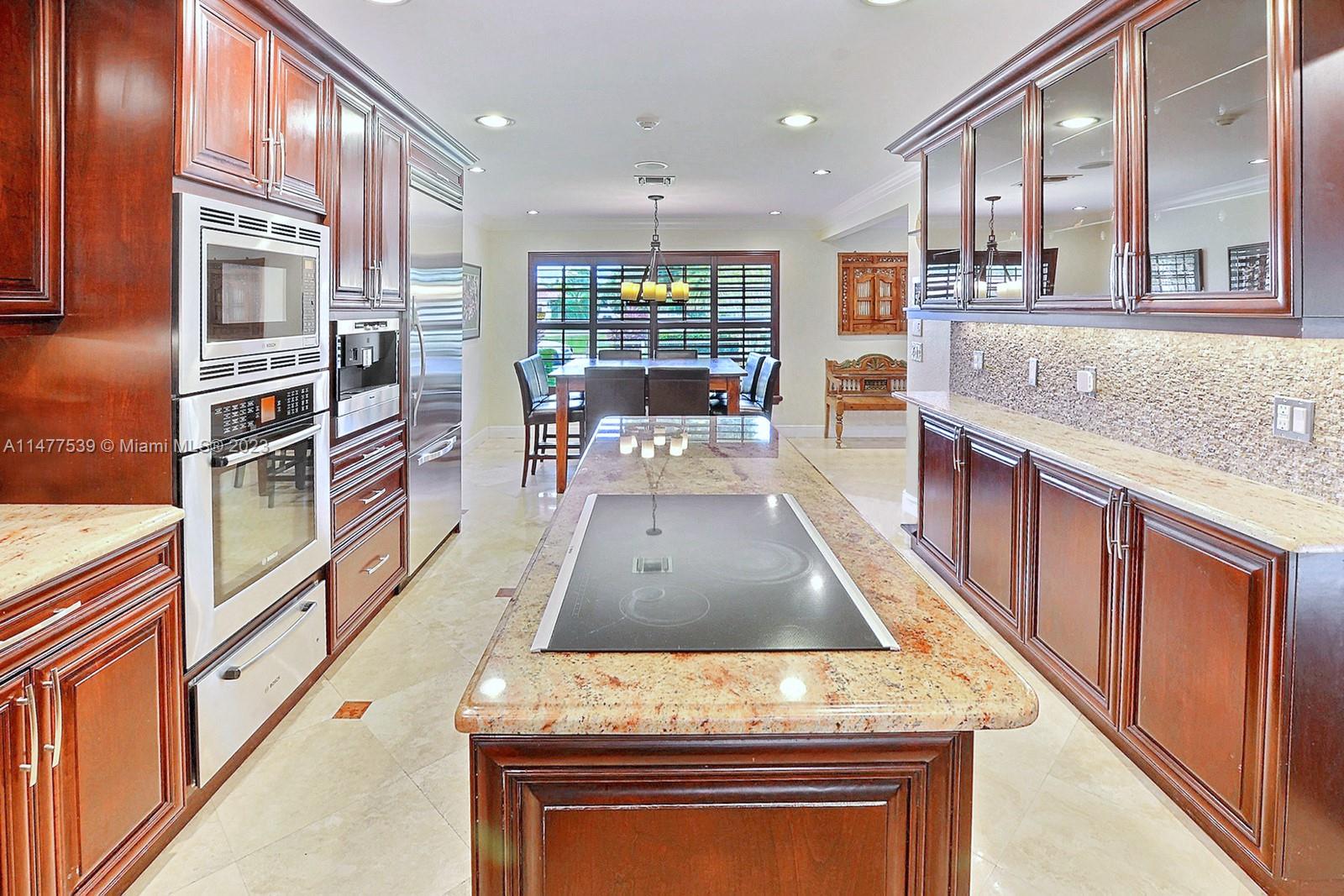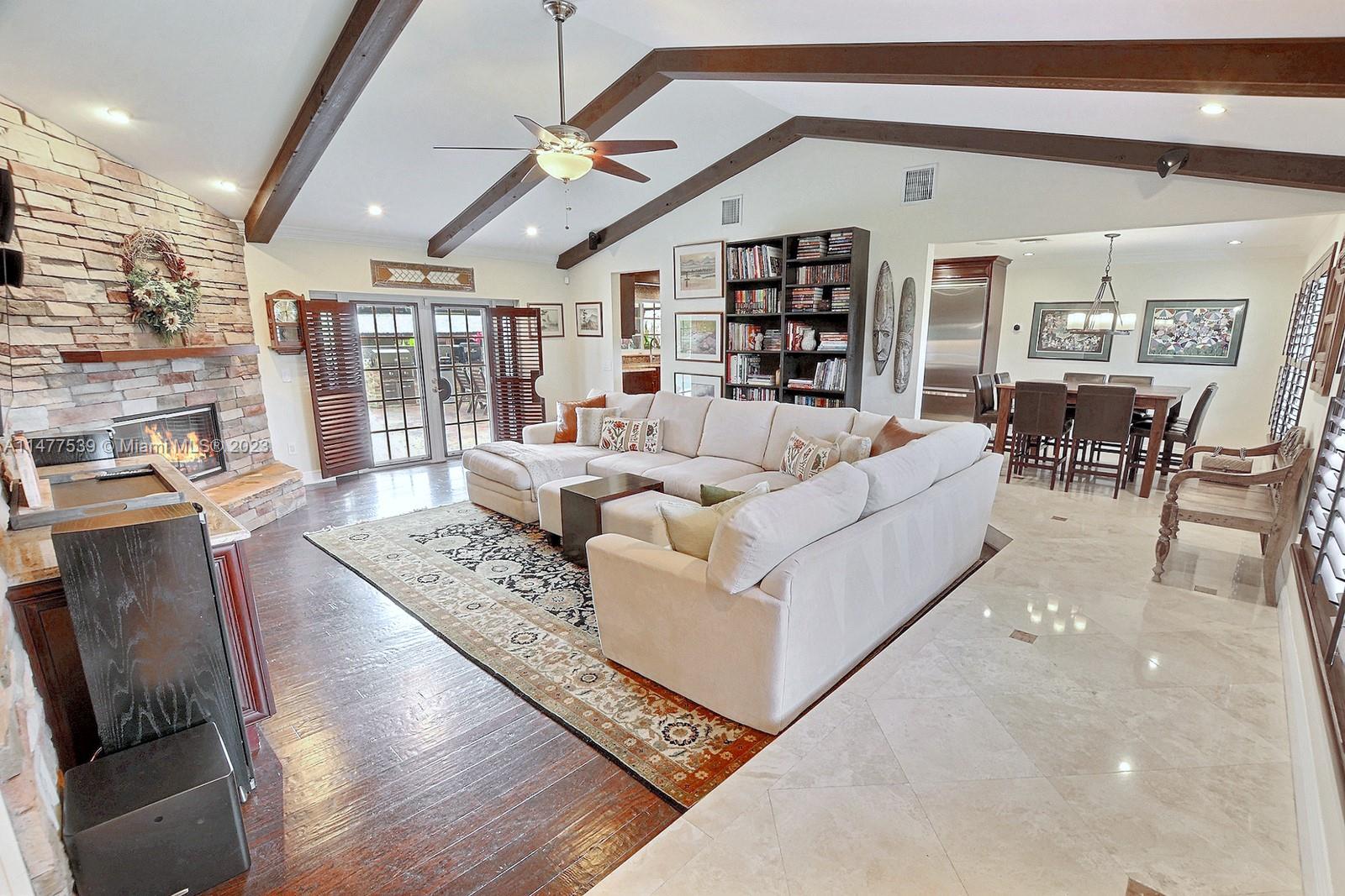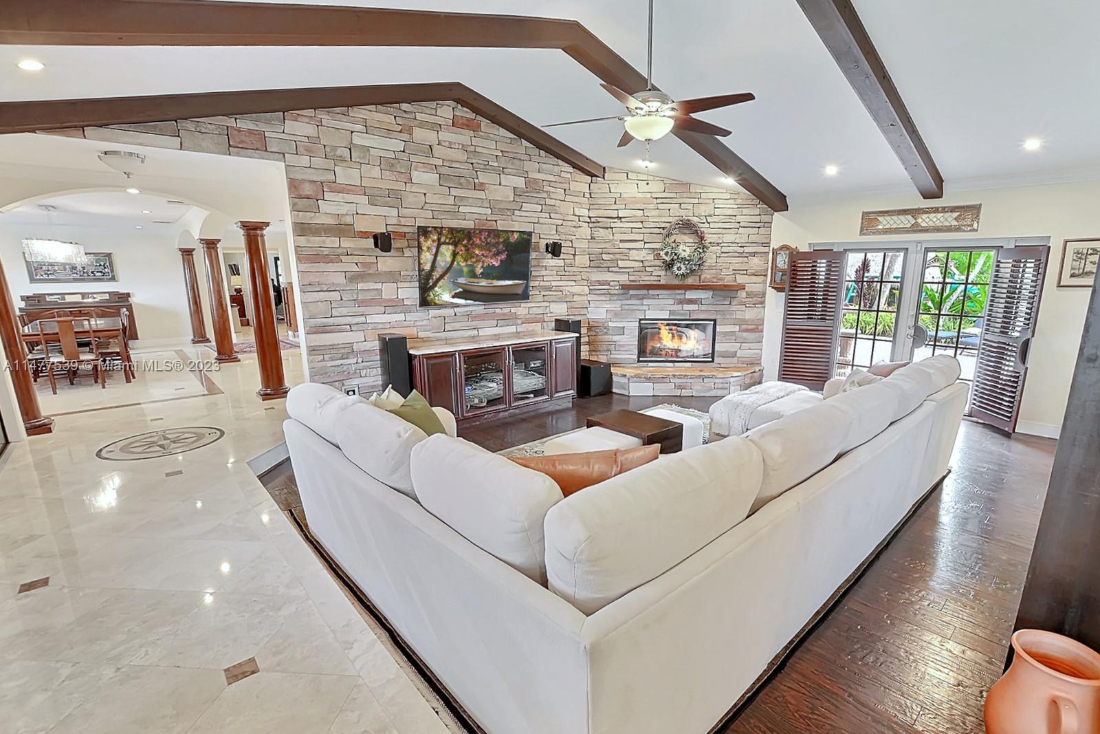 YOUR VERY OWN SOUTHWEST RANCHES PRIVATE RETREAT AWAITS! GORGEOUS HOME FEATURING CHEF'S KITCHEN W ISLAND, STAINLESS APPLIANCES, VIKING FRIDGE, BOSCH COOKTOP, OVEN & WARMING DRAWER, MIELE COFFEE MAKER, WOOD CABINETS IN KITCHEN & BEAUTIFUL WET BAR; HIGH CEILINGS W ELEGANT BEAMS, ROMANTIC WOOD BURNING FIREPLACE, MARBLE FLOORS. GRAND PRIMARY SUITE W 2 CLOSETS, SPA-LIKE BATH W 2 VANITIES, JETTED TUB & WALK-IN SHOWER. SOLID DOORS INSIDE, IMPACT WINDOWS & GARAGE DOORS. PERFECT HOME TO ENTERTAIN, THERE IS SOMETHING FUN FOR ALL AGES. OUTDOOR FULLY EQUIPPED KITCHEN W ICEMAKER, FREEZER, STAINLESS BBQ & DRAWERS, REFRESHING POOL, PLAYGROUND, 2 CHICKEE HUTS W PAVER FLOORS, SEVERAL VARIETIES OF FRUIT TREES, VEGETABLE GARDEN & CHICKEN COOP. PARK 10+ CARS BETWEEN GARAGE & DRIVEWAYS + ROOM FOR RV PARKING.