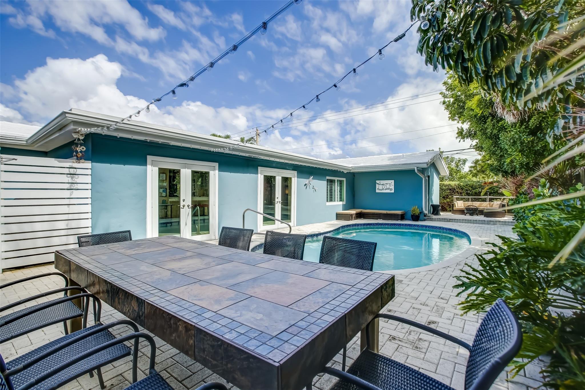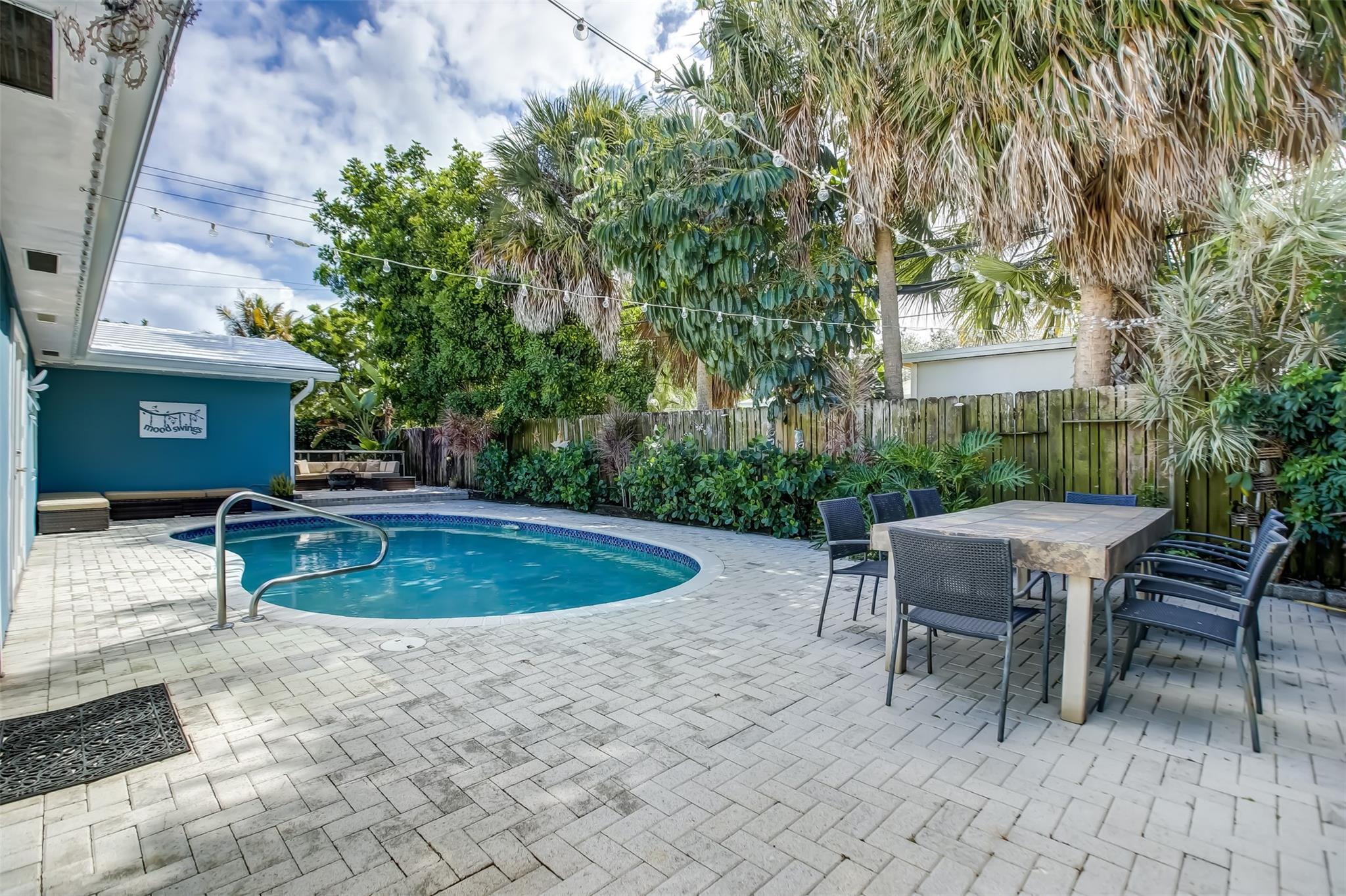 Charming family home in the heart of Imperial Point. Spacious open floor plan with 3 bedrooms and 2 baths. Perfect for entertaining with over 2,100 sq ft with multiple living areas, formal dining area & 500+ sq ft Florida Room. Kitchen offers updated cabinetry, stainless steel appliances & large serving counter & bar. Two sets of French doors offer an abundance of natural light & lead to your tropical oasis of pool area & backyard with lush landscaping offering privacy. Master suite with cabana bath. All impact windows & doors throughout. Large circular brick paver driveway. Oversized corner lot within 2 miles to the beach. Prime location with sidewalk lined street perfect for kids. Highly rated McNab elementary district & very close proximity to Pine Crest, Westminster & Cardinal Gibbons.