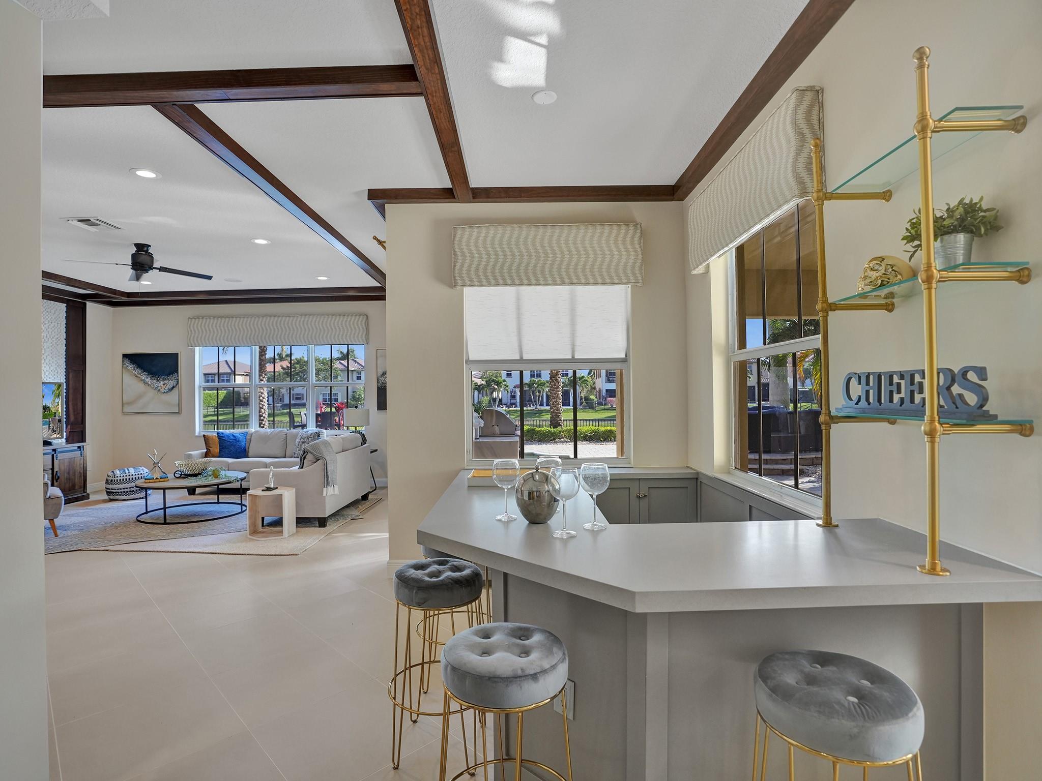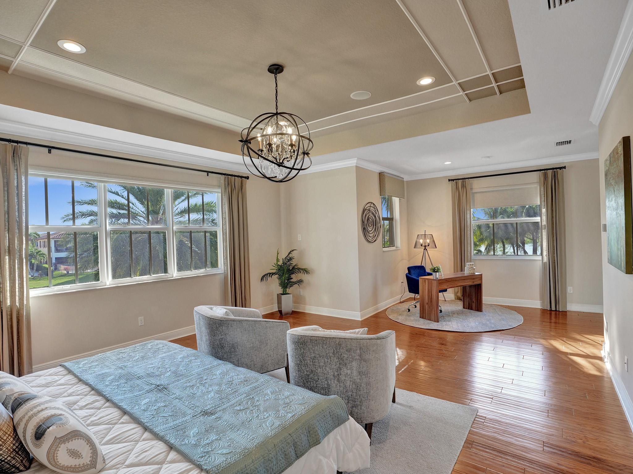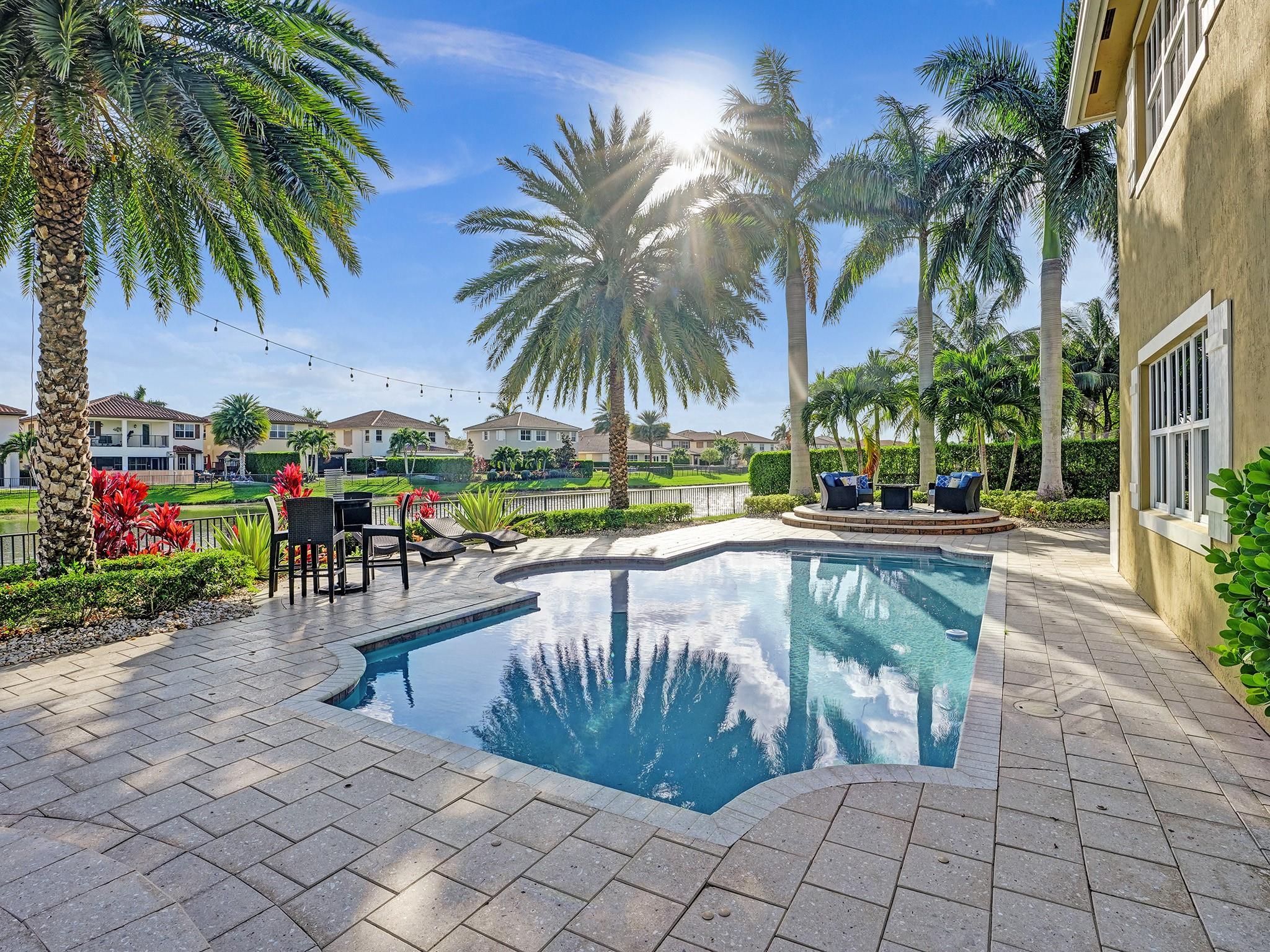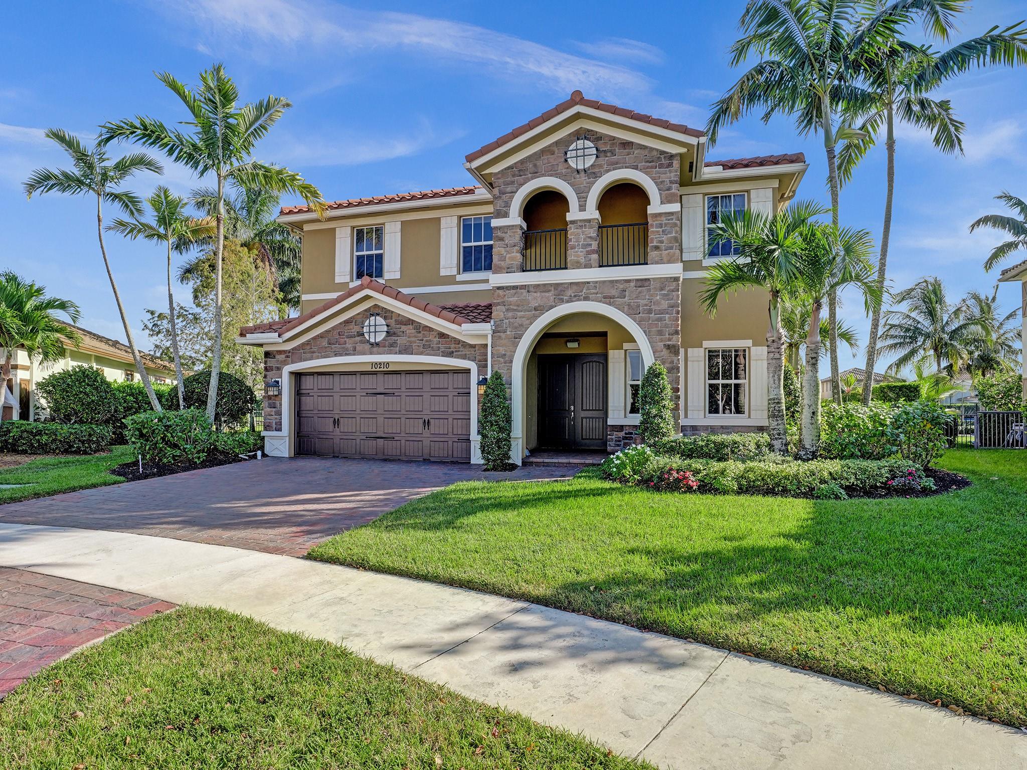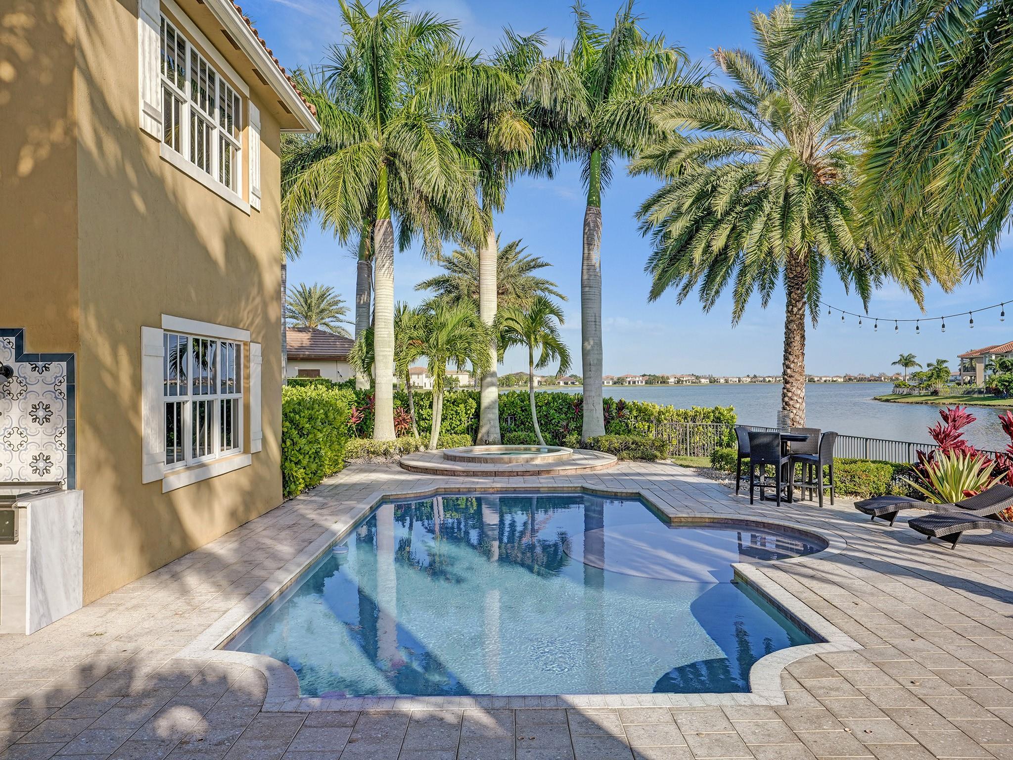 Gorgeous former stunning model! This Waterton over 4,064 square feet is largest home in the Executive collection on a point water lot on model row in beautiful MiraLago. This home is superbly upgraded with all the bells and whistles, has 5 Bedrooms (one down) and 4 full baths. Large living room, formal dining, built in bar and family room make this the perfect home for entertaining. Large primary suite with sitting area. Very generous sized upstairs game room. Enjoy sunrise and sunset in your backyard sanctuary on over 110 feet of lake frontage. Spectacular pool with separate spa and several seating areas, outdoor kitchen and green spaces. Amazing gated community; resort-style amenities, including gyms, tennis, spin room, basketball, billiards room, tot lots, kids Water Parks and ballroom.