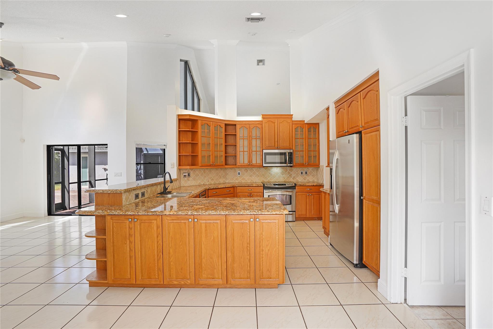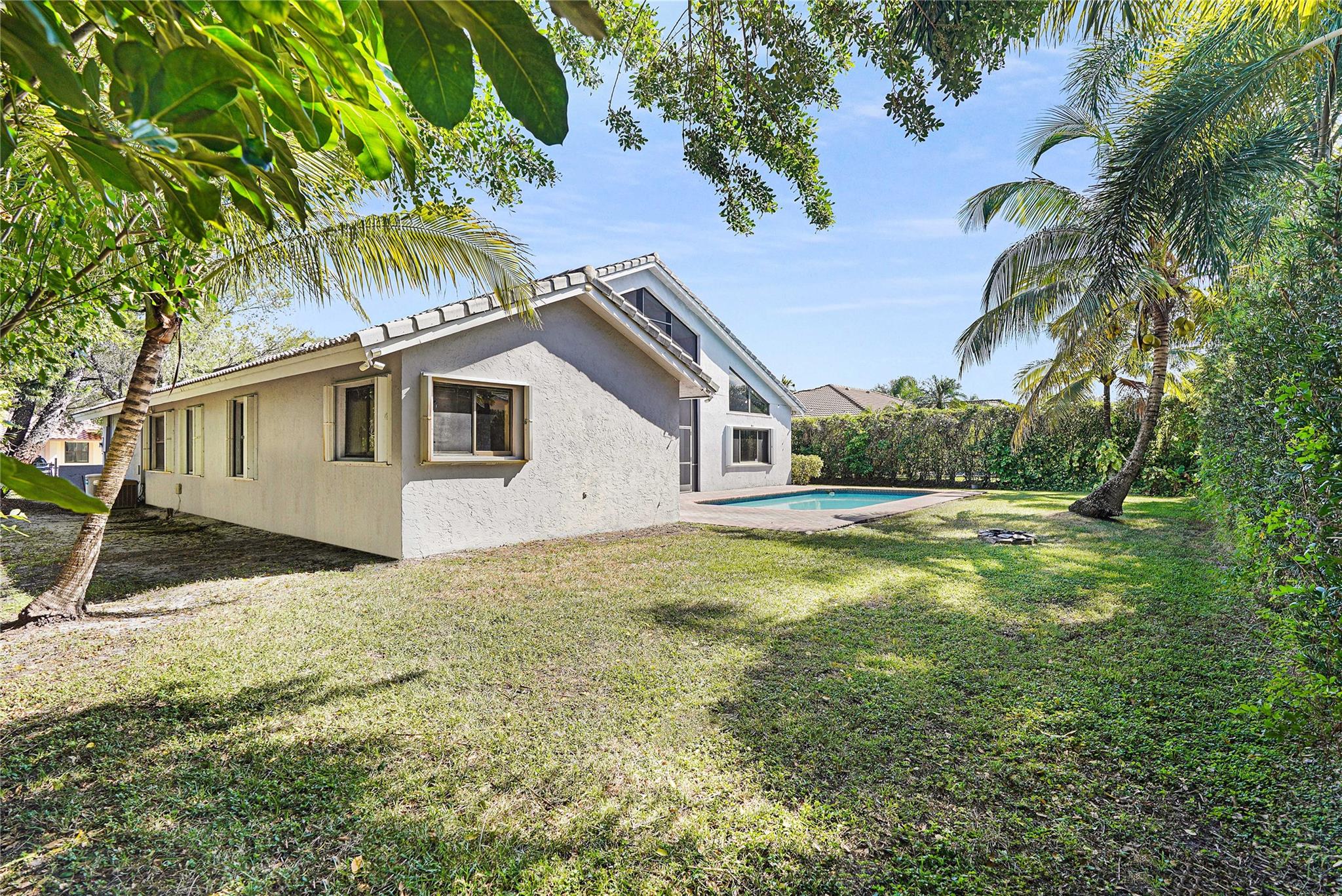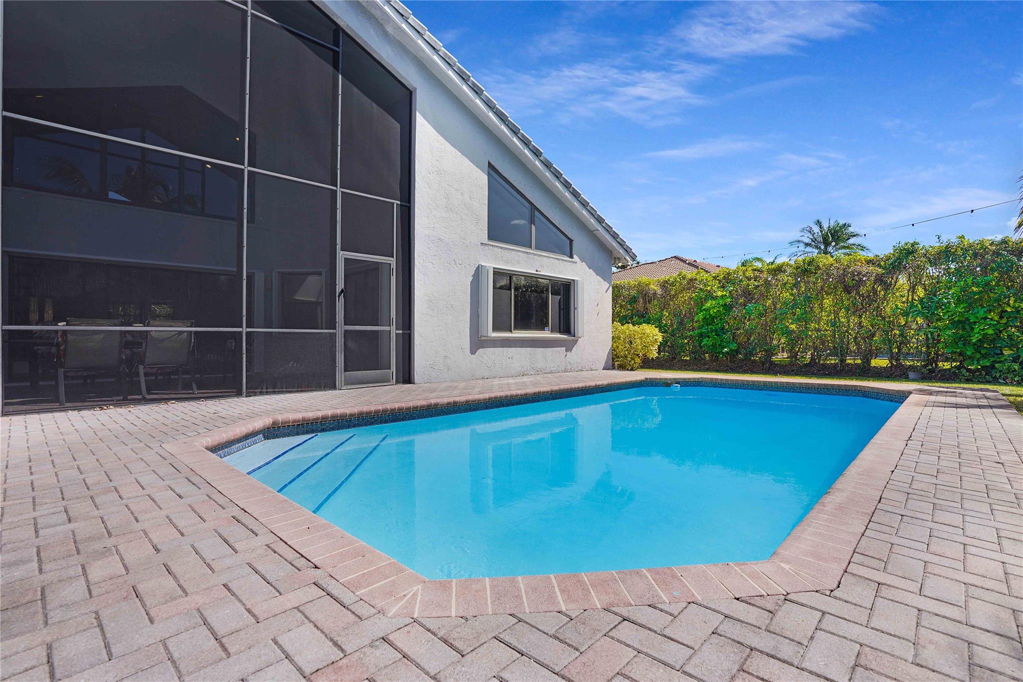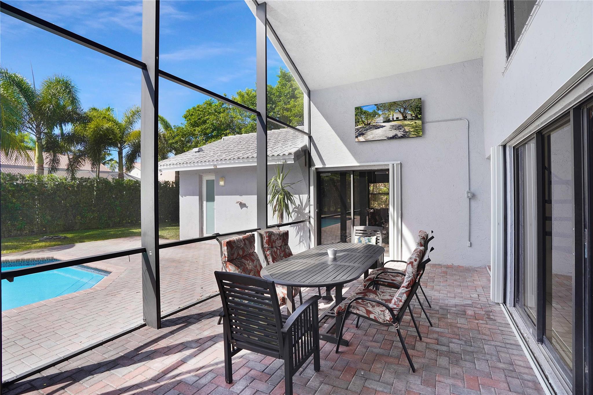 This exquisite home boasts 20 ft volume ceilings offering natural lighting, spacious & open ambiance designed for entertainment, with distinct formal living & family room spaces that accommodate both intimate gatherings & larger social events. Unique features include 100 sq ft loft upstairs, eat-in kitchen with granite countertops, travertine backsplash, & 42 inch cabinetry full of storage. The outdoors greets you with a perfect screened-in patio, resort style pool & expansive backyard large enough for all your entertaining during your events. Zone to A+ elementary school, 0.7 mi. from Chabad, 1.1 miles from Sawgrass trailhead where you can enjoy beautiful sunsets. Roof is 2006, all windows have storm protection & partial impact doors & windows, crown molding throughout, water heater 2018.