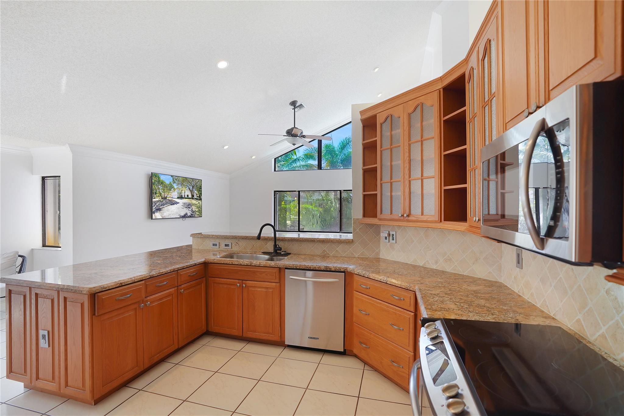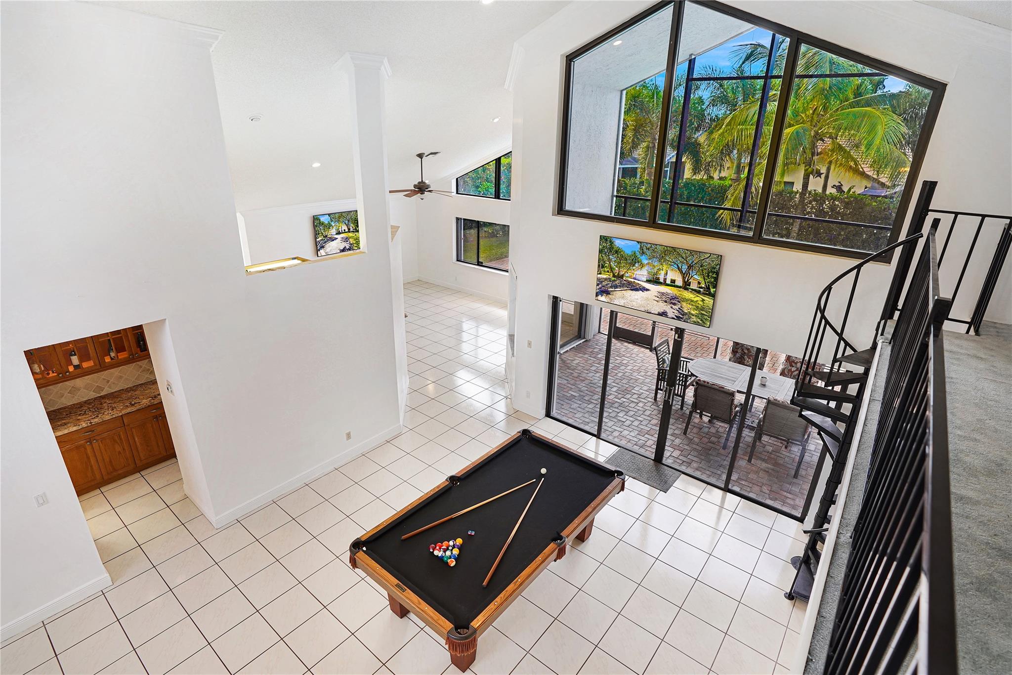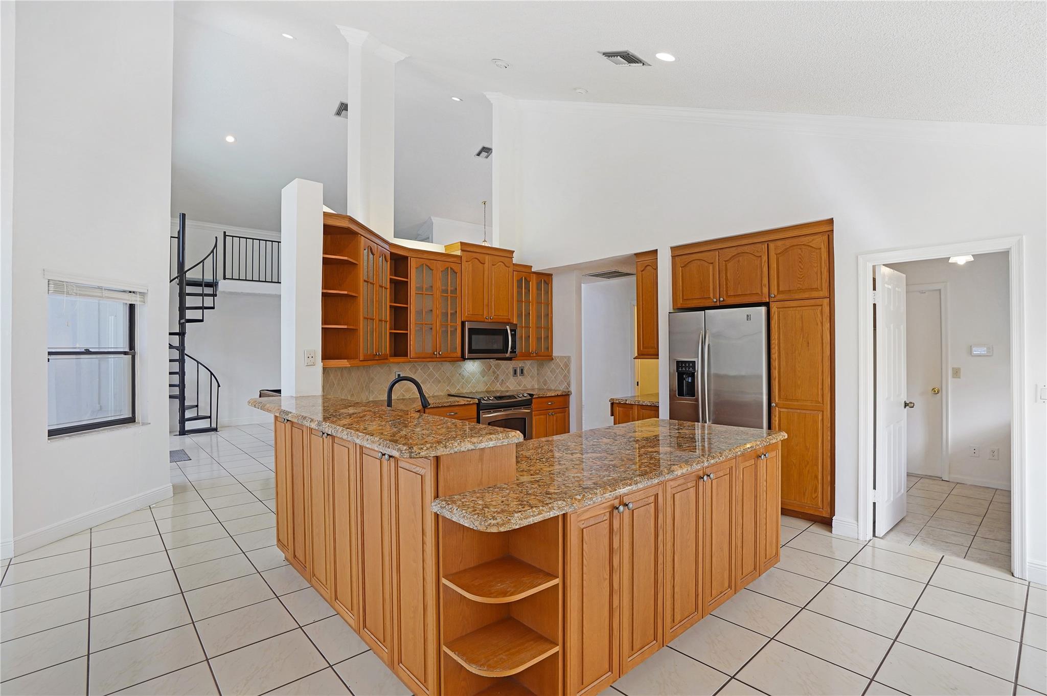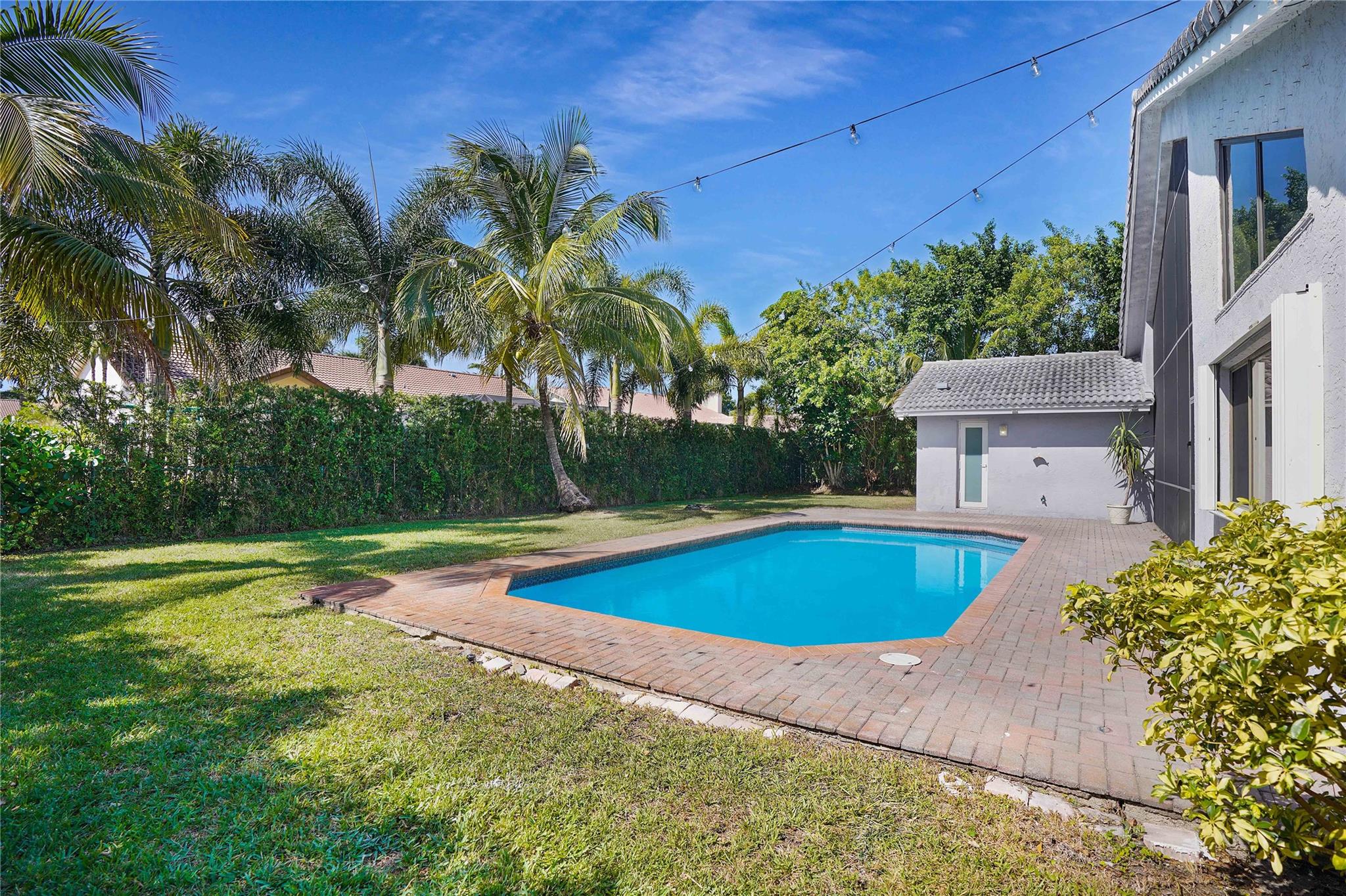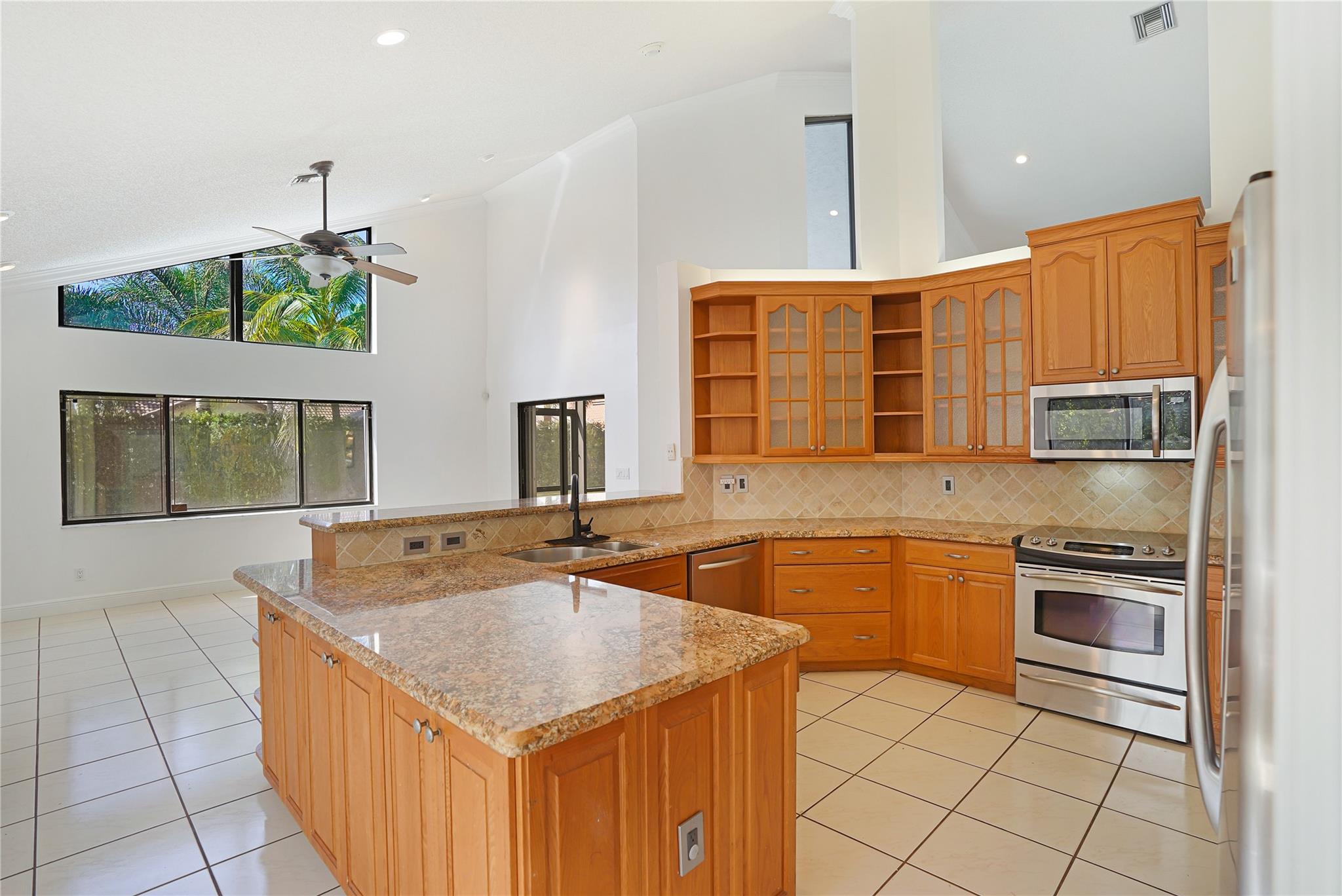 This exquisite home boasts 20 ft volume ceilings offering natural lighting, spacious & open ambiance designed for entertainment, with distinct formal living & family room spaces that accommodate both intimate gatherings & larger social events. Unique features include 100 sq ft loft upstairs, eat-in kitchen with granite countertops, travertine backsplash, & 42 inch cabinetry full of storage. The outdoors greets you with a perfect screened-in patio, resort style pool & expansive backyard large enough for all your entertaining during your events. Zone to A+ elementary school, 0.7 mi. from Chabad, 1.1 miles from Sawgrass trailhead where you can enjoy beautiful sunsets. Roof is 2006, all windows have storm protection & partial impact doors & windows, crown molding throughout, water heater 2018.