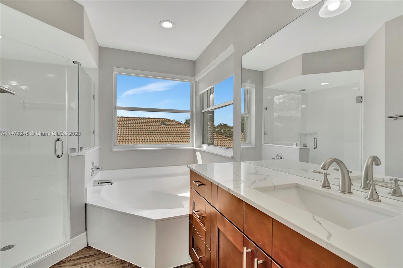 FULLY REMODELED 4 Bed, 2.5 Bath, MONTEGO MODEL HOME in Sought After PEMBROKE FALLS. Features an Inviting Floor Plan, Renovated Open Kitchen, Raised Panel Cabinetry, Granite Countertops, SS Appliances, Serving Bar, Spacious Master Suite, Oversized Walk-in Closet, Spa Style Bath, Custom Vanities, Roam Soaking Tub, Generous Guest Rooms, Custom Millwork, Zebra Blinds, Designer Tile/Plank Flooring ***STUNNING IMPACT RATED FRONT DOOR***NEW 2022 ROOF***NEW 2021 A/C***NEW IMPACT SLIDING GLASS DOORS*** Covered Patio, Fenced Grounds and more... Resort Style Club House: Heated Pool, Spa, Gym, Tennis, Pickleball, Basketball, Ballroom, Tot-Lots, 4–24hr Manned Secure Entrances. HOA Includes Cable, Internet & Alarm. **ASK ABOUT PREFERRED LENDER 1-0 INTEREST RATE BUYDOWN INCENTIVE AT NO COST TO BUYER**