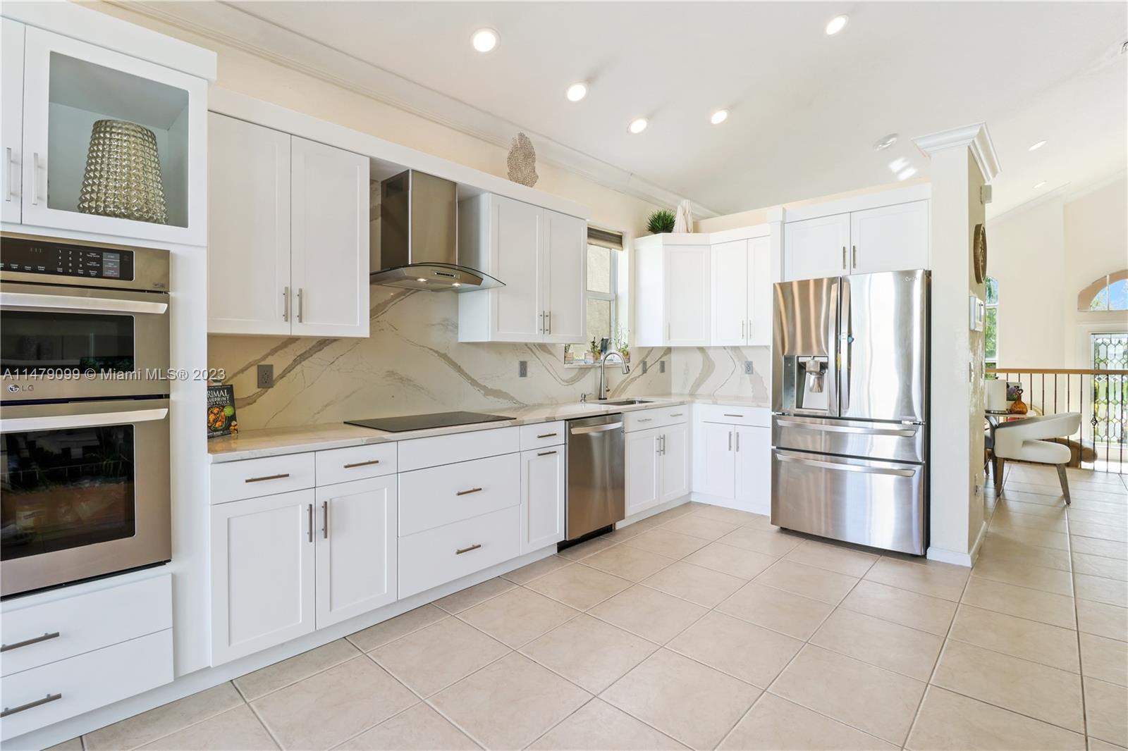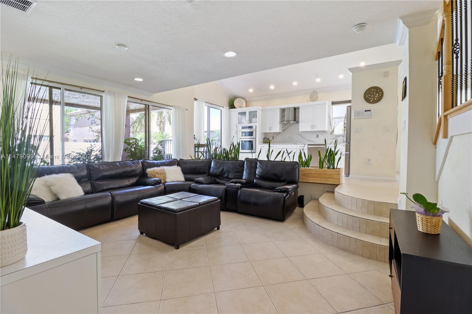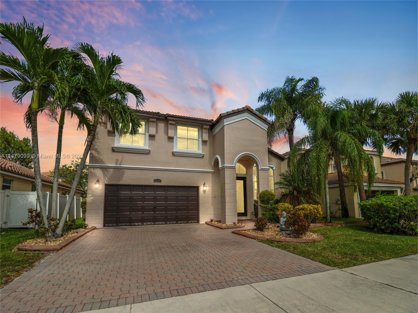 Beautiful two-story 4/3 with one bed and full bath downstairs in the highly desired neighborhood of Riviera isles. This home boosts a generous layout with high-volume ceilings, tile floors throughout and a renovated spacious kitchen that is a chefs dream. High-end appliances, double oven, and top-of-the-line quartz countertops. Large master with private balcony, walk in closet and spa retreat bathroom. Separate laundry room. 2 car garage with plenty of storage. Large patio and backyard. Hurricane impact protection. Conveniently located near excellent schools, shopping, and entertainment which great for families. Low HOA. Resort style community with 24hr security, has a clubhouse with a pool, playground, picnic area, tennis and basketball courts, gym, biking path and much more!
