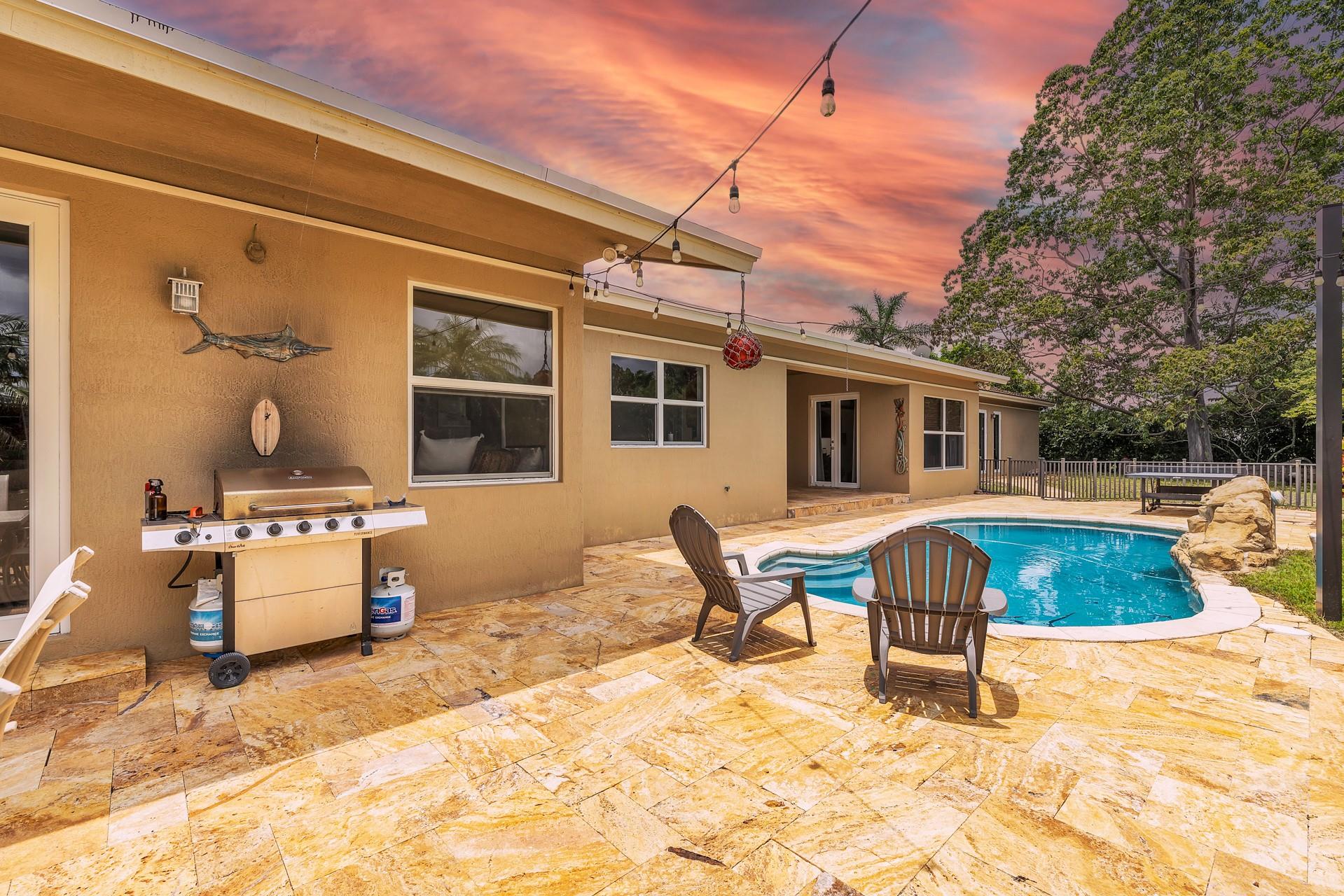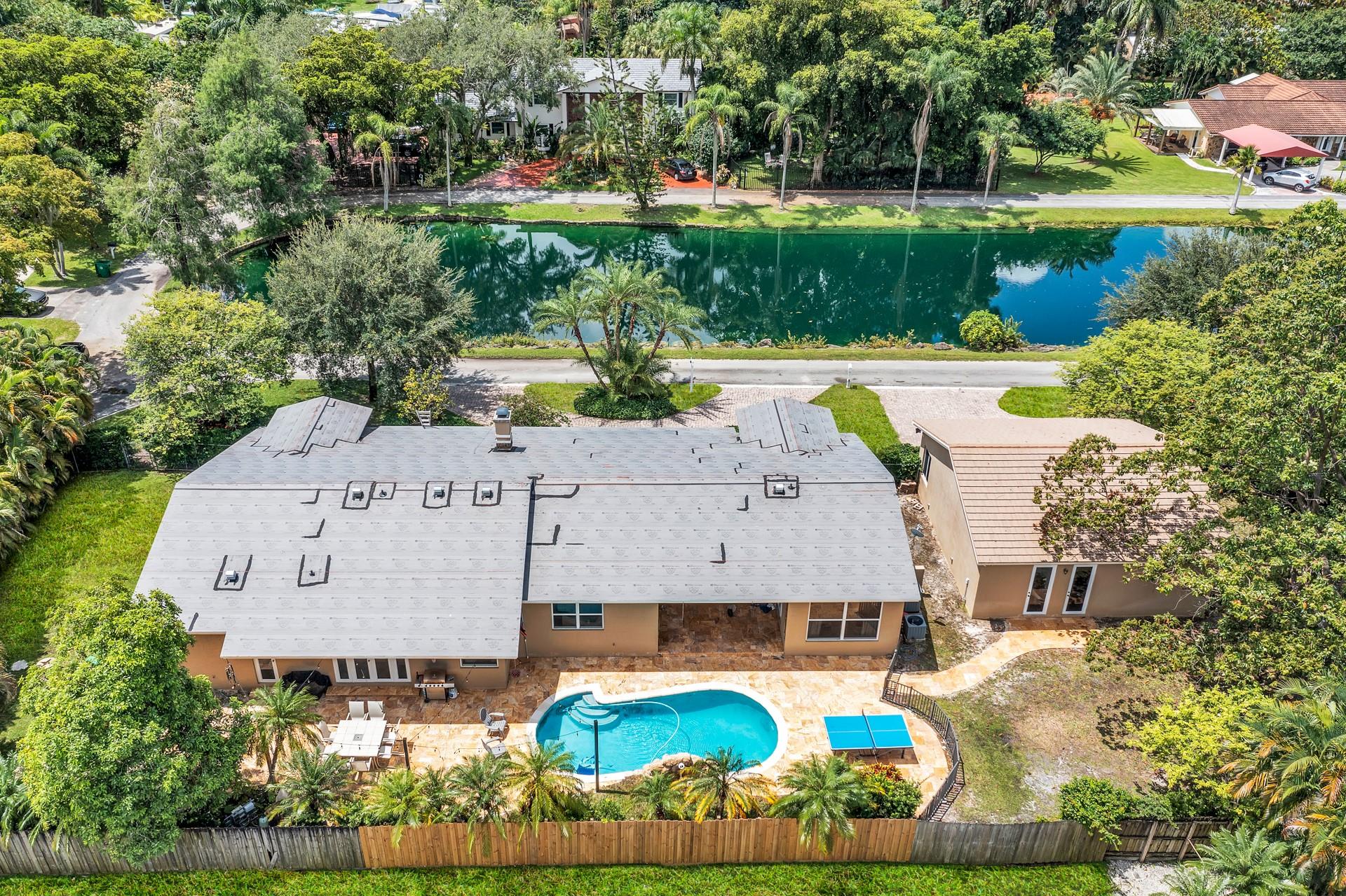 Come live in this Davie Estate Home that features a brand new roof, impact windows & doors, oversized pool, 9/10ths of an acre lot that has 4 bedrooms & 3.5 bathrooms. Zoned agricultural, No HOA, bring your boat, RV, animals & favorite toys. A 3 way split floor plan in an open concept home. Master bedroom has a walk-in closet plus an additional sitting room that is great for an office space, workout area or nursery. Enjoy a large playroom area/office/den that has a two-sided fireplace that leads you to 2 bedrooms & a bathroom. En-suite is off the family room with a cabana bathroom to the pool. The detached over sized 3 car garage (30 X 32) has central air condition. This is a unique property that is a buyer's dream & turn key! Close to the Florida turnpike, I-95, 595, Hardrock & NSU.