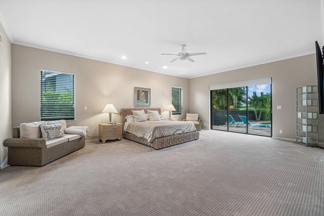 This expansive one-story residence is situated on the 17th hole of the renowned Challenge Golf Course at Bocaire. The open floor plan features a great room with bar and dining area overlooking the pool, lake and golf course. Main area floors are Herringbone hardwood, volume ceilings, separate kitchen and breakfast area. The primary suite has incredible views with large walk-in closets. Two guest suites are in a separate wing. The renowned Bocaire Golf Course awaits...!