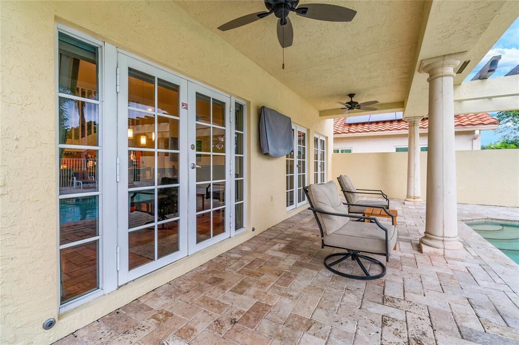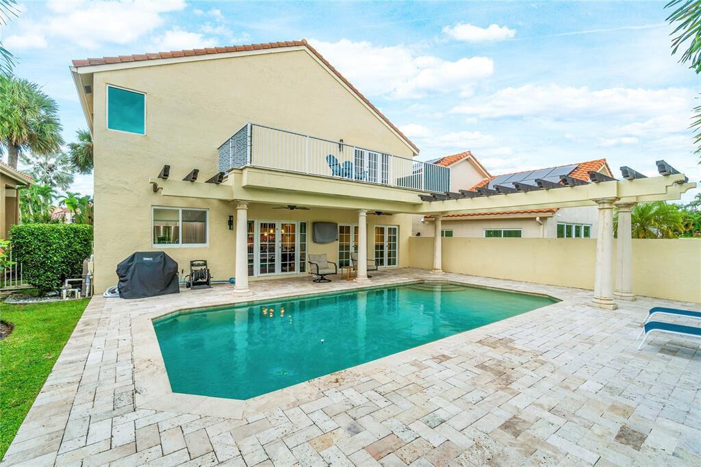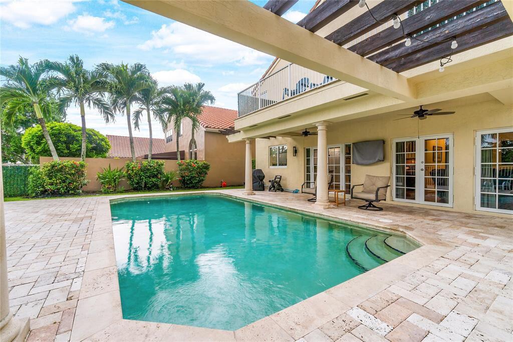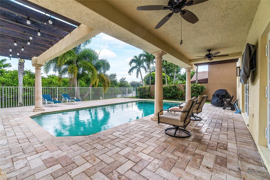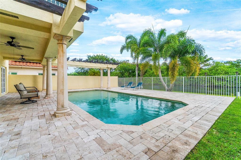 Exquisite 5BR/3.5BA Lakeside Oasis with Pool in Prestigious Gated Enclave of Ventura at Mission Bay! This gem occupies a coveted waterfront parcel, ensuring privacy with no neighbors to the rear, alongside a pristine saltwater pool. The luxurious primary suite boasts a serene lake-view balcony and dual spacious walk-in closets. Recently adorned with a fresh coat of paint, the residence features brand-new HURRICANE IMPACT windows/doors throughout. Utilized as a study, the fifth bedroom adapts to your lifestyle needs. Enhanced with 2023 attic insulation complete with a radiant barrier, the home also benefits from a state-of-the-art variable speed pool pump and chlorinator. All bedrooms glow with new, elegant porcelain tiles.