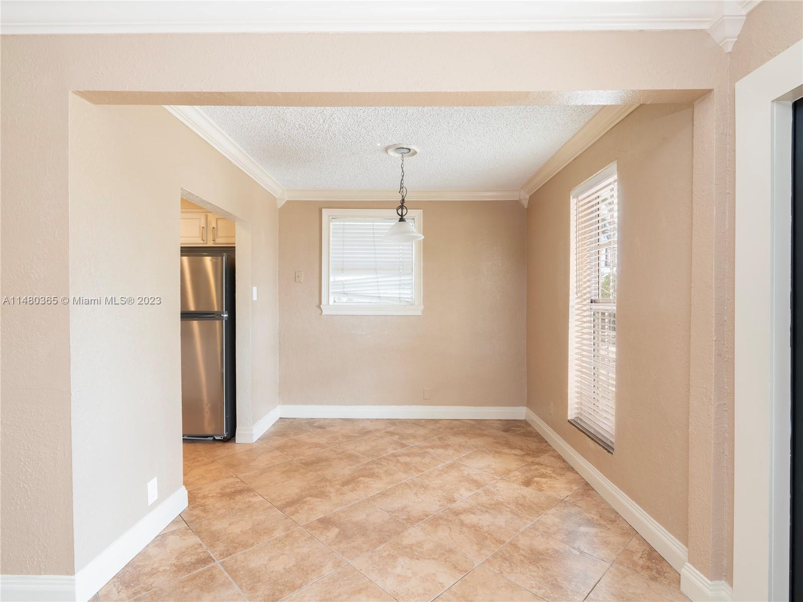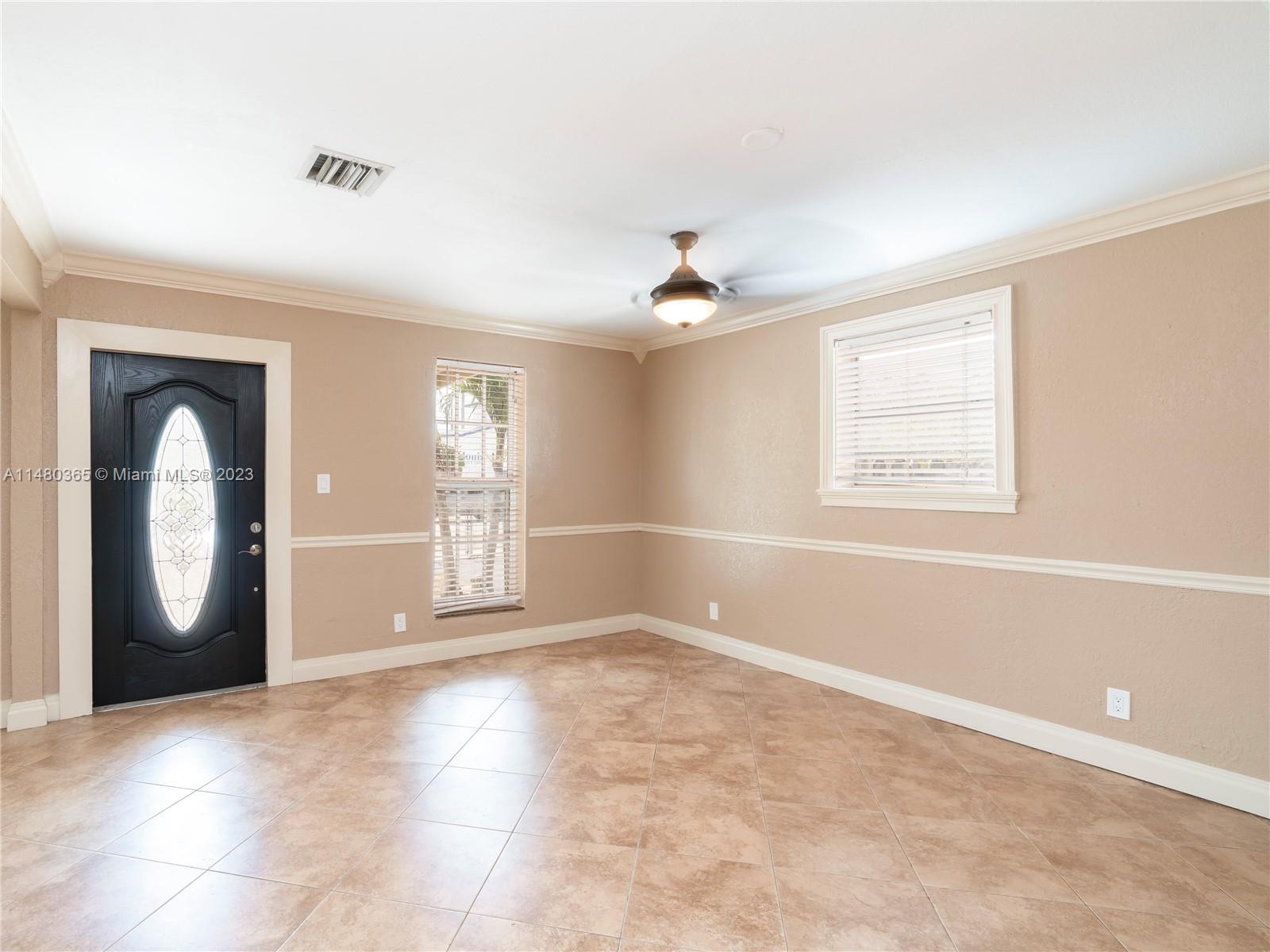 Charming 3-bedroom, 2-bathroom home in the heart of Pompano Beach, perfect for first-time buyers! This move-in ready gem boasts a walk-in shower, stainless steel appliances, and a convenient laundry room with a white washer and dryer. The spacious backyard, accessible through its side door, is ideal for outdoor gatherings. The fully remodeled interior features a wrap-around kitchen with black granite countertops, white wood cabinets, and lovely crown molding and baseboards throughout. Enjoy meals at the kitchen bar countertop or dining area, enhanced by chair rail molding. Ceiling fans adorn every room, and the home is equipped with PVC plumbing. With easy access to major supermarkets, restaurants, I-95, and the Turnpike, this opportunity won't last long. Don't miss out on this gem!