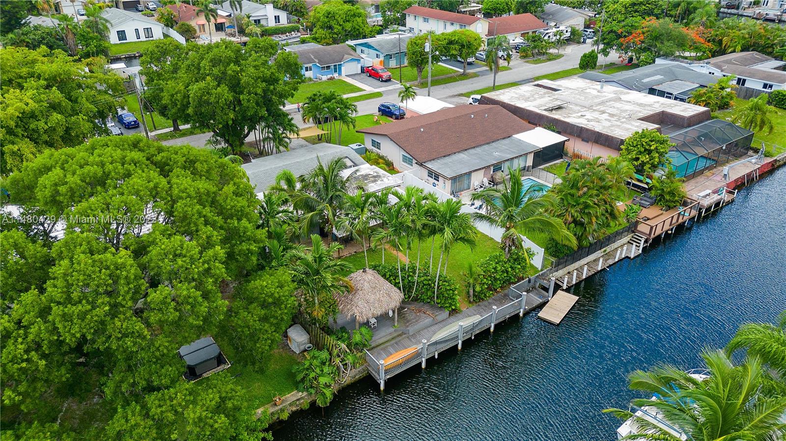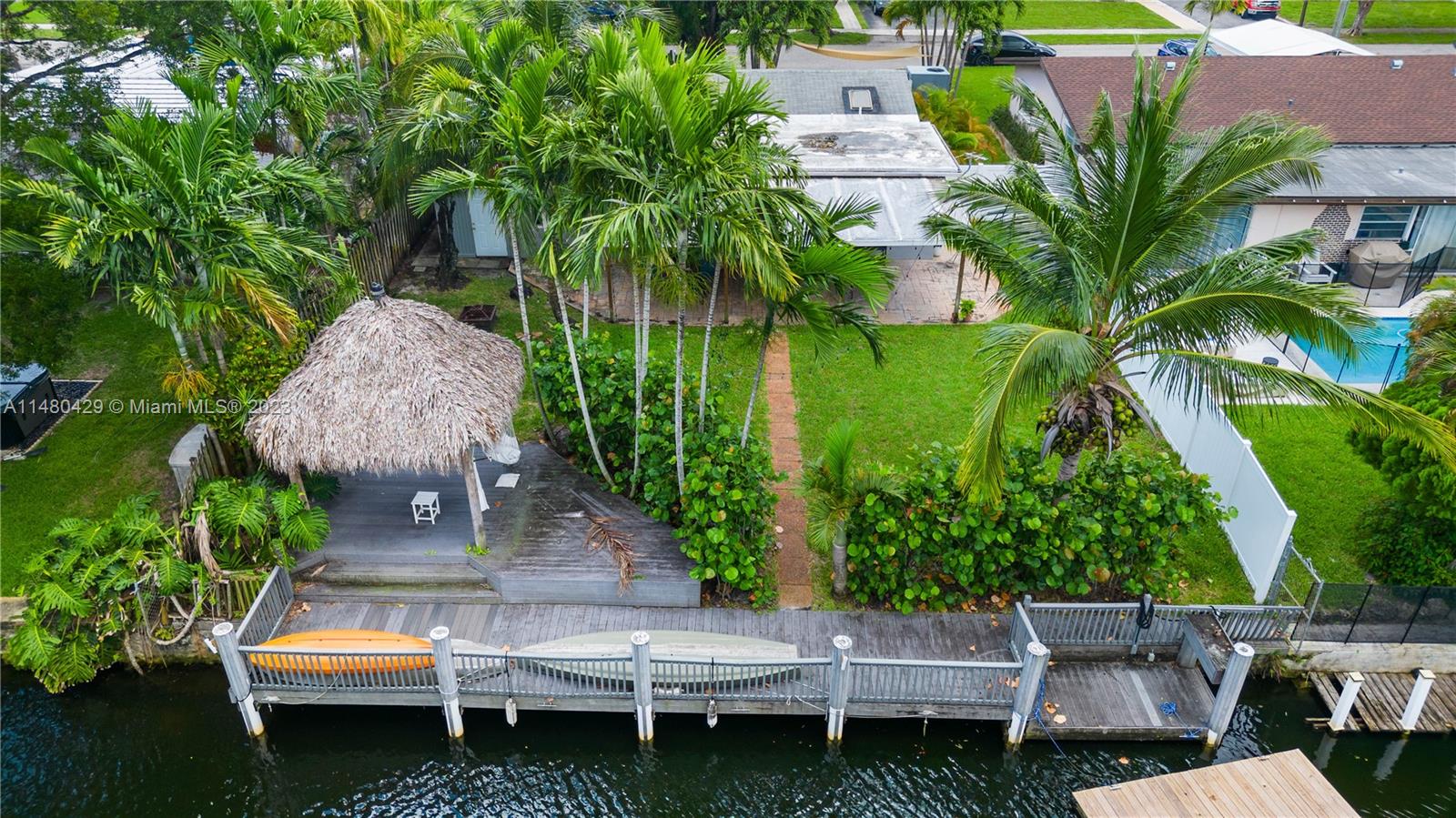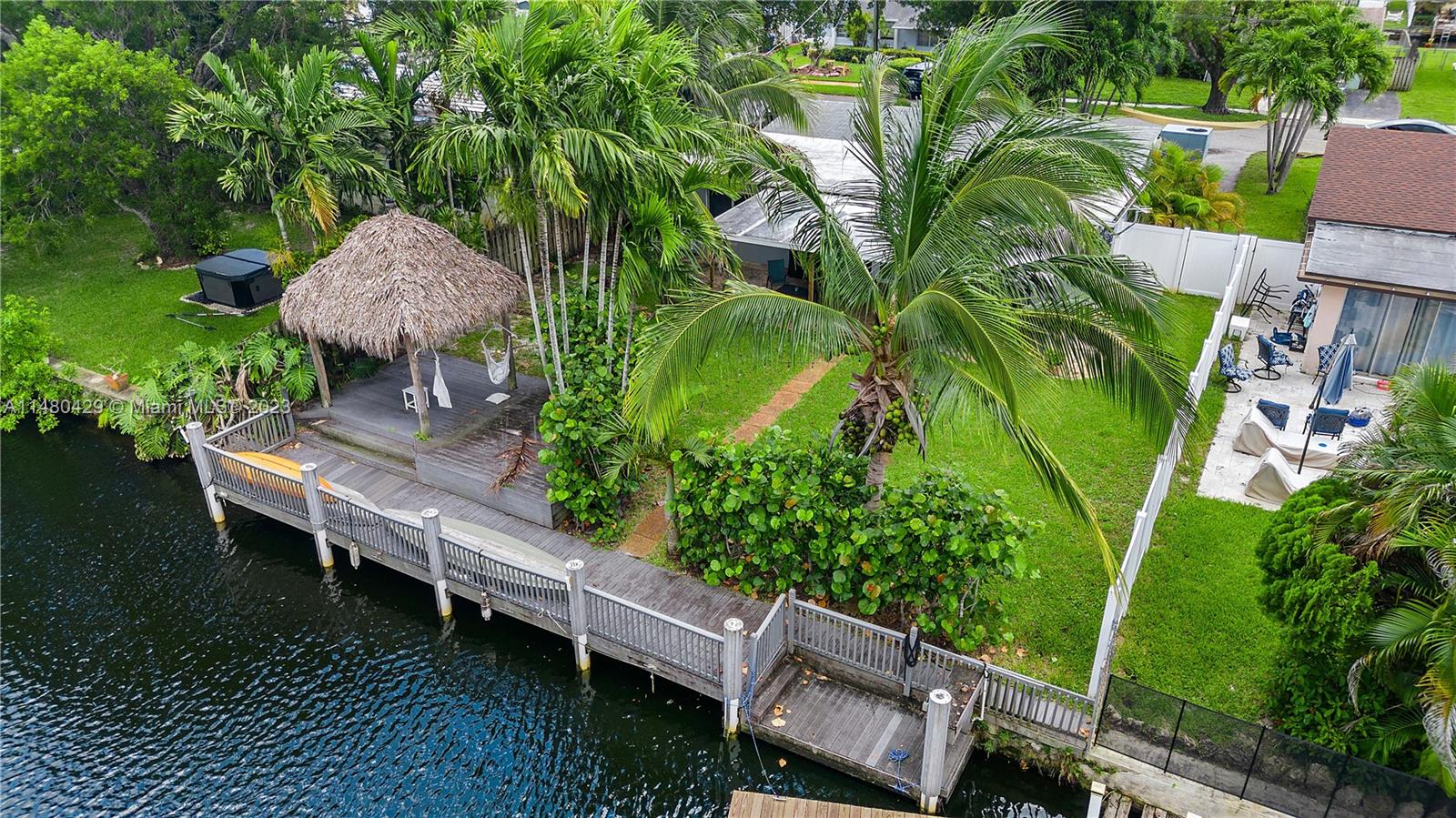 Spectacular. Sprawling oversized lot with 50' on the water in prestigious Hollywood Isles. Sporting a brand new boat dock & tiki hut, an expansive back yard replete w a massive covered patio perfect for weekend BBQ's and a spacious 4 bedroom floorplan w impact windows throughout, this home hits all the notes. The delightfully open granite & stainless steel kitchen flows perfectly to the breakfast bar & formal dining room while the master suite overlooks the serenity of the waterway. Gleaming tile floors, sparkling renovated baths & incredible light & bright ambiance top it all off. The location is perfect, at the end of a charming cul-de-sac & just minutes to world class shopping & dining in Young Circle, golf & summer programs at Sunset Golf Course & just minutes to the park and beach.