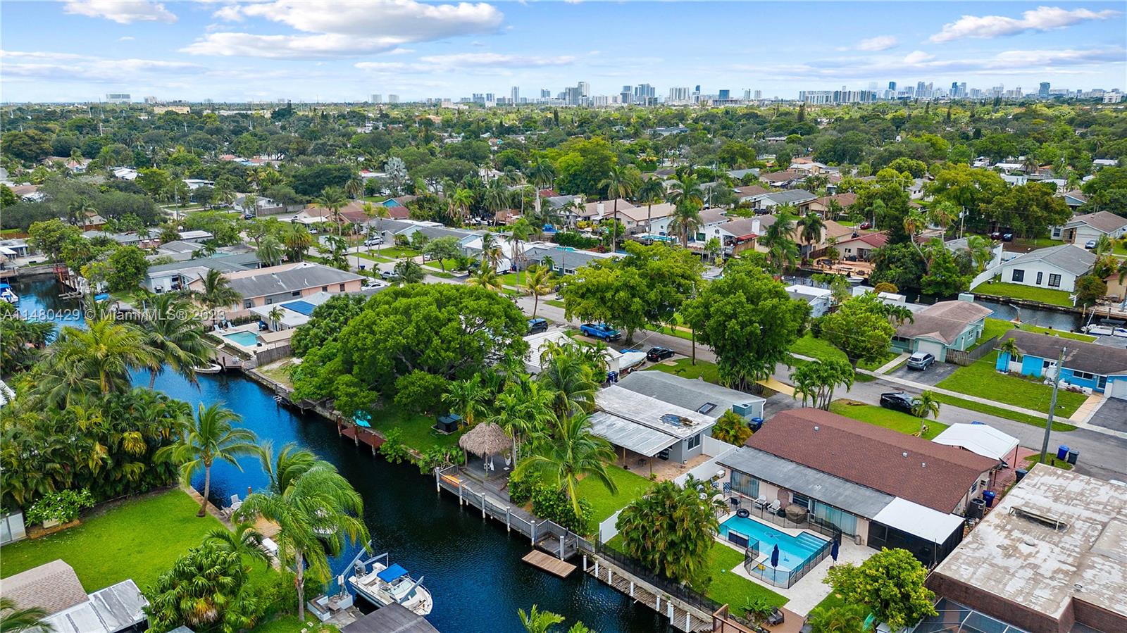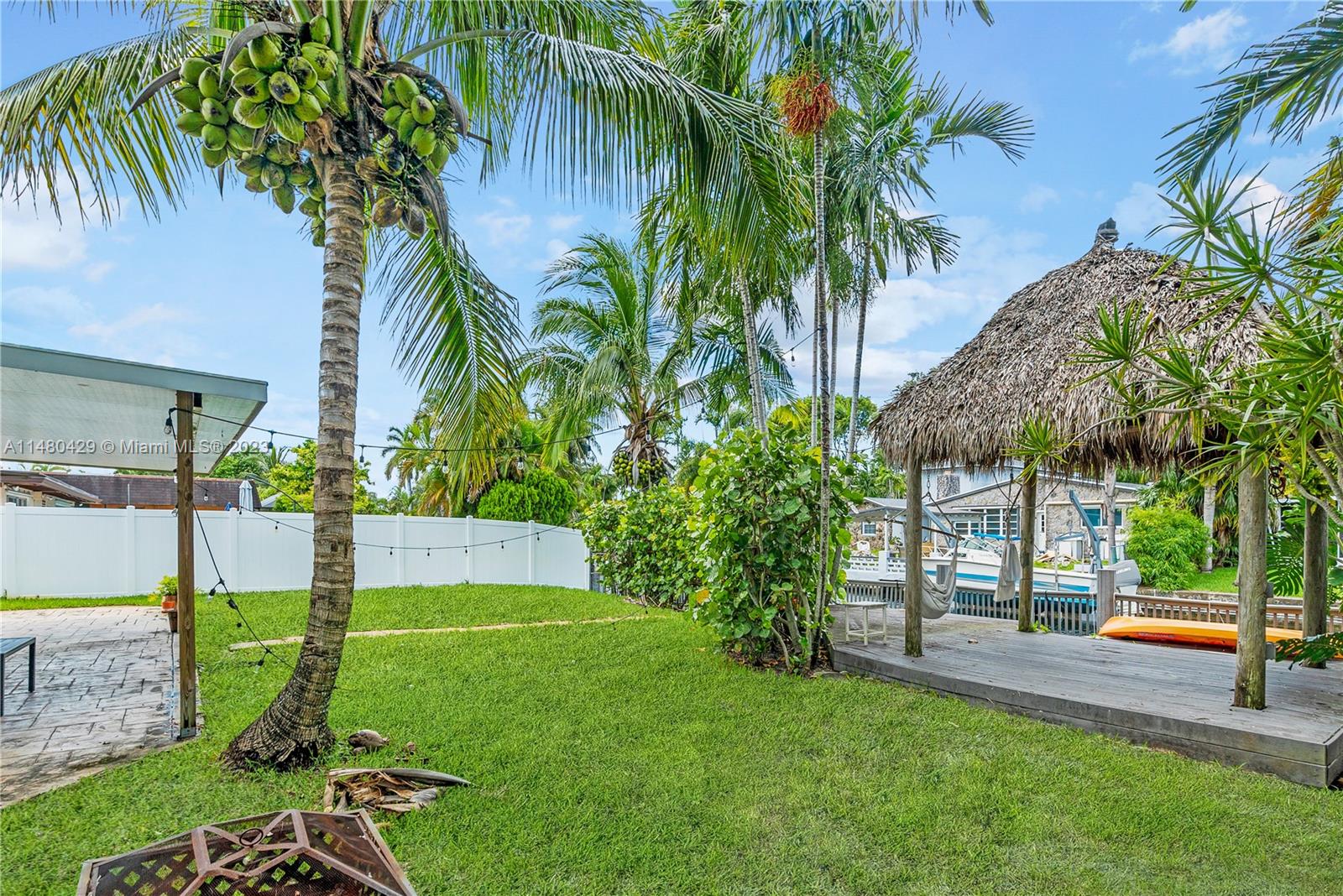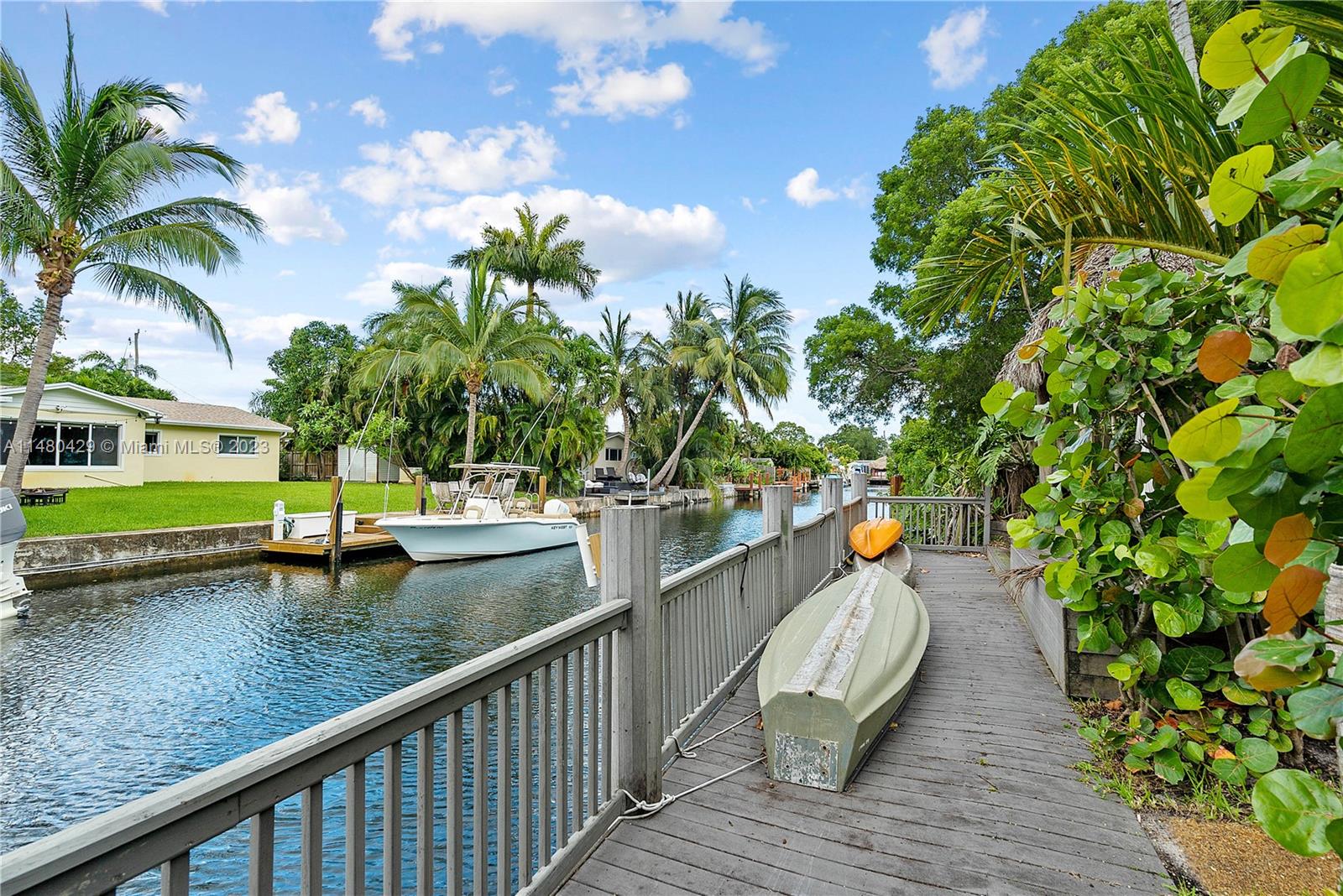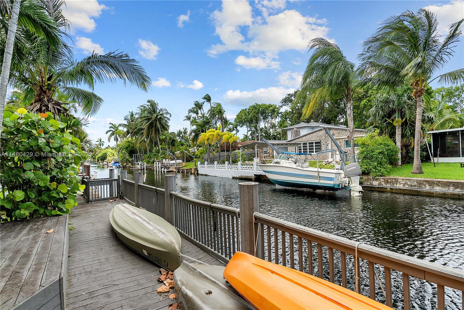 Spectacular. Sprawling oversized lot with 50' on the water in prestigious Hollywood Isles. Sporting a brand new boat dock & tiki hut, an expansive back yard replete w a massive covered patio perfect for weekend BBQ's and a spacious 4 bedroom floorplan w impact windows throughout, this home hits all the notes. The delightfully open granite & stainless steel kitchen flows perfectly to the breakfast bar & formal dining room while the master suite overlooks the serenity of the waterway. Gleaming tile floors, sparkling renovated baths & incredible light & bright ambiance top it all off. The location is perfect, at the end of a charming cul-de-sac & just minutes to world class shopping & dining in Young Circle, golf & summer programs at Sunset Golf Course & just minutes to the park and beach.