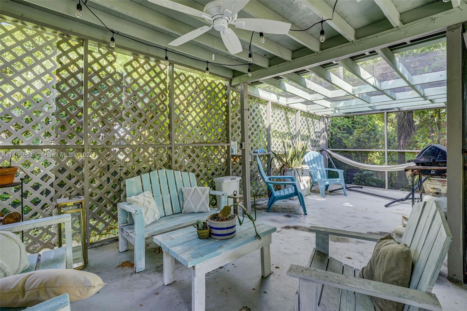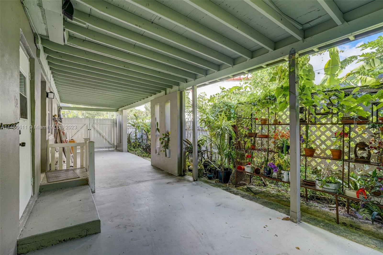 Charming 3-bedroom, 2-bathroom home featuring an open concept kitchen-living-dining combination. Enjoy the brand-new cabinets, sleek quartz countertops, and top-of-the-line Samsung appliances, complete with a convenient wine cooler. The bathrooms have been tastefully remodeled, and the original terrazzo floors have been expertly repolished. Experience ultimate comfort with the addition of a new AC system and modern laundry appliances. Step out onto the 400 sq. ft. mosquito net enclosed patio, ideal for year-round outdoor enjoyment. Additionally, there's a spacious 400 sq. ft. carport and a generously sized garage door providing alley access for a boat or RV. This is a turnkey property