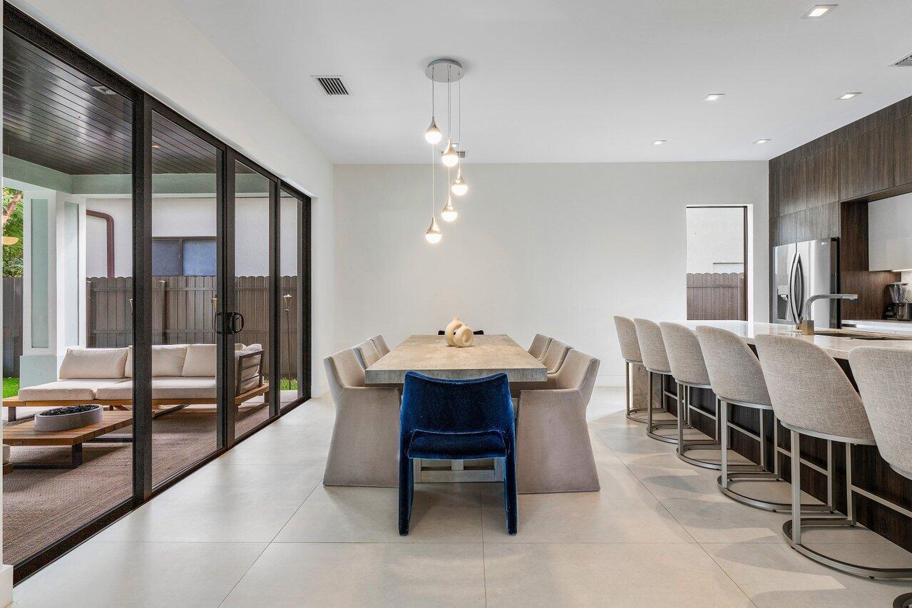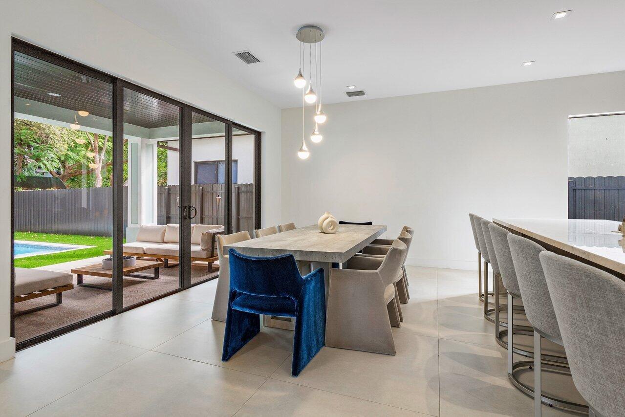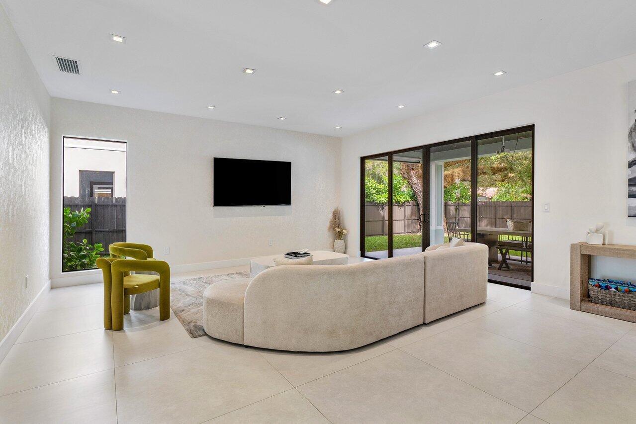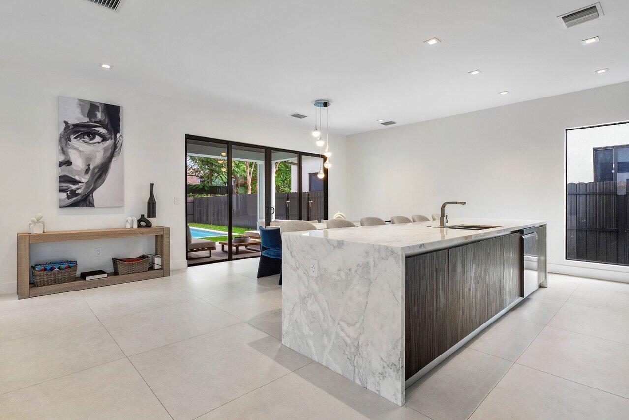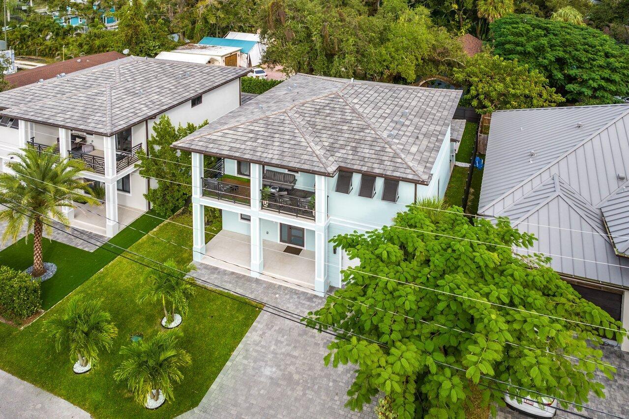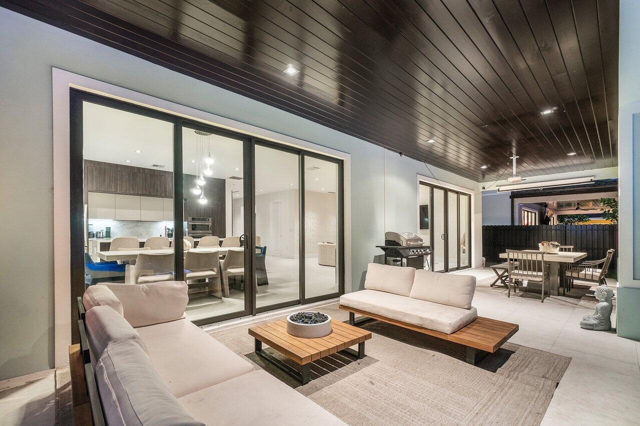 Indulge in the epitome of luxury living at this meticulously designed, fully-furnished residence in Fort Lauderdale's Riverside. Spanning 4 generous bedrooms + first floor office/den/5th bedroom, this home offers an abundance of space for both relaxation and entertainment. The gourmet Italkraft kitchen with marble countertops, soft close cabinets and drawers, and waterfall edge island as well as stainless steel appliances make this a chef's dream. Step outside to discover an enchanting outdoor theater, where evenings come alive with cinematic magic. The expansive backyard invites you to bask in the Florida sun, or relax under the covered patio equipped with summer kitchen connection, while the heated swimming pool offers year-round aquatic indulgence.