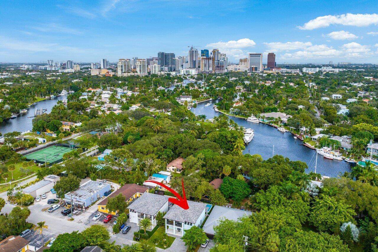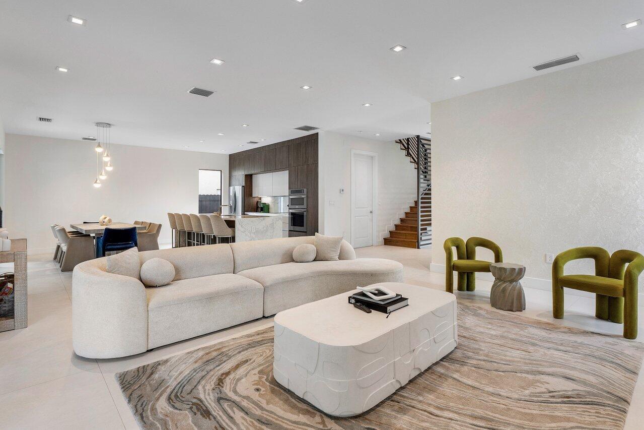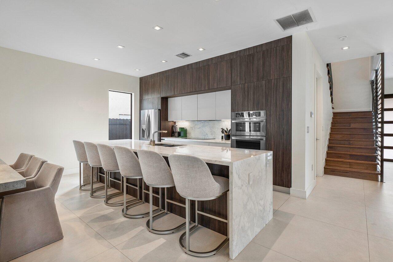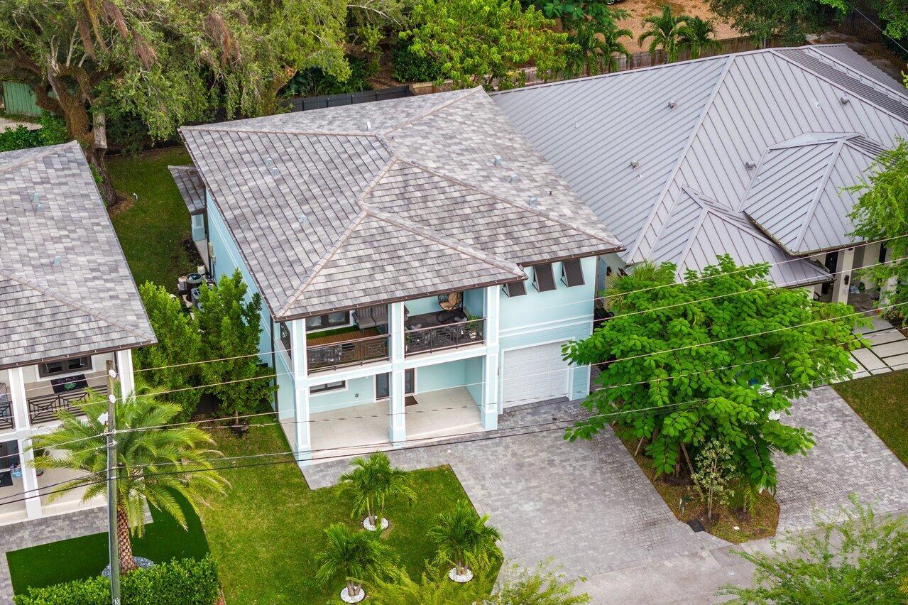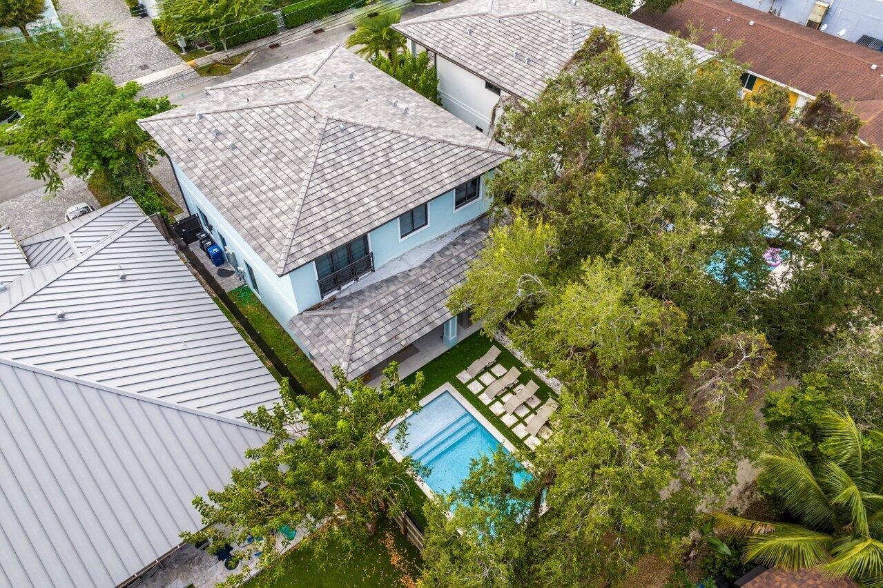 Indulge in the epitome of luxury living at this meticulously designed, fully-furnished residence in Fort Lauderdale's Riverside. Spanning 4 generous bedrooms + first floor office/den/5th bedroom, this home offers an abundance of space for both relaxation and entertainment. The gourmet Italkraft kitchen with marble countertops, soft close cabinets and drawers, and waterfall edge island as well as stainless steel appliances make this a chef's dream. Step outside to discover an enchanting outdoor theater, where evenings come alive with cinematic magic. The expansive backyard invites you to bask in the Florida sun, or relax under the covered patio equipped with summer kitchen connection, while the heated swimming pool offers year-round aquatic indulgence.