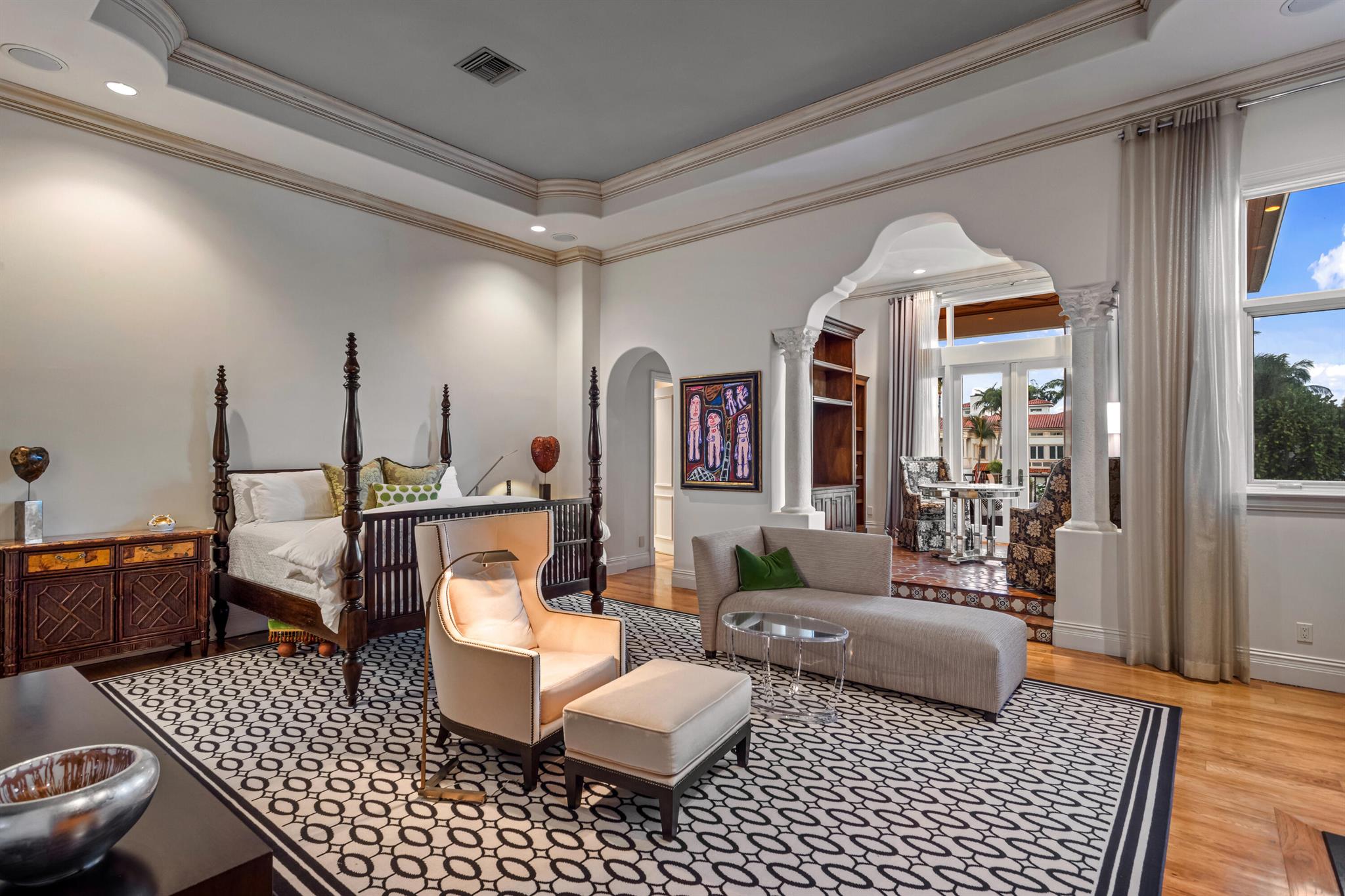Chic Montecito style meets this Sanctuary deepwater estate sited on 116+/- feet of waterfrontage originally built by Palm Beach builder Addison Development and interiors by Marc-Michaels. Authentic Spanish Colonial influenced interiors boast rich hardwood floors, terra cotta and gorgeous tough and groove beamed wood ceilings and gentle archways sets the stage for glamorous living. Lavish Primary suite includes two baths (one in the new Dior boutique vibe ) , lounge, exercise room and waterway balcony . Reimaged resort-styled pool/patio is enhanced with water features and sculpture garden, Loggia with professional bar and summer kitchen and Cabana. Shown by appt only.