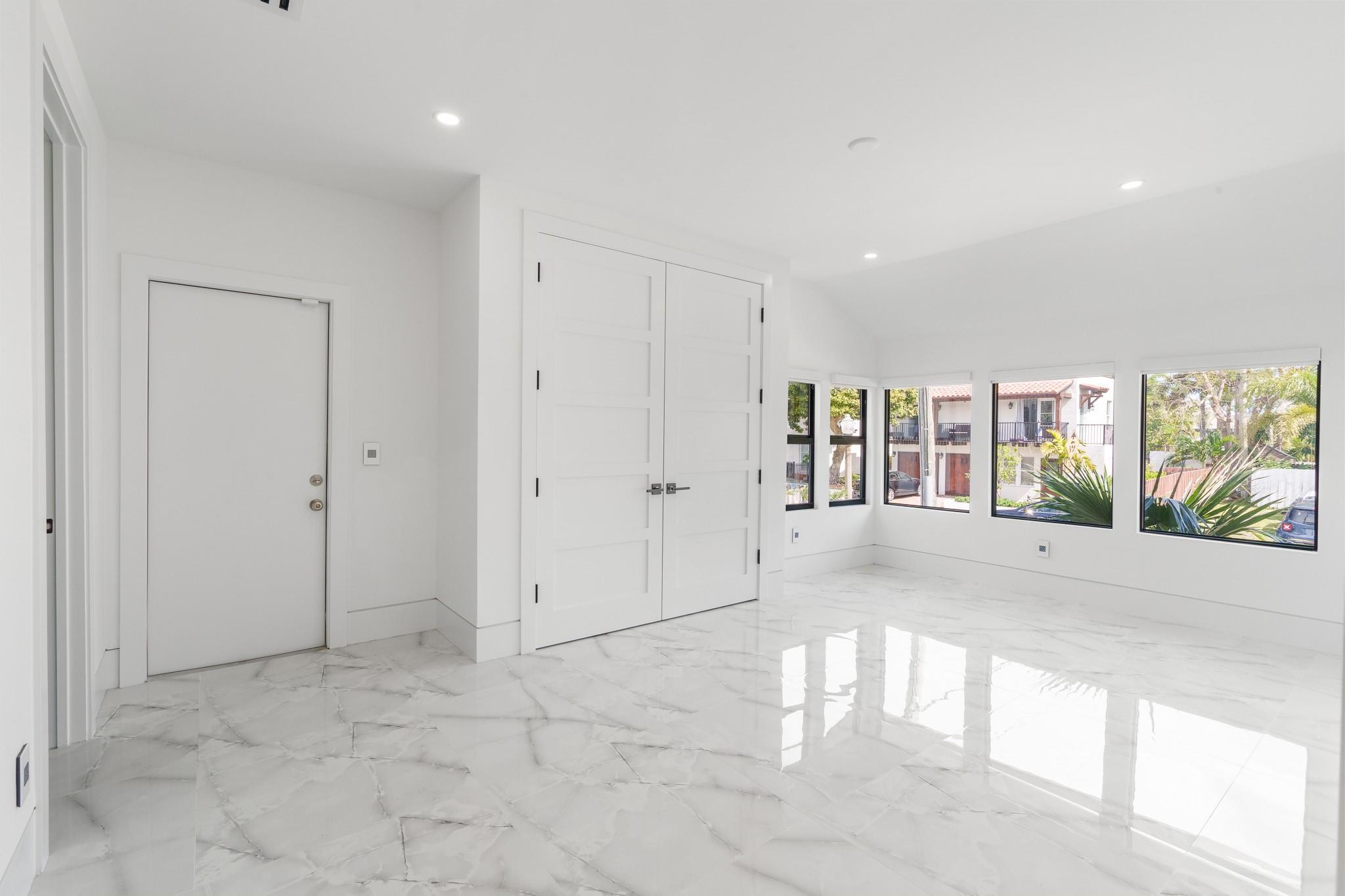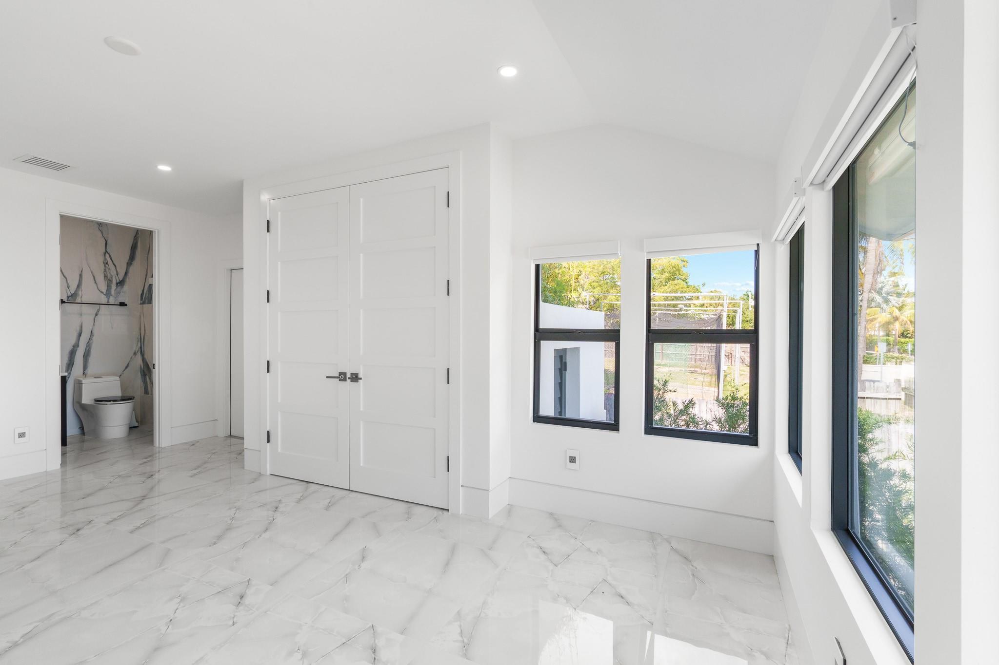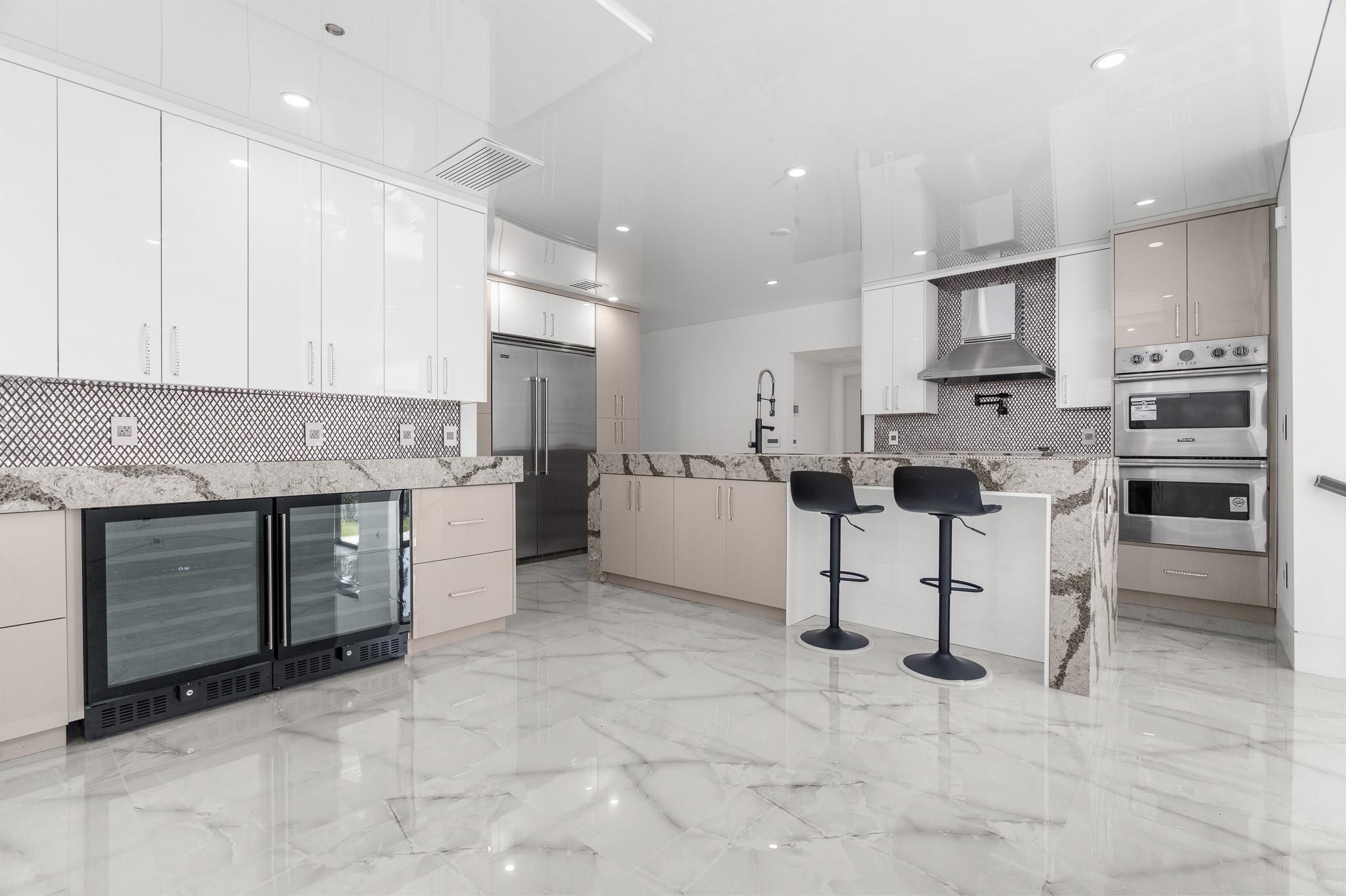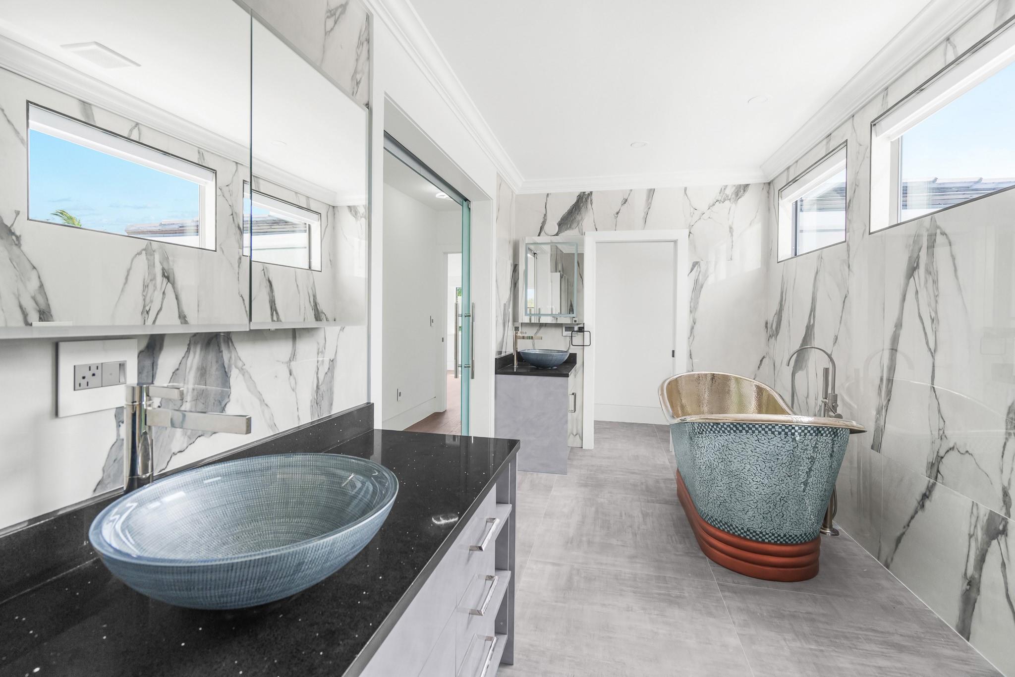 Spectacular newly custom-rebuilt modern estate home encircled by a grandfathered-in, 6-foot tall concrete privacy wall on a corner lot in the quiet Flamingo Park Historical District of the City of West Palm Beach. Patio Outdoor Kitchen w/ Gazebo. Salt Water Heated Jacuzzi & Swimming Pool w/ Sun Shelf & In-Pool Chaise Loungers & Fountain Geysers. Gourmet VIKING Eat-In Kitchen & large Center Island w/ Water-Fall Edged Quartzite Countertops. Optional capsule elevator to second floor Master Suite w/ huge ensuite Master Bath w/ Safari Double Massaging Shower & Handcrafted Copper & Chrome Free-Standing Crystal Double-Slipper Jetted Tub. Two Walk-In's in Master Bedroom. Reflective Infinity Ceilings, 10' wide floor-to-ceiling wood-burning fireplace, wireless powered silhouette shades thru out.