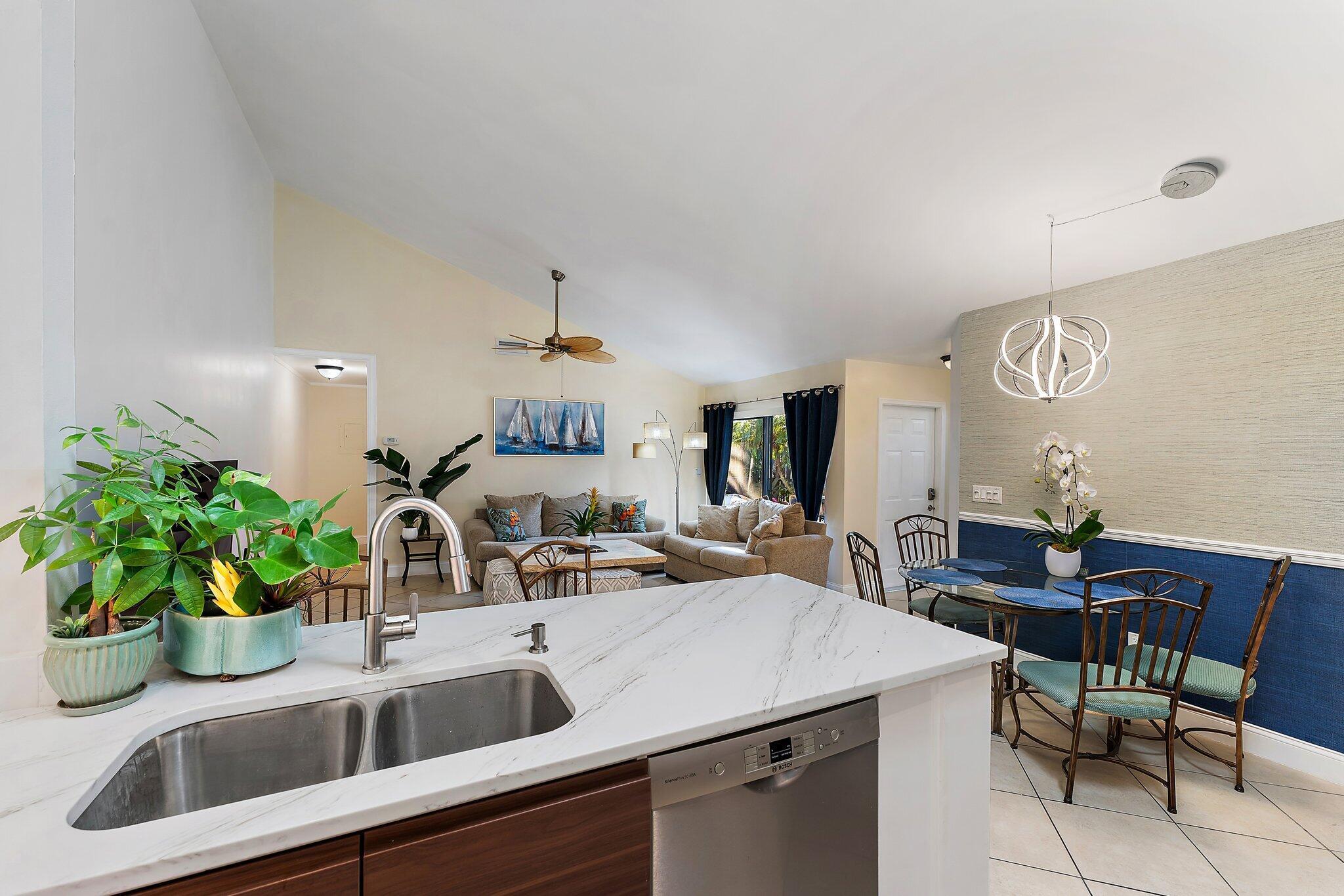 As you step inside this updated 3 bedroom 2 bath townhouse, you'll be captivated by the open concept floor plan, creating a seamless flow from the living room to the eat-in kitchen. The breakfast bar is perfect for casual dining or entertaining guests while the cathedral ceilings in the living, kitchen and master bedroom areas elevate the sense of space and luxury. This new kitchen includes new dishwasher, range oven, microwave, and 2 year old refrigerator. Bonus: skylight feature in the kitchen !