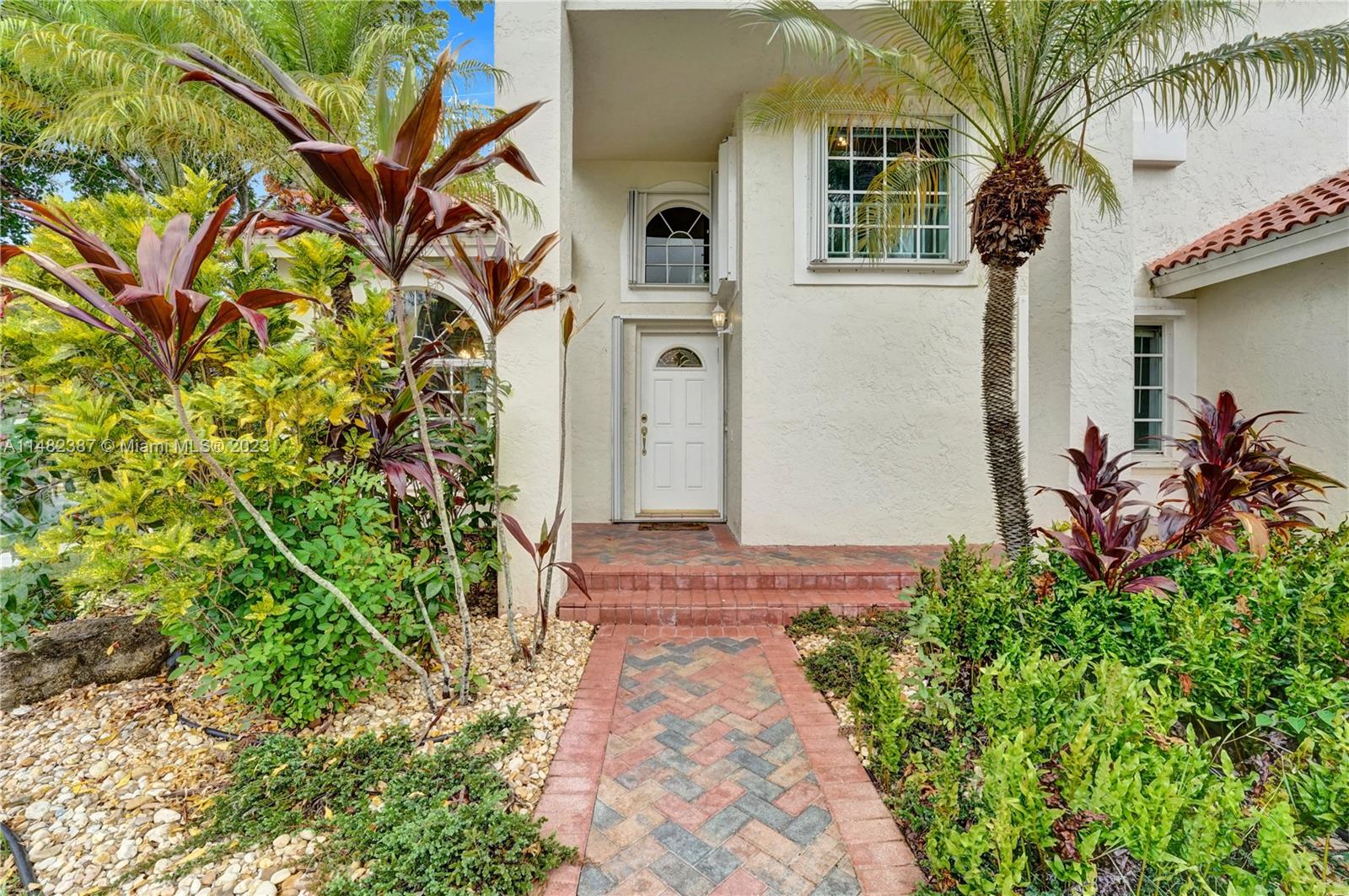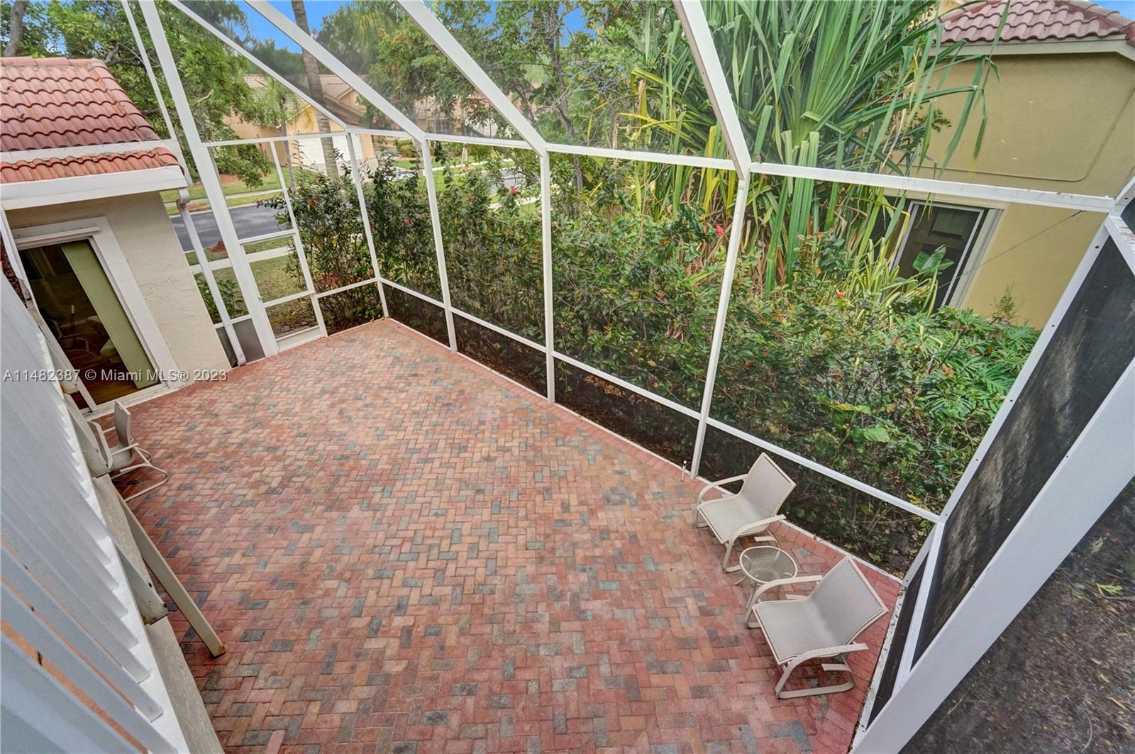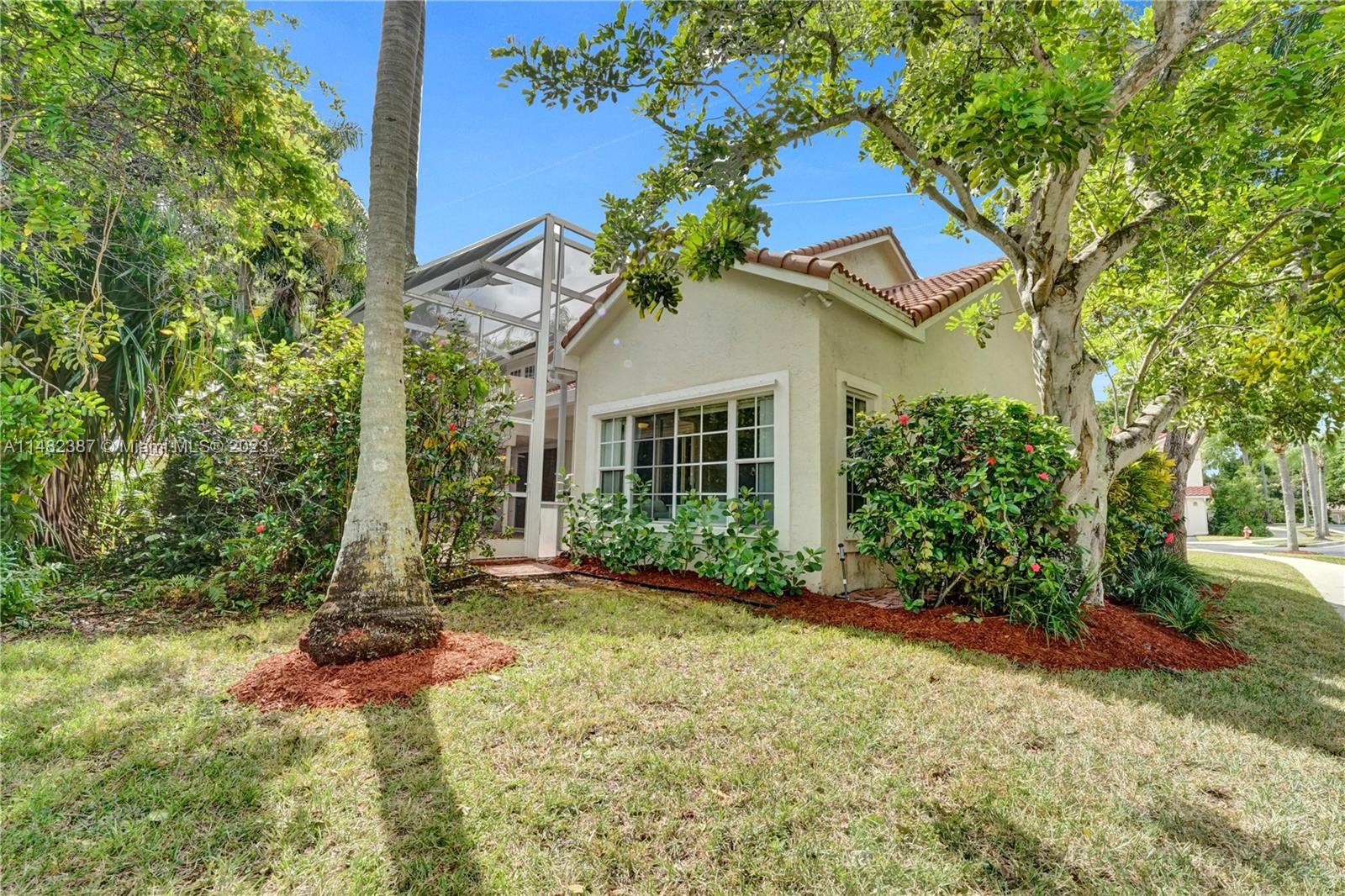Amazing opportunity at the very desirable Laguna Springs II. An unbeatable value in a prime corner location. Generous living space with high ceilings and tall glass sliding doors that give a bright, airy, and open feel. Two convenient bedrooms at ground level, bathroom + dining, living, and family rooms. 2nd level with brand-new, stylish flooring, ample primary suite with balcony, large en-suite bathroom, and deep walk-in closet. Enjoy the screened patio with brick pavers & room for a pool. Full storm protection including windows and garage door. Additional features include the recently updated A/C unit and barrel tile roof installed in 2006. Within close distance of the community clubhouse and pool. You're just a stone's throw from Indian Trace Elementary School, parks, Chabad & church.