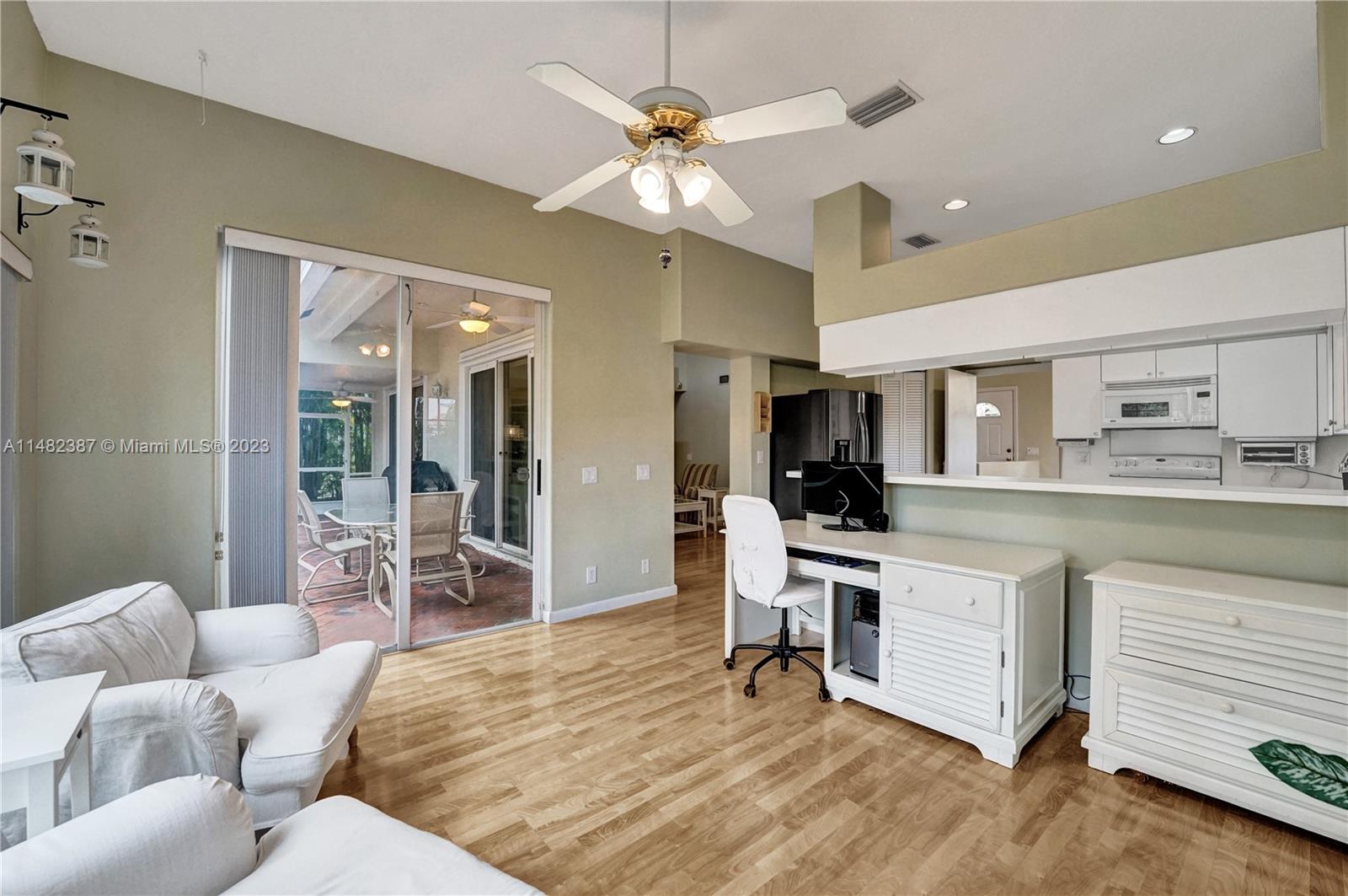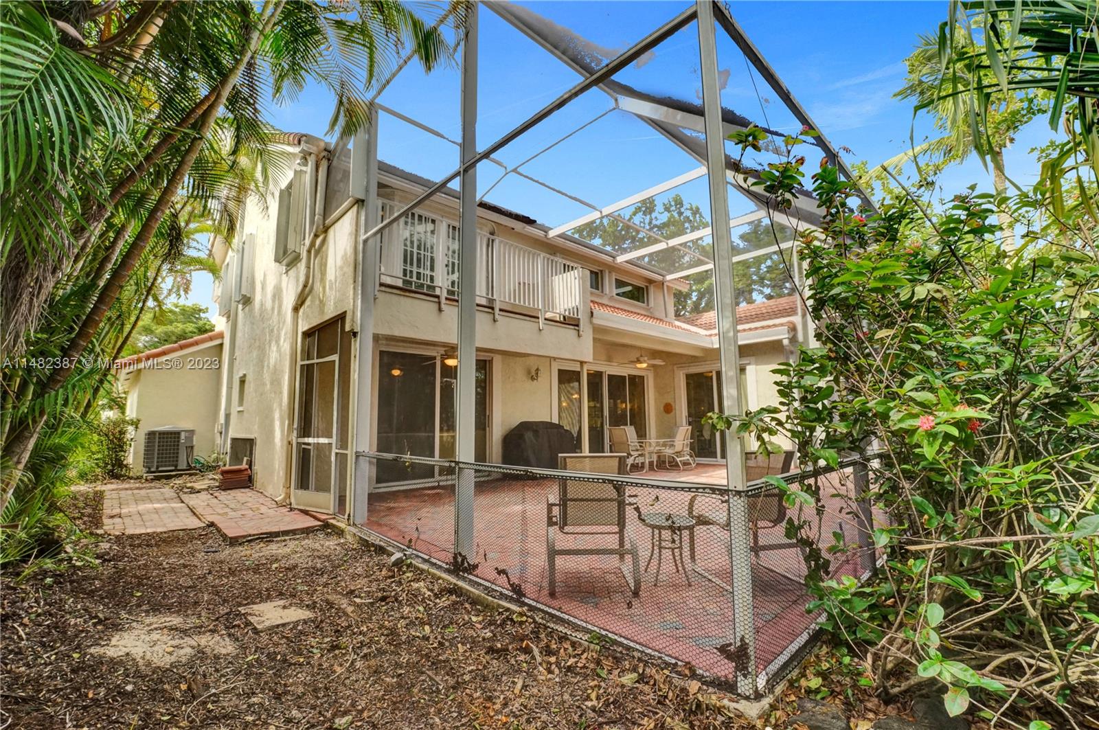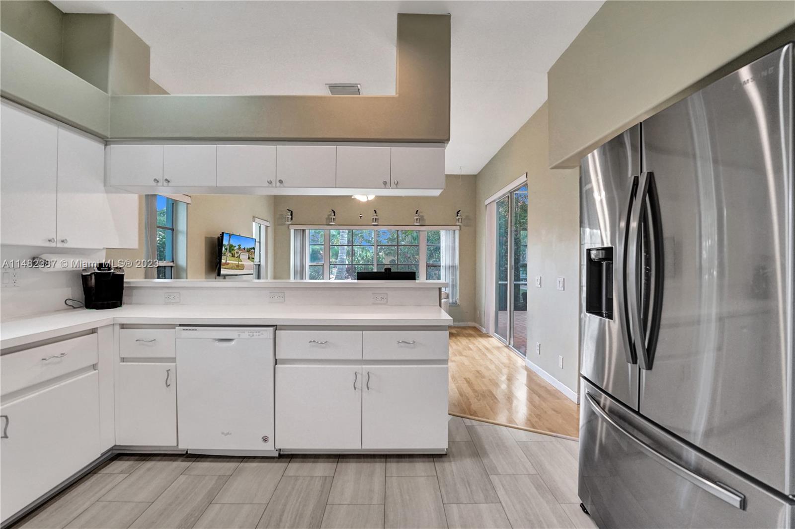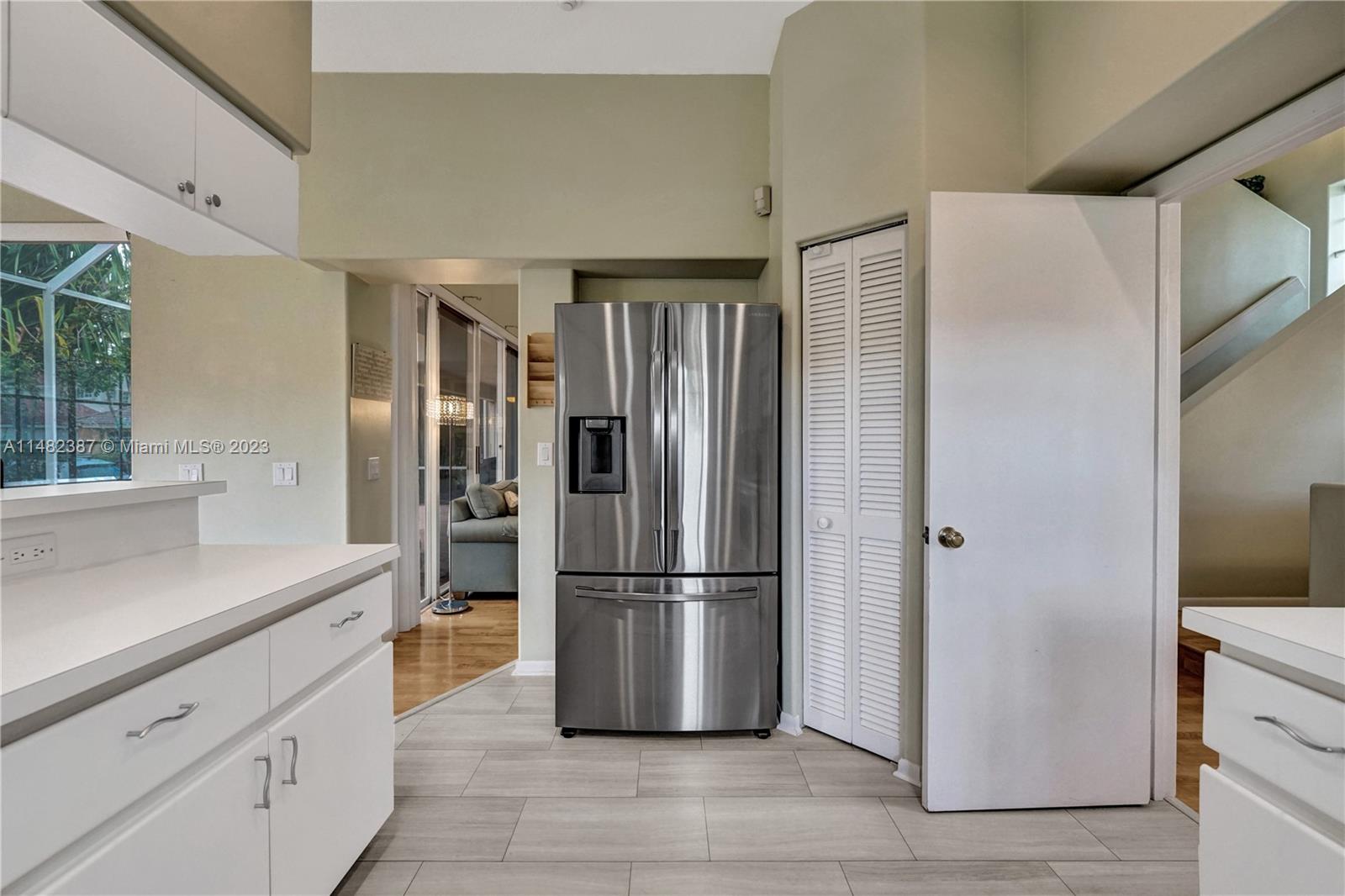 Amazing opportunity at the very desirable Laguna Springs II. An unbeatable value in a prime corner location. Generous living space with high ceilings and tall glass sliding doors that give a bright, airy, and open feel. Two convenient bedrooms at ground level, bathroom + dining, living, and family rooms. 2nd level with brand-new, stylish flooring, ample primary suite with balcony, large en-suite bathroom, and deep walk-in closet. Enjoy the screened patio with brick pavers & room for a pool. Full storm protection including windows and garage door. Additional features include the recently updated A/C unit and barrel tile roof installed in 2006. Within close distance of the community clubhouse and pool. You're just a stone's throw from Indian Trace Elementary School, parks, Chabad & church.