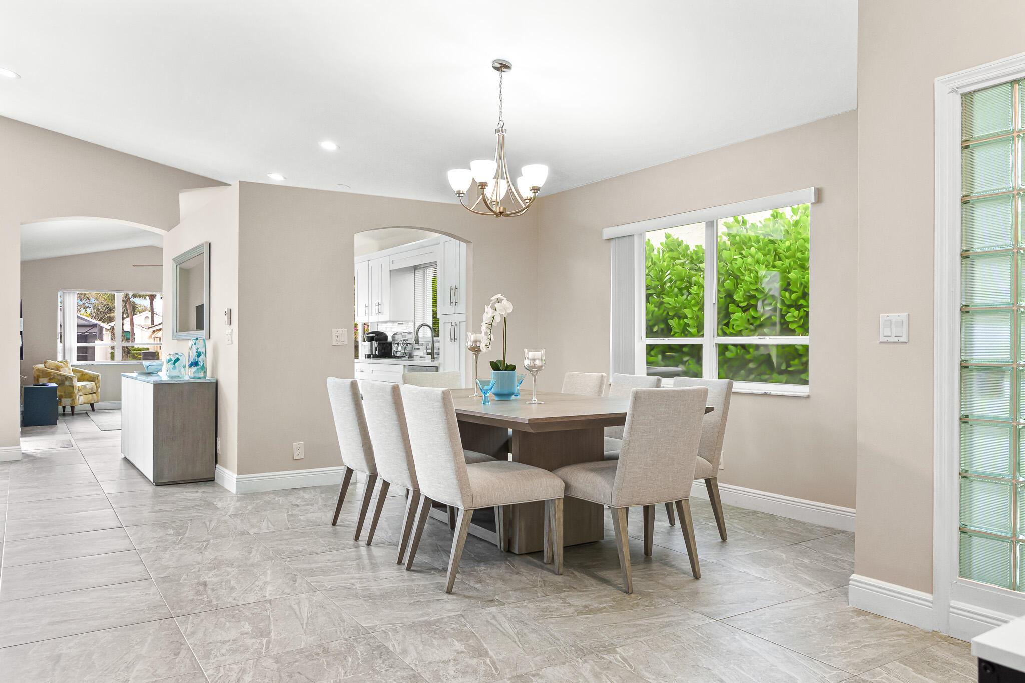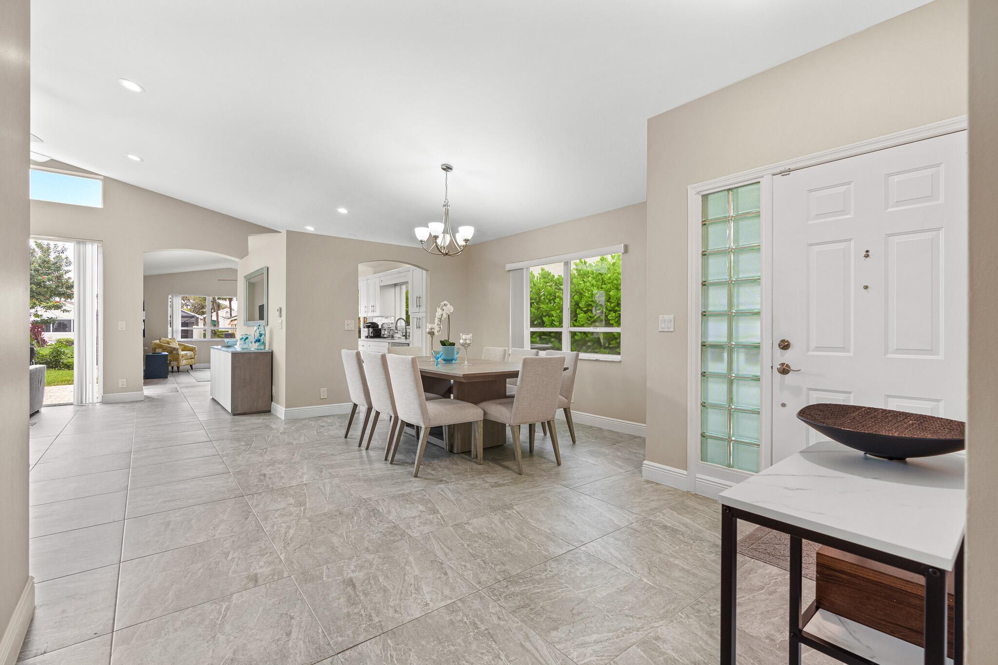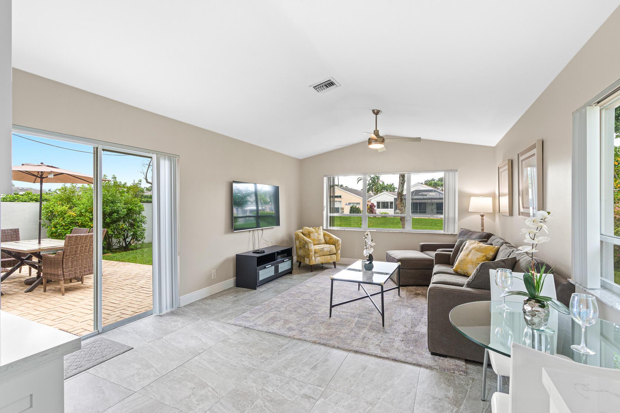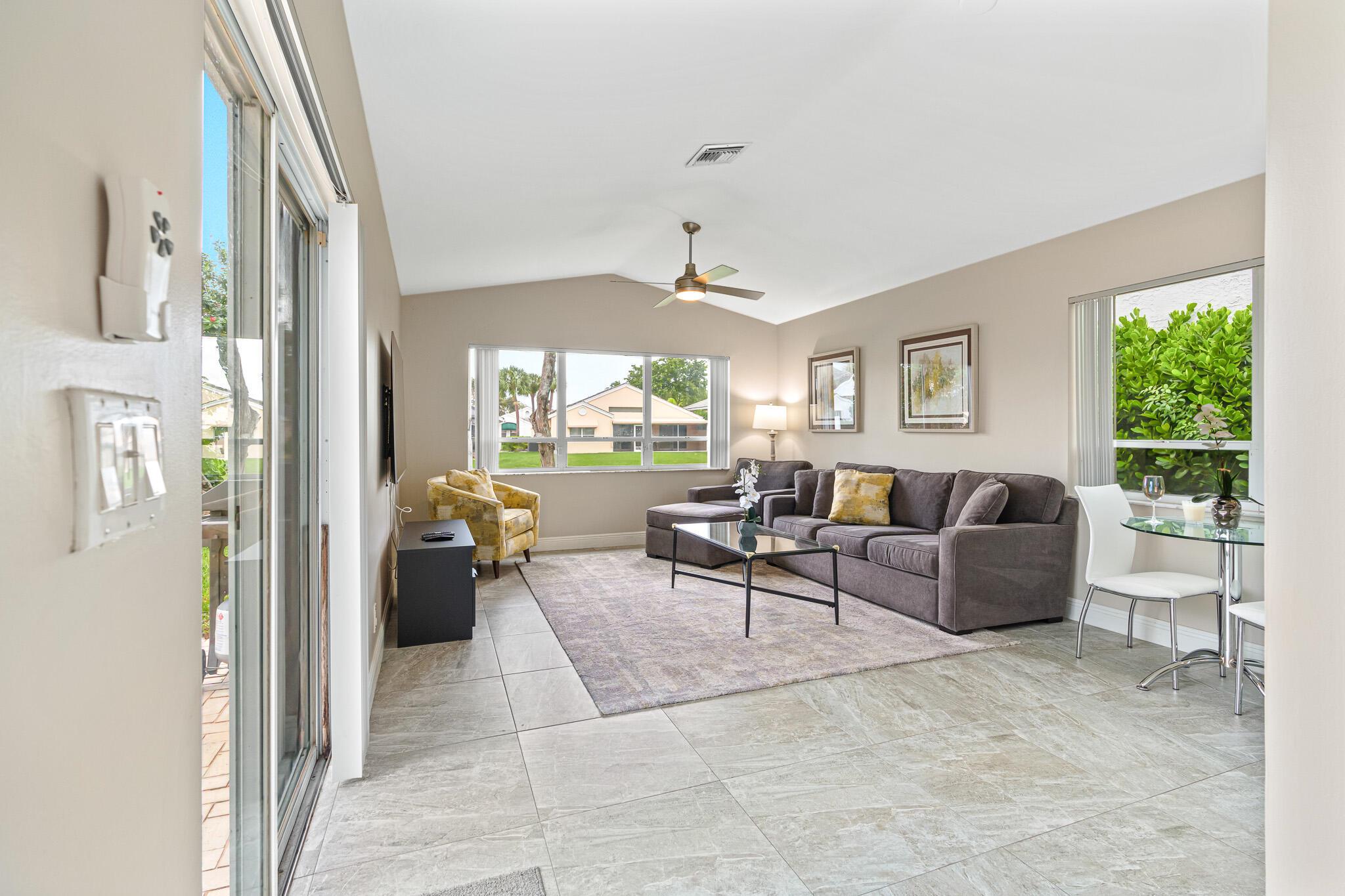Welcome to your serene oasis by the lake, where timeless elegance meets modern comfort. This meticulously updated 4-bedroom, 2.5-bath home offers the perfect blend of space and style, thoughtfully designed split floor plan. Home has a modern design, featuring an updated kitchen complete with Quartz countertops, fine wood cabinets, ss appliances. Porcelain tile floors lend a touch of sophistication to the living spaces, creating an inviting atmosphere. Master Bedroom features new porcelain floors, walk in closet. This home has been thoughtfully maintained with a newer AC unit (2016), water heater(2022).Furniture is optional. Nestled in a gated community, with a community Pool. Boca Pointe is none mandatory membership, with option to join the Social, Golf, Tennis. Call for info and showings