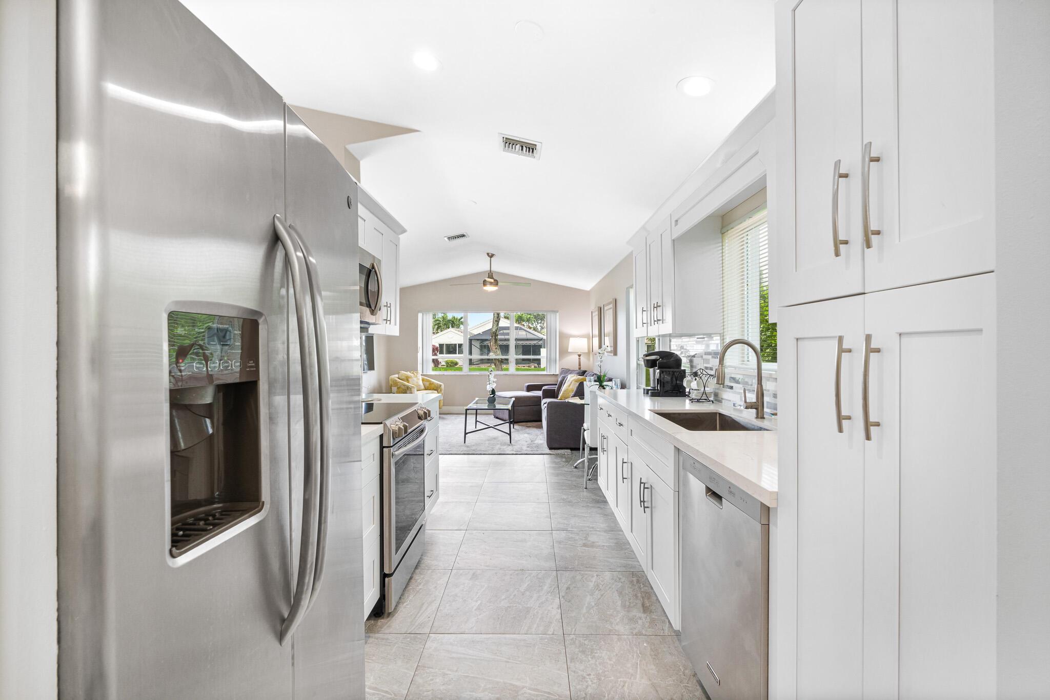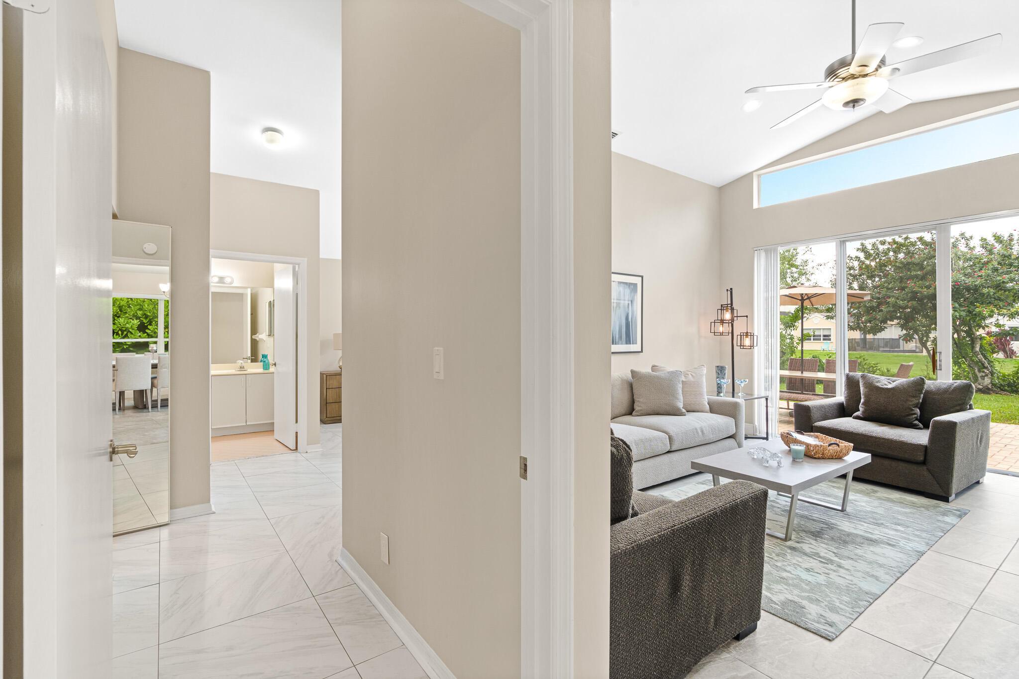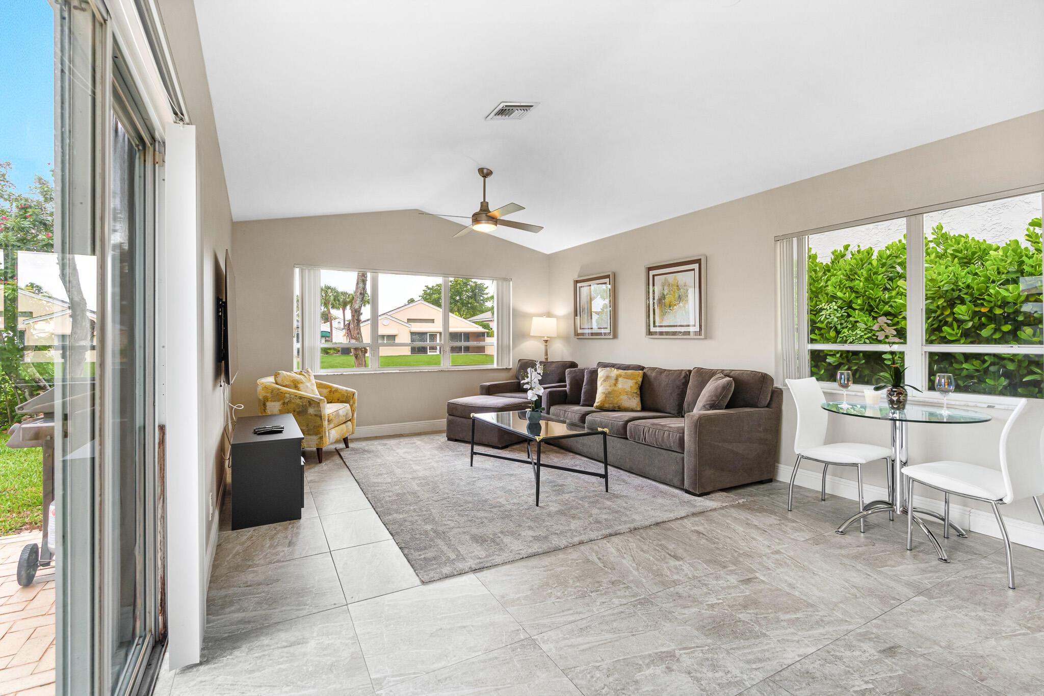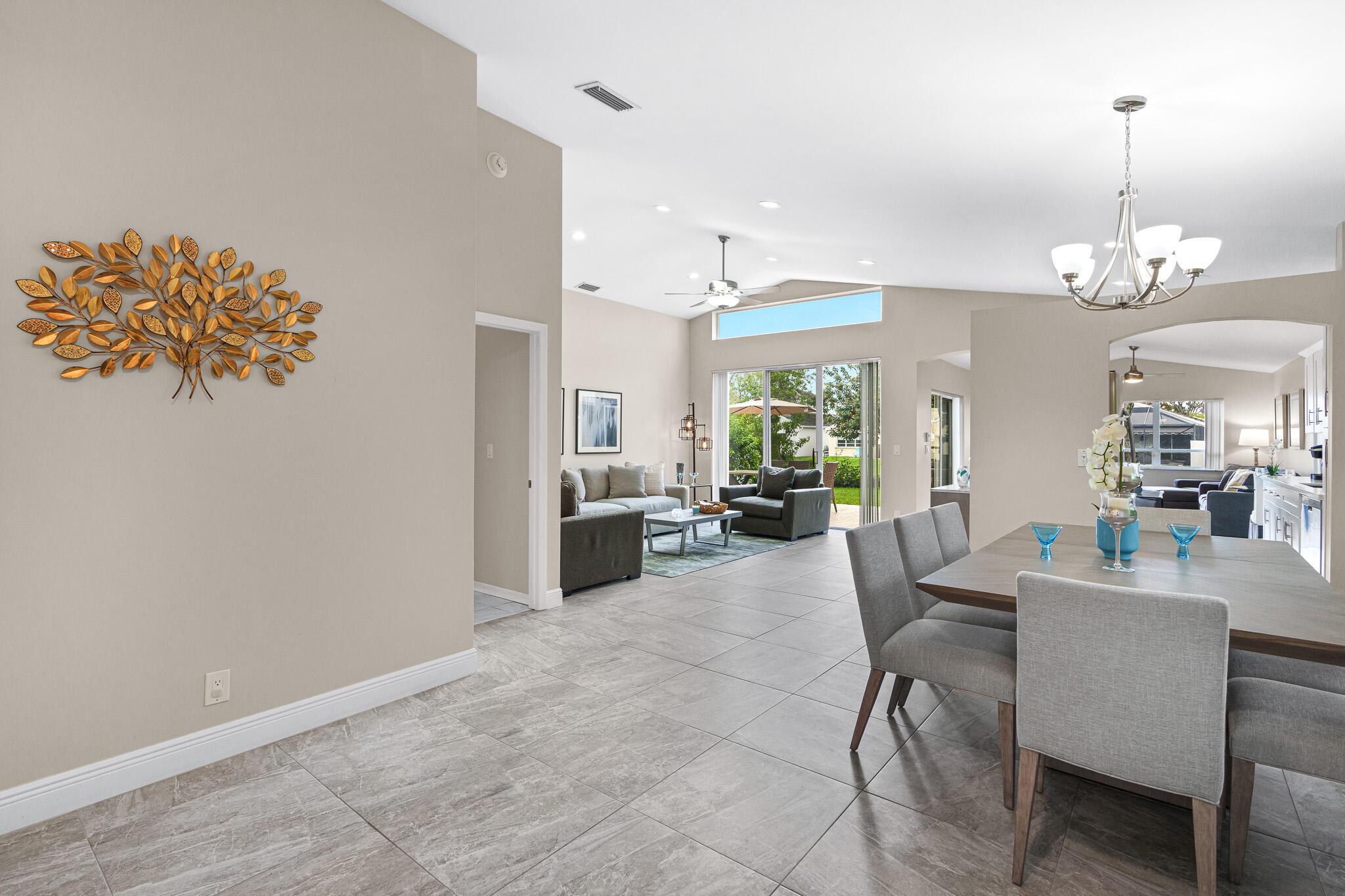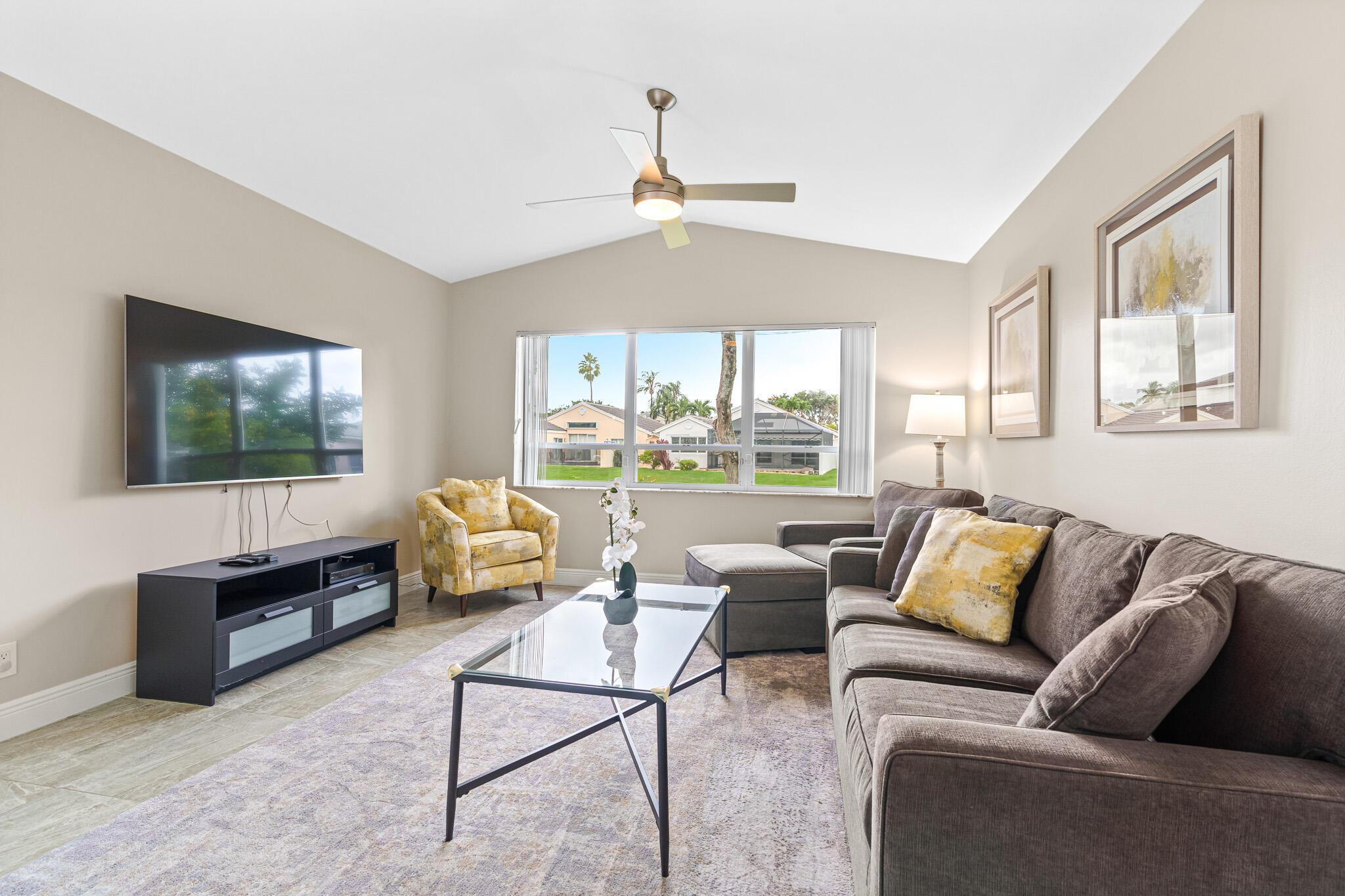 Welcome to your serene oasis by the lake, where timeless elegance meets modern comfort. This meticulously updated 4-bedroom, 2.5-bath home offers the perfect blend of space and style, thoughtfully designed split floor plan. Home has a modern design, featuring an updated kitchen complete with Quartz countertops, fine wood cabinets, ss appliances. Porcelain tile floors lend a touch of sophistication to the living spaces, creating an inviting atmosphere. Master Bedroom features new porcelain floors, walk in closet. This home has been thoughtfully maintained with a newer AC unit (2016), water heater(2022).Furniture is optional. Nestled in a gated community, with a community Pool. Boca Pointe is none mandatory membership, with option to join the Social, Golf, Tennis. Call for info and showings