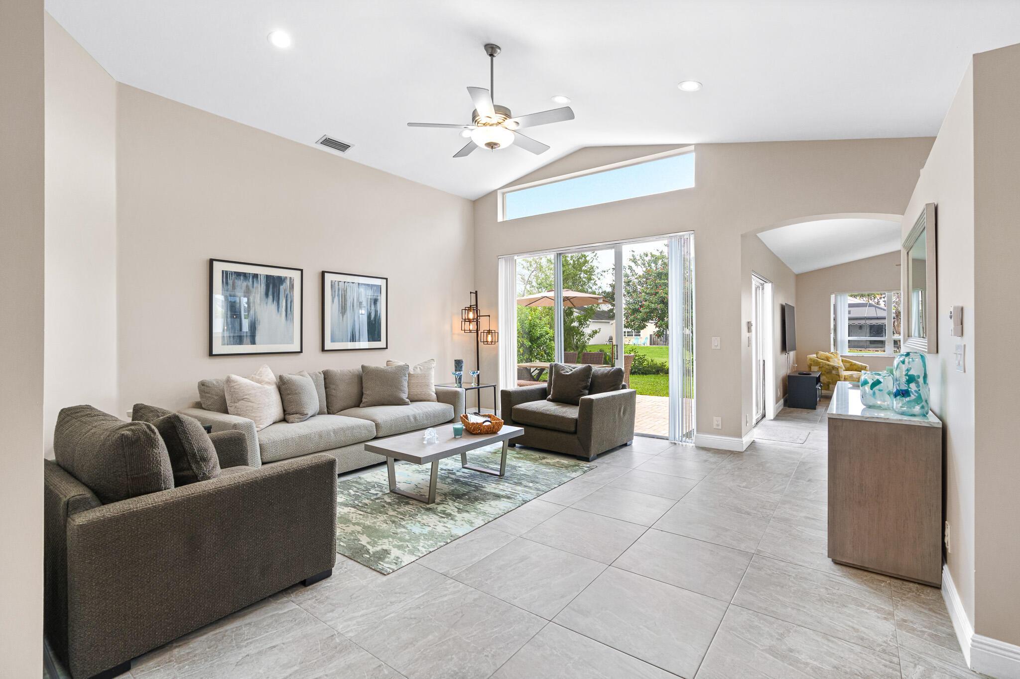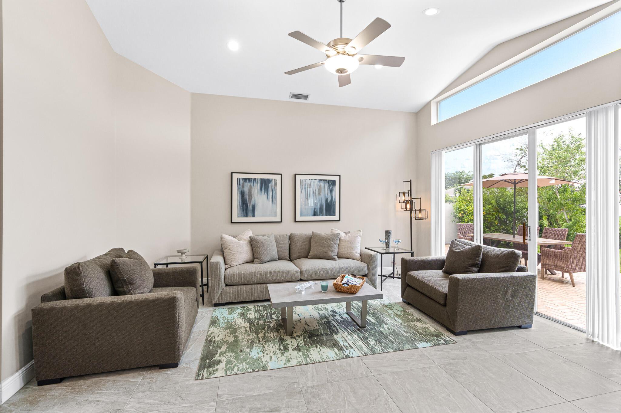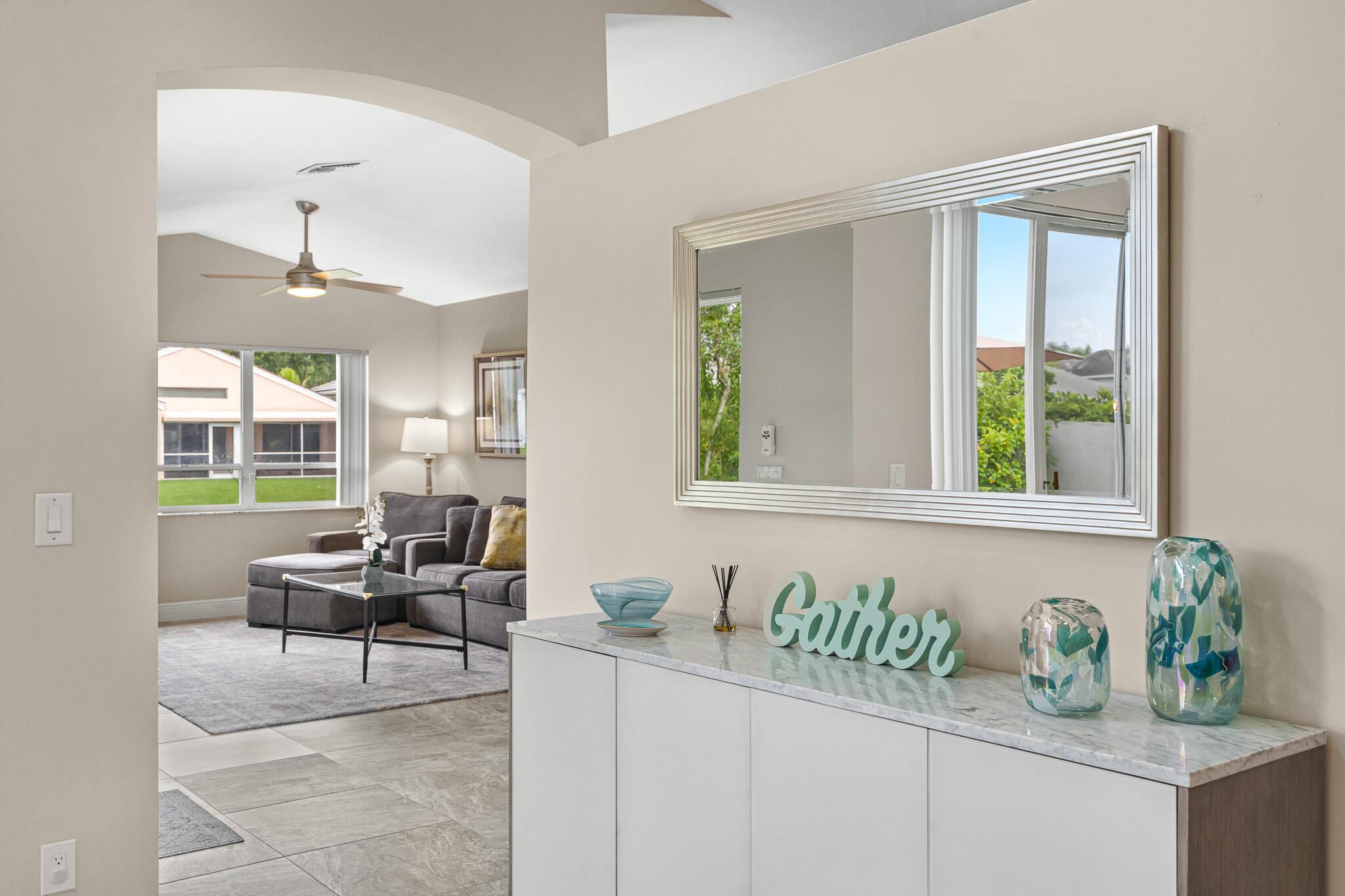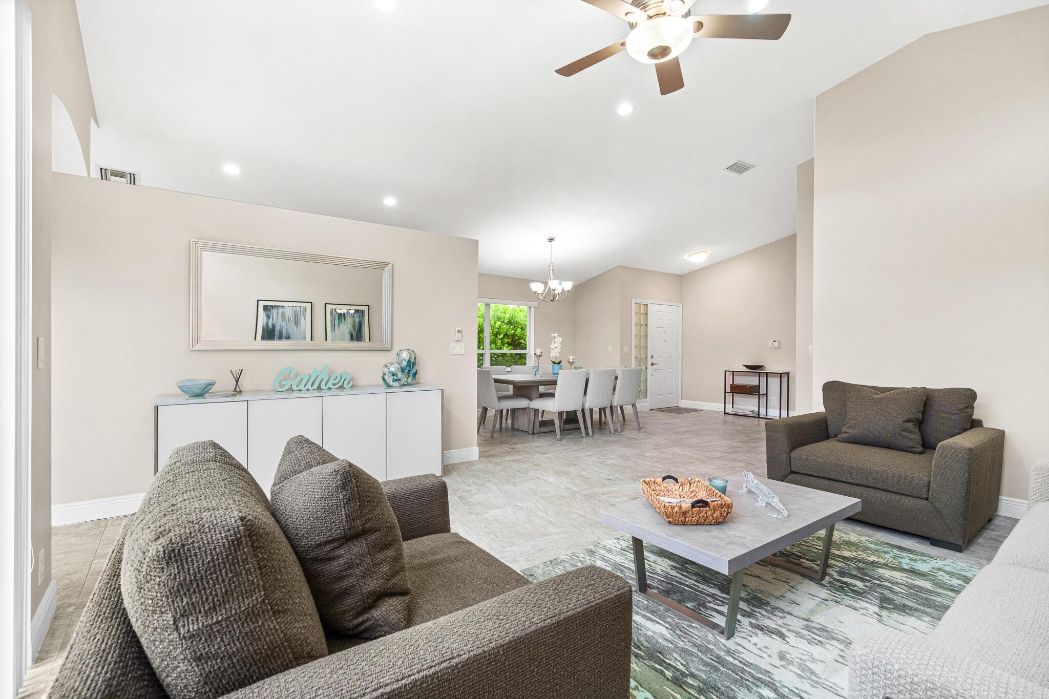 Welcome to your serene oasis by the lake, where timeless elegance meets modern comfort. This meticulously updated 4-bedroom, 2.5-bath home offers the perfect blend of space and style, thoughtfully designed split floor plan. Home has a modern design, featuring an updated kitchen complete with Quartz countertops, fine wood cabinets, ss appliances. Porcelain tile floors lend a touch of sophistication to the living spaces, creating an inviting atmosphere. Master Bedroom features new porcelain floors, walk in closet. This home has been thoughtfully maintained with a newer AC unit (2016), water heater(2022).Furniture is optional. Nestled in a gated community, with a community Pool. Boca Pointe is none mandatory membership, with option to join the Social, Golf, Tennis. Call for info and showings