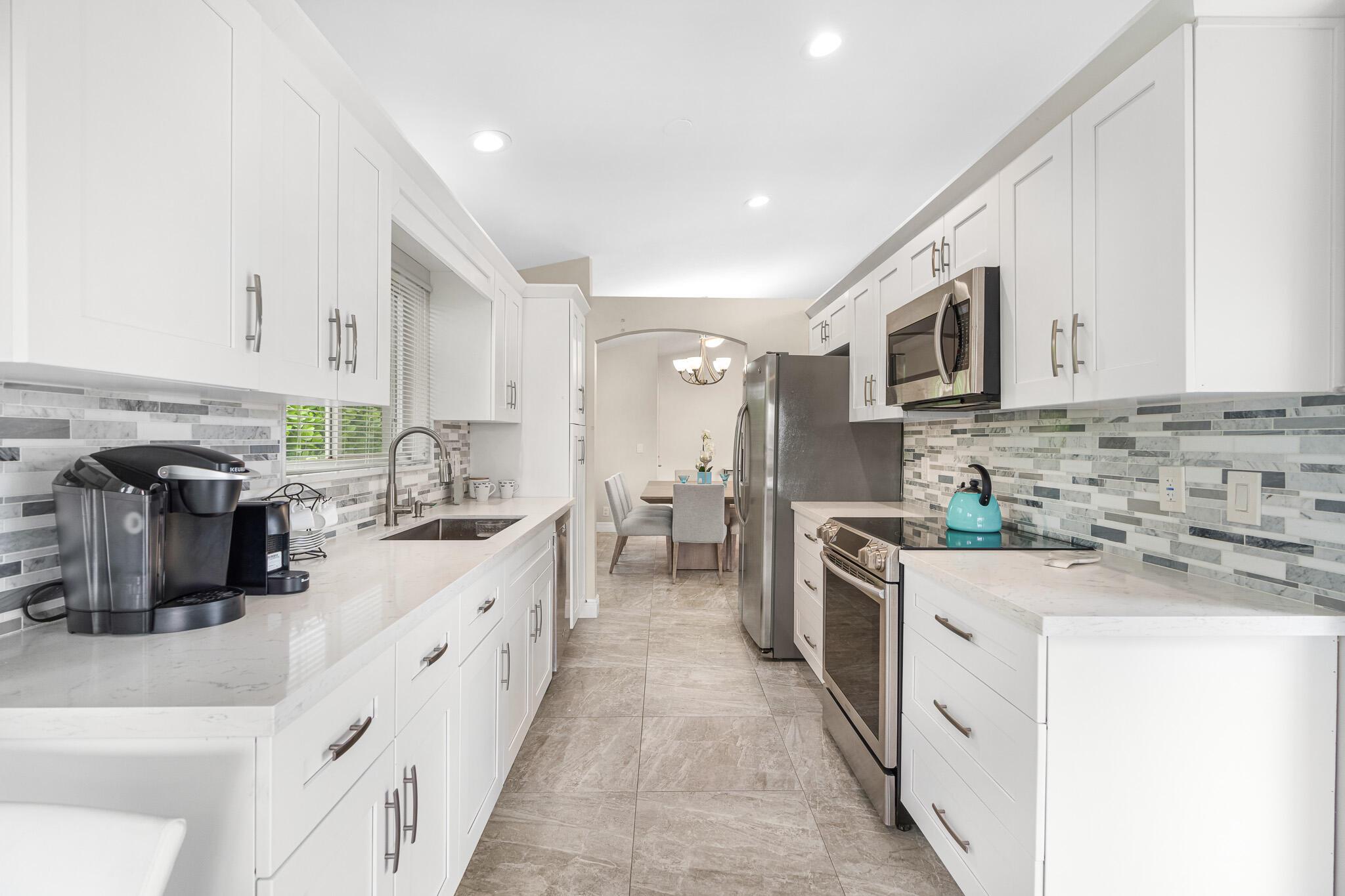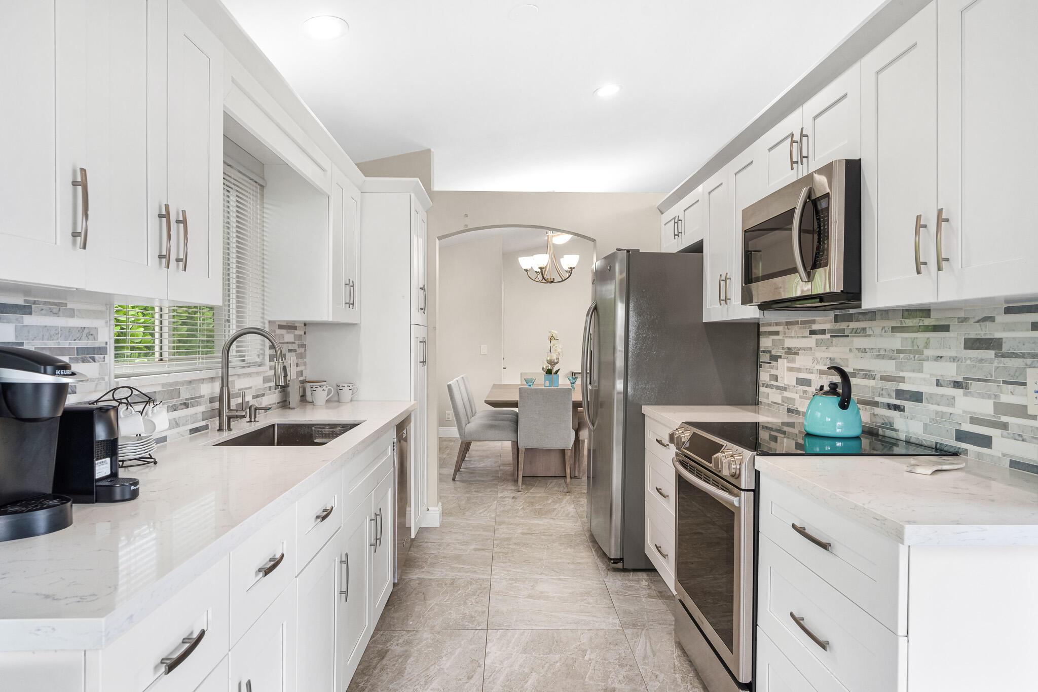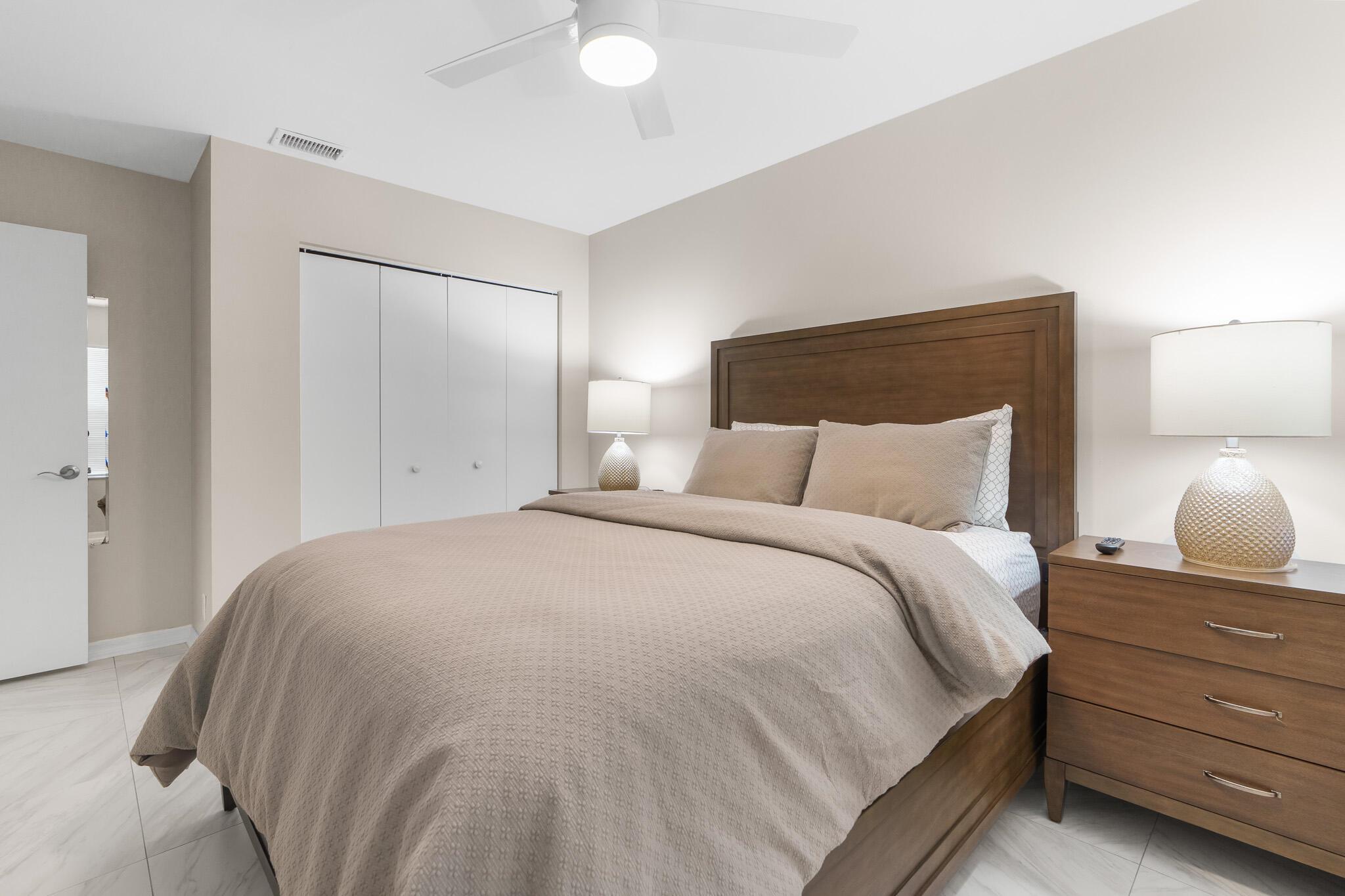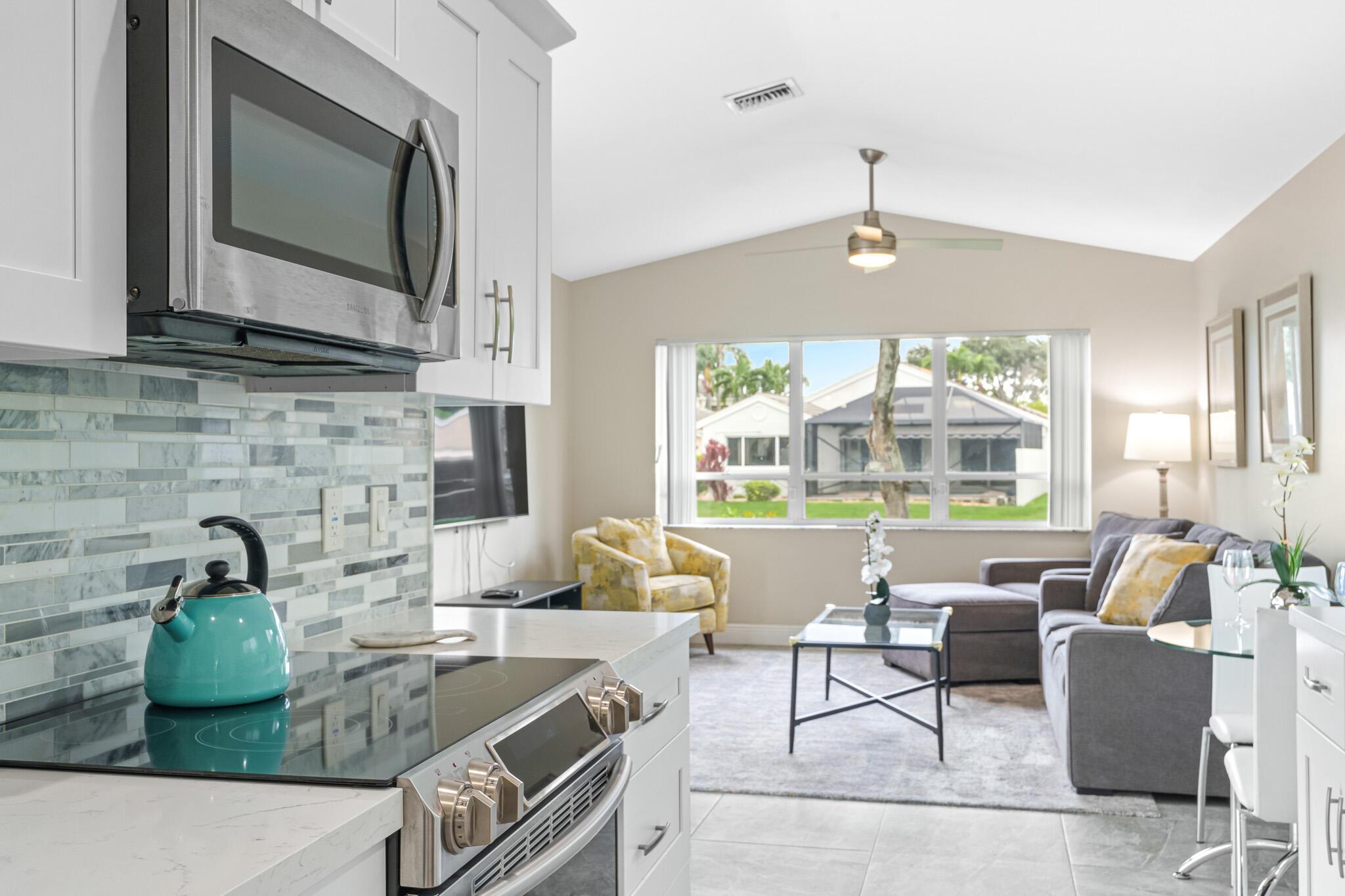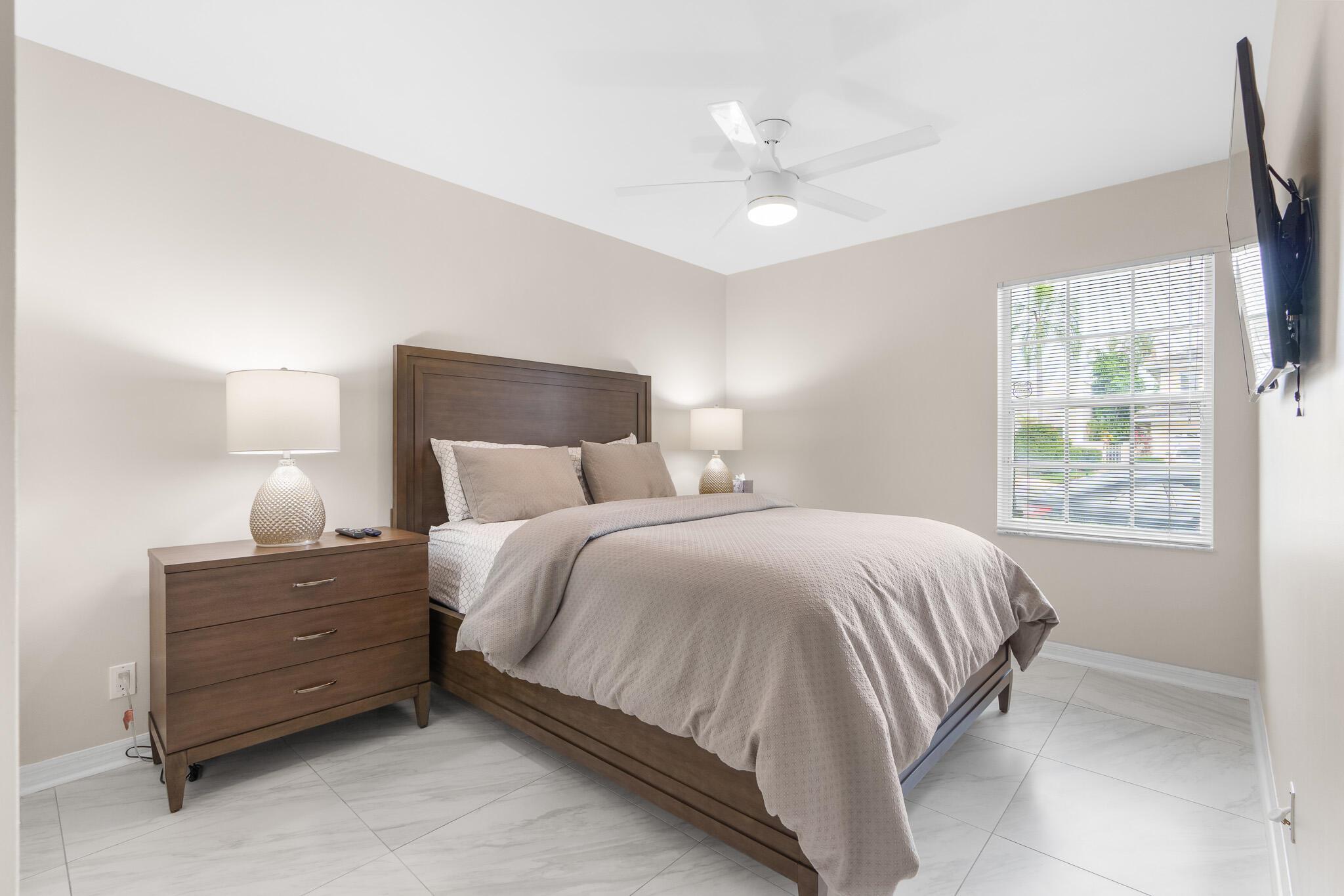 Welcome to your serene oasis by the lake, where timeless elegance meets modern comfort. This meticulously updated 4-bedroom, 2.5-bath home offers the perfect blend of space and style, thoughtfully designed split floor plan. Home has a modern design, featuring an updated kitchen complete with Quartz countertops, fine wood cabinets, ss appliances. Porcelain tile floors lend a touch of sophistication to the living spaces, creating an inviting atmosphere. Master Bedroom features new porcelain floors, walk in closet. This home has been thoughtfully maintained with a newer AC unit (2016), water heater(2022).Furniture is optional. Nestled in a gated community, with a community Pool. Boca Pointe is none mandatory membership, with option to join the Social, Golf, Tennis. Call for info and showings