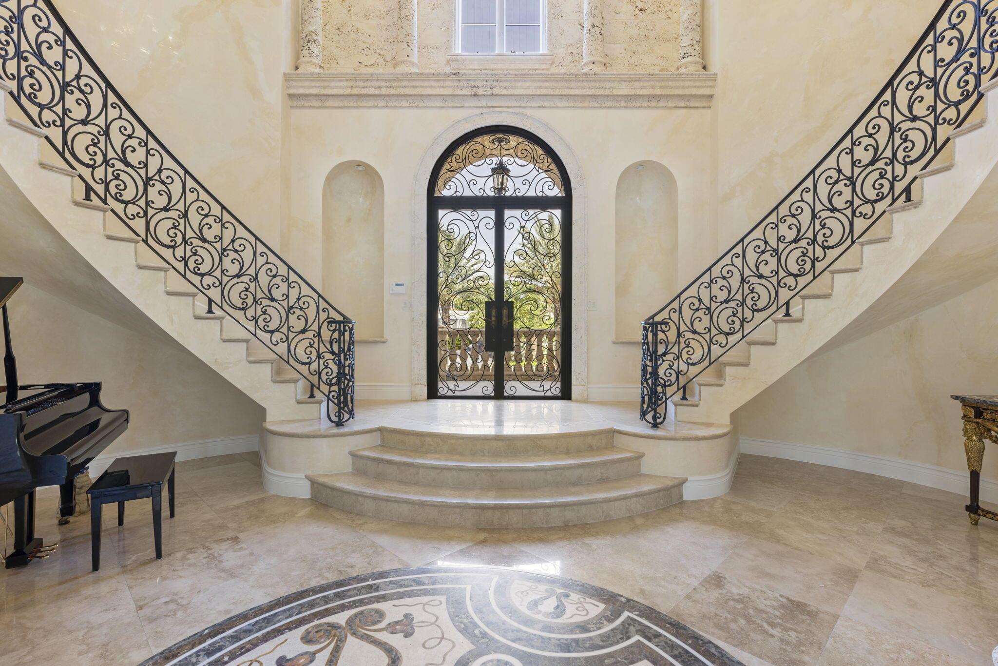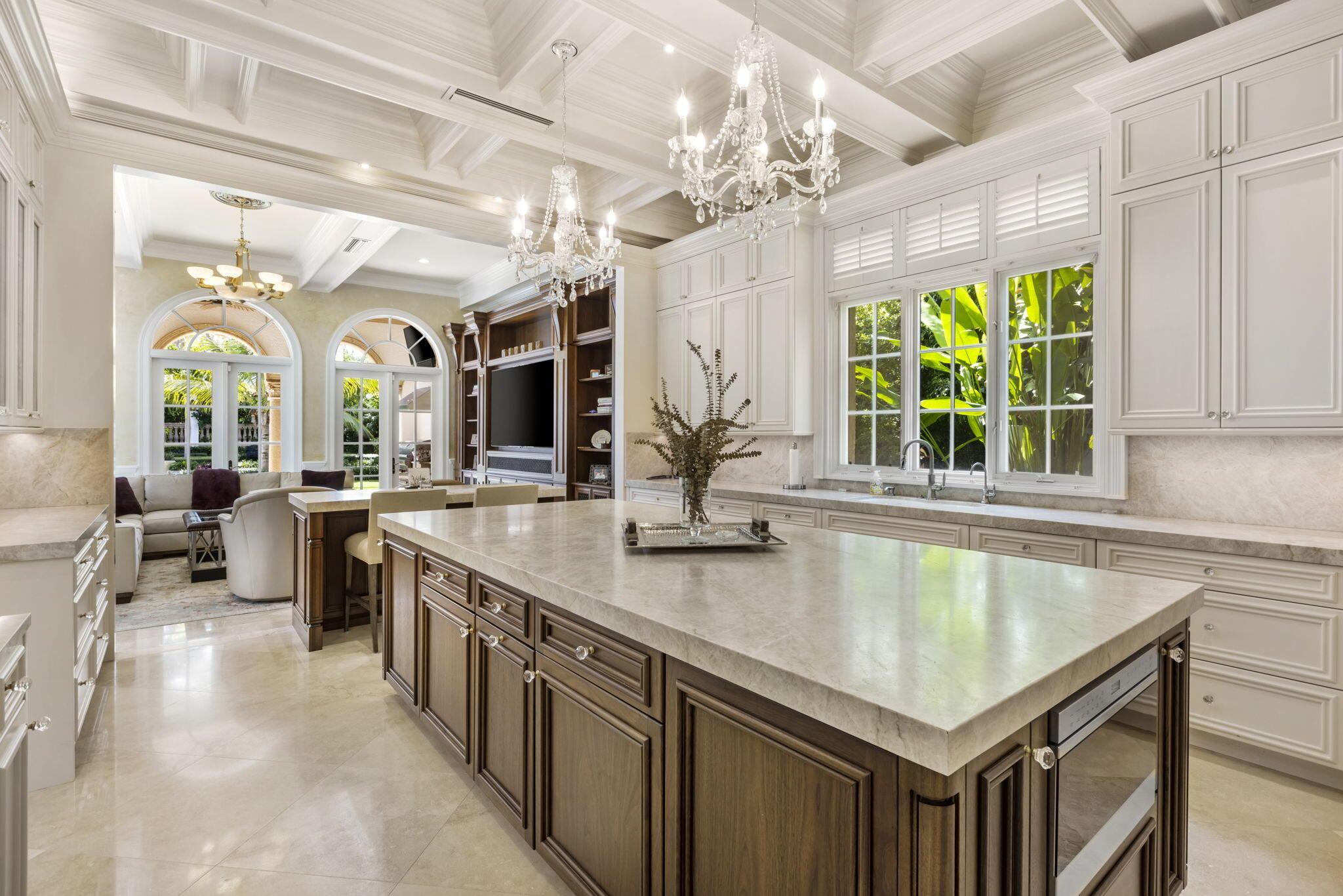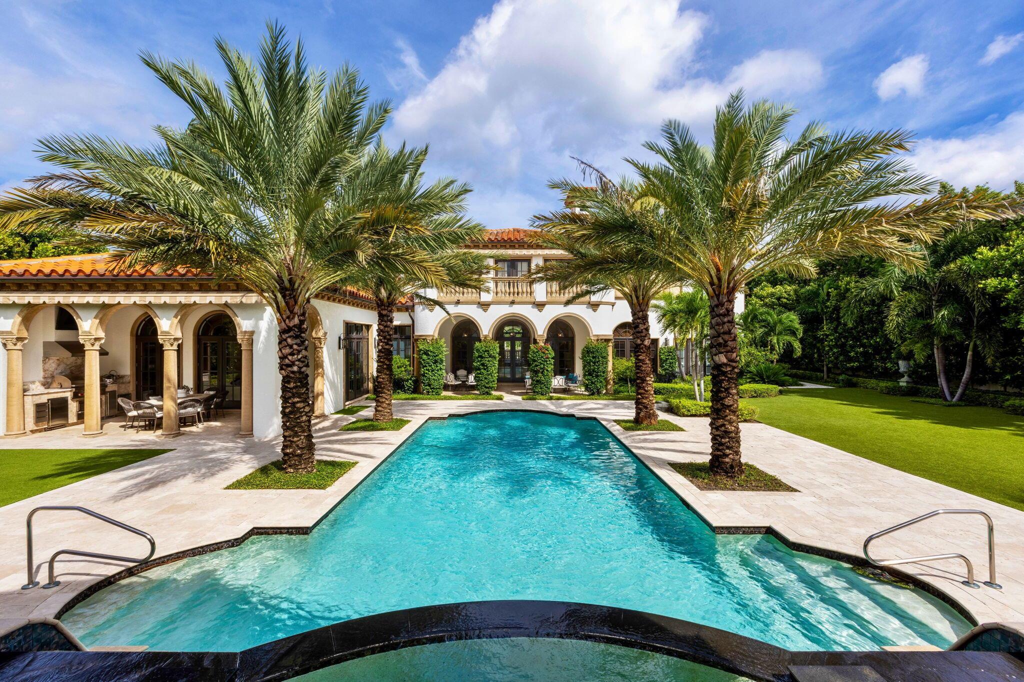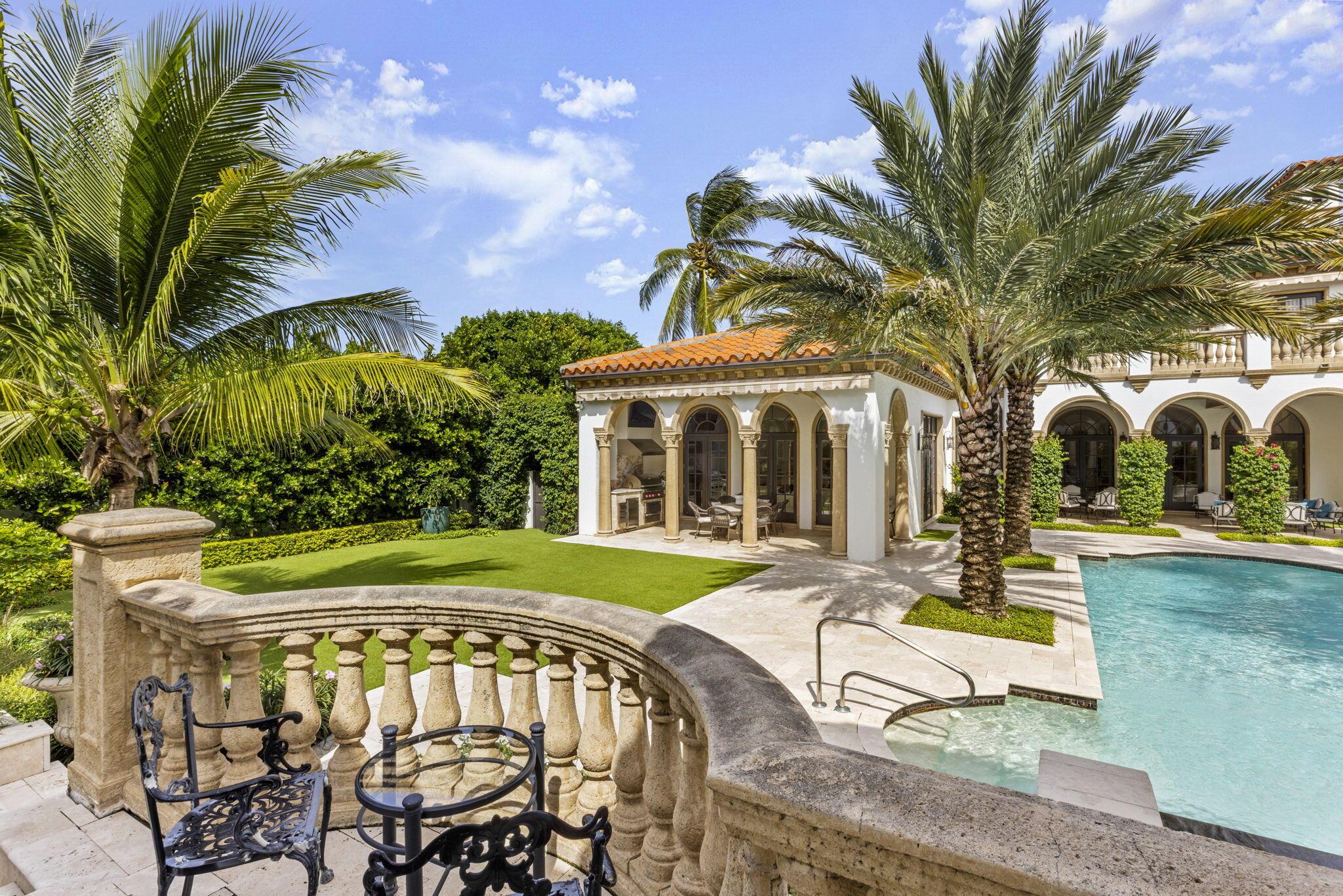 Discover the splendor of this updated Mediterranean home with a high elevation in the Estate Section, boasting a prime location near the ocean with deeded beach access. Set on a sprawling high elevation 3/4-acre plot, this magnificent residence offers an impressive eight bedrooms/nine bathrooms including separate guest house. Indulge in the luxury of a private home gym, wood-paneled library/office, and a primary bedroom suite featuring separate bathrooms with custom cabinetry, spacious walk-in closets, and detailed ceilings throughout. Step onto the expansive balcony overlooking the manicured gardens and resort style pool/fountain. Perfect for entertaining, the home's modern floorplan showcases a remarkable, renovated chef's kitchen off of the family room and outdoor loggia area.