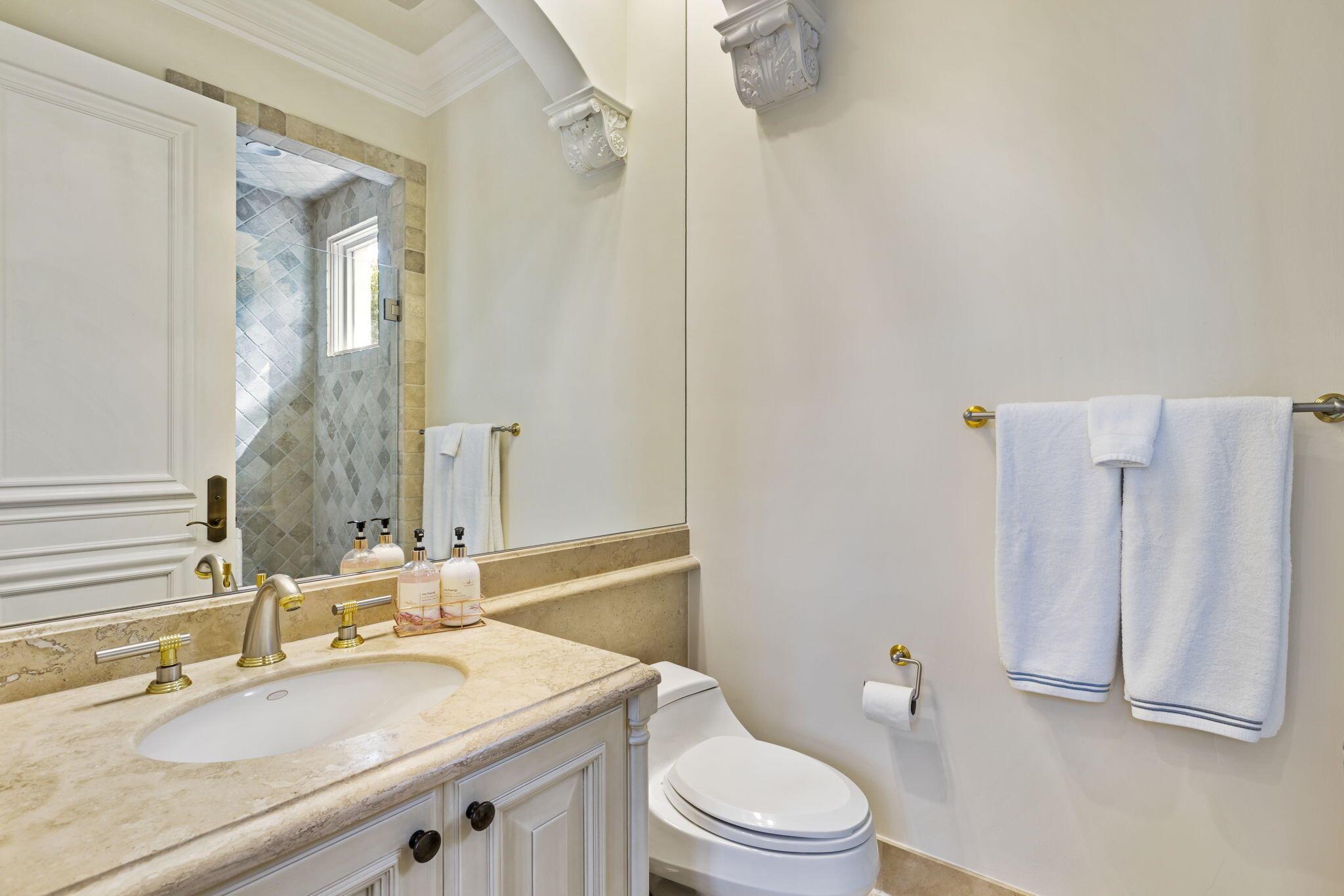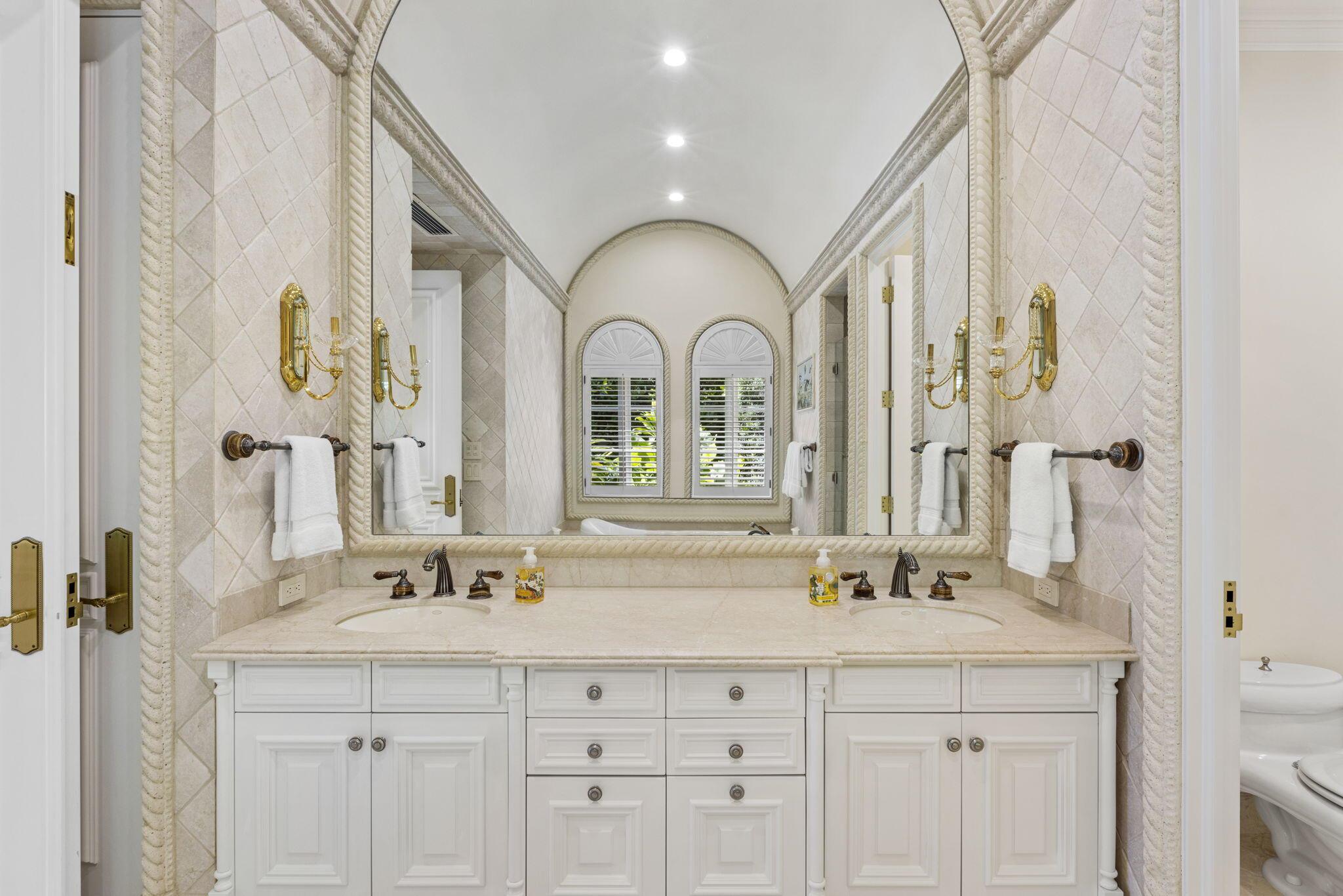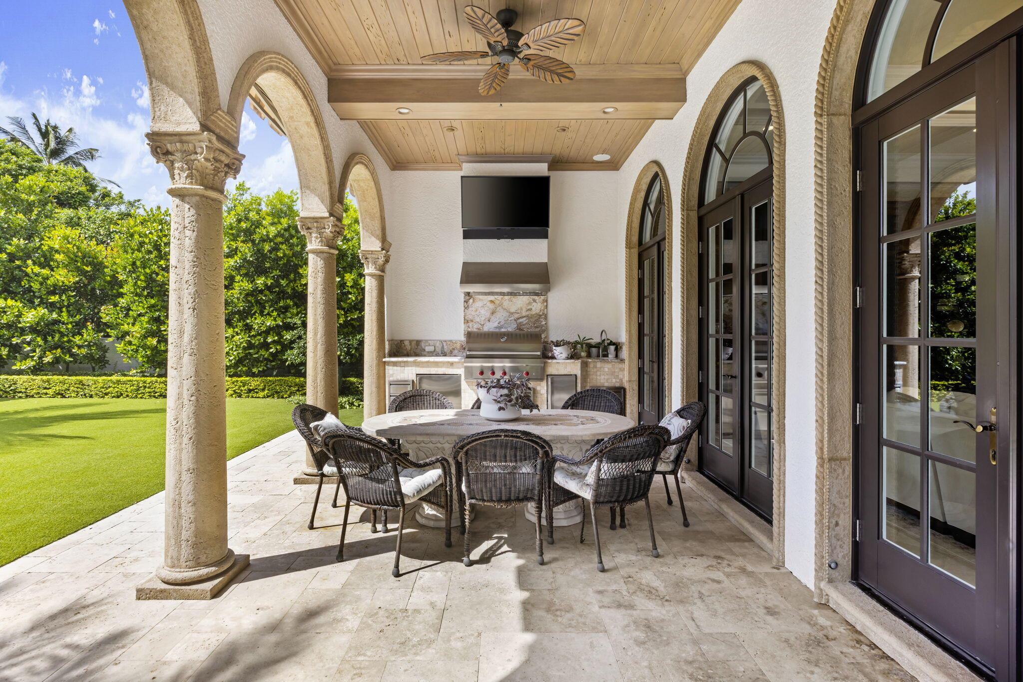 Discover the splendor of this updated Mediterranean home with a high elevation in the Estate Section, boasting a prime location near the ocean with deeded beach access. Set on a sprawling high elevation 3/4-acre plot, this magnificent residence offers an impressive eight bedrooms/nine bathrooms including separate guest house. Indulge in the luxury of a private home gym, wood-paneled library/office, and a primary bedroom suite featuring separate bathrooms with custom cabinetry, spacious walk-in closets, and detailed ceilings throughout. Step onto the expansive balcony overlooking the manicured gardens and resort style pool/fountain. Perfect for entertaining, the home's modern floorplan showcases a remarkable, renovated chef's kitchen off of the family room and outdoor loggia area.