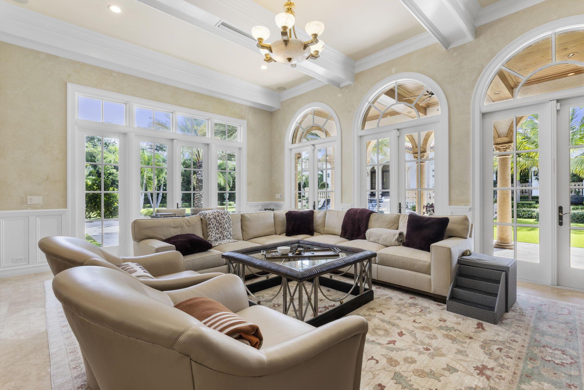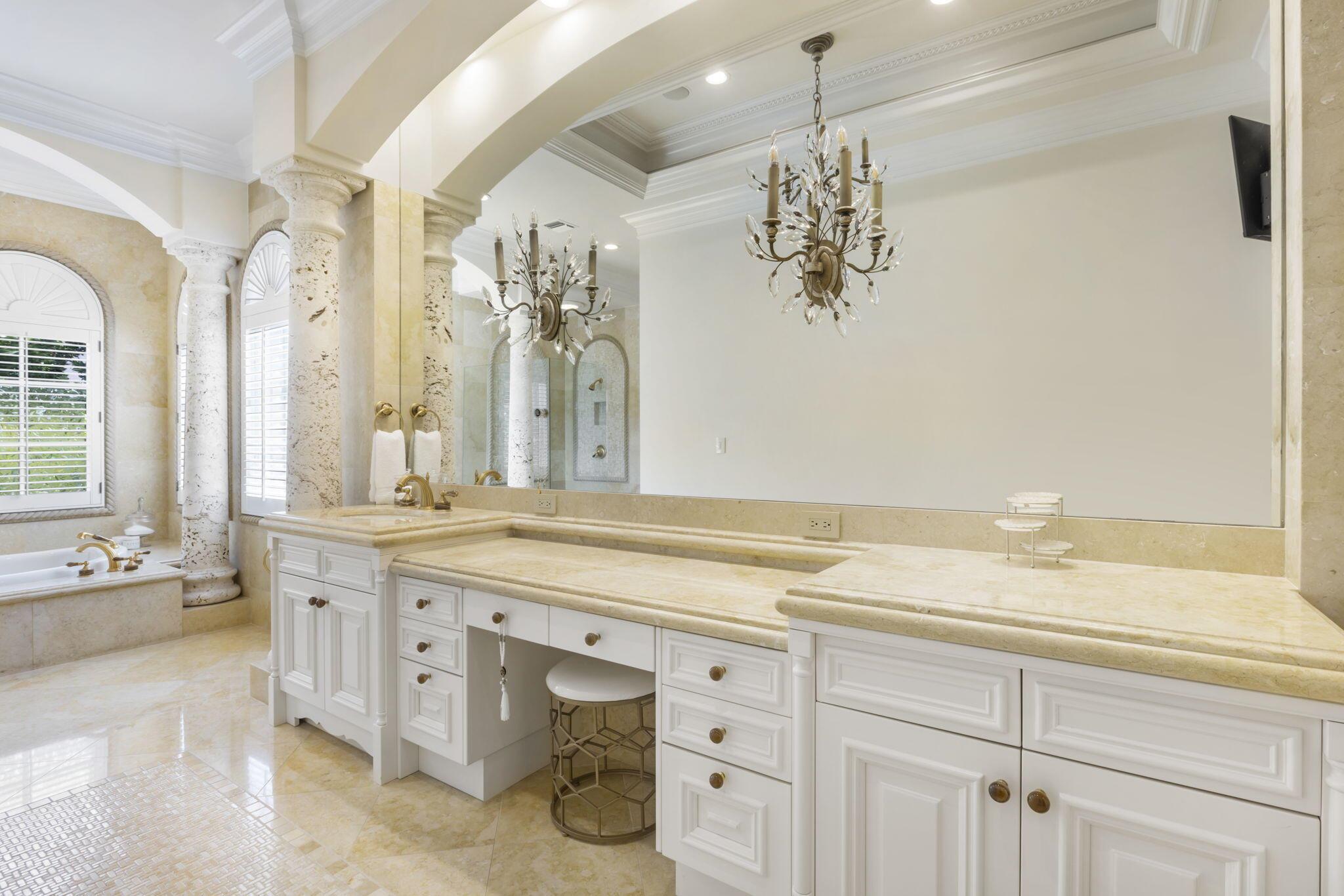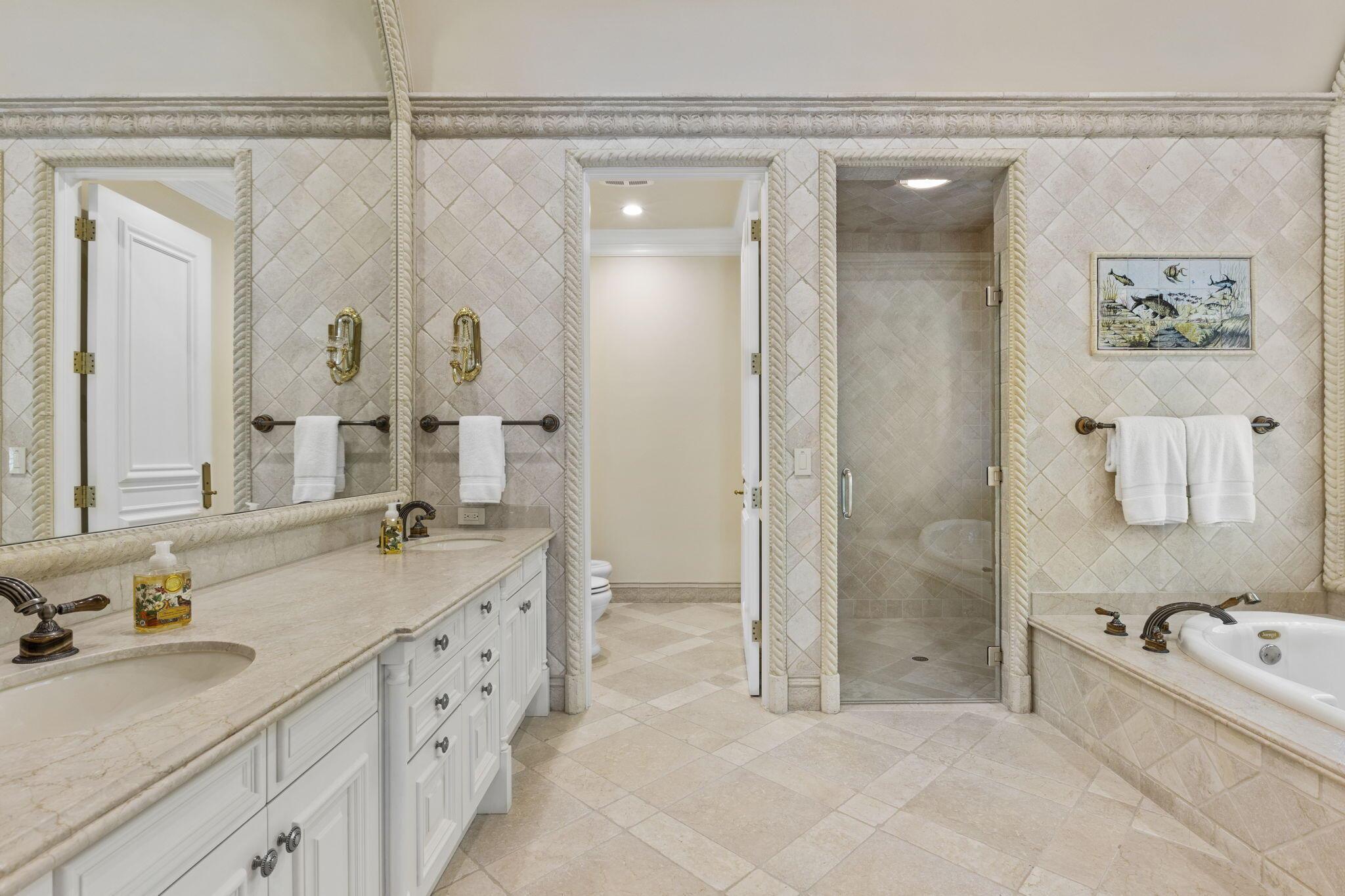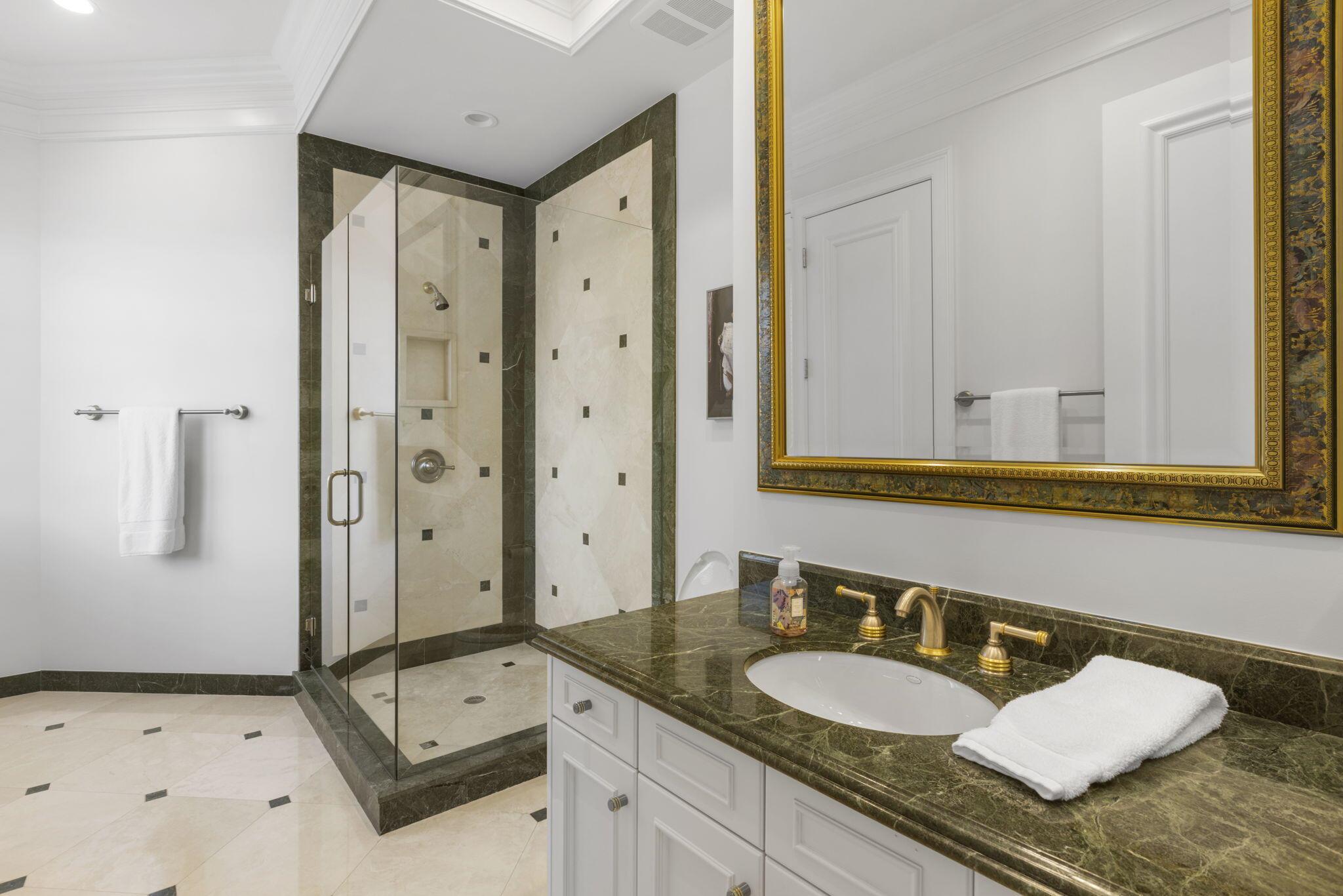 Discover the splendor of this updated Mediterranean home with a high elevation in the Estate Section, boasting a prime location near the ocean with deeded beach access. Set on a sprawling high elevation 3/4-acre plot, this magnificent residence offers an impressive eight bedrooms/nine bathrooms including separate guest house. Indulge in the luxury of a private home gym, wood-paneled library/office, and a primary bedroom suite featuring separate bathrooms with custom cabinetry, spacious walk-in closets, and detailed ceilings throughout. Step onto the expansive balcony overlooking the manicured gardens and resort style pool/fountain. Perfect for entertaining, the home's modern floorplan showcases a remarkable, renovated chef's kitchen off of the family room and outdoor loggia area.