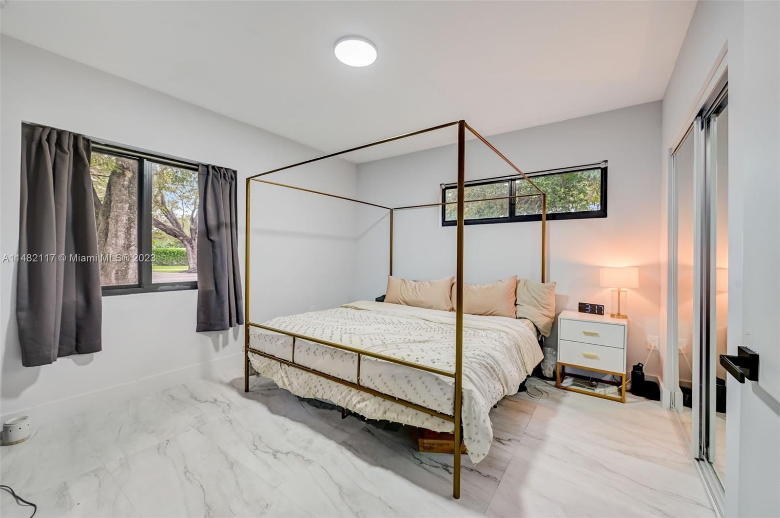 Location! Renovated modern 3/2 pool home in North Miami sits on .29 acres of land. Everything about this home spells comfort, relaxation, privacy. Tree lined street, circular driveway and garage. Open Living/Dining/Kitchen space with very pretty Quartz Countertops, stainless steel appliances and beautiful custom cabinets. Breakfast Bar for a quick snack, large laundry room. All neutral flooring, impact windows and doors, newer roof. Walk out back to your 60 ft pool, with jacuzzi, "sunning patio" and deck for outdoor entertaining. Space for your boat or RV within fenced property. Mature fruit trees. Third bedroom can be used as home office or gym. Great central location - 19 mins to MIA, 15 mins to Bal Harbour Shops, 17 mins to Downtown/Brickell.
