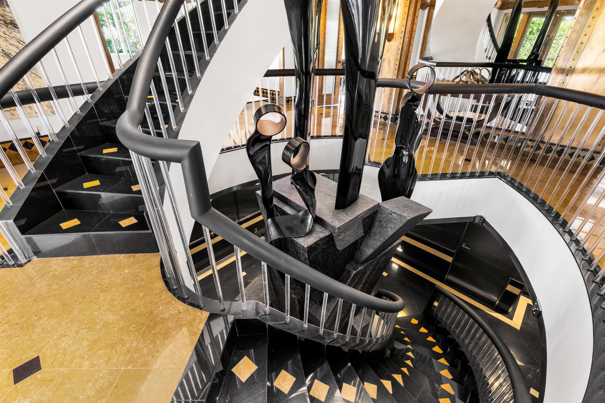 Situated on a coveted 0.81-acre double lot within the prestigious Boca Grove Country Club, this magnificent estate represents a private compound of unparalleled elegance. Comprising four individual structures, all seamlessly united under one single club membership, the property boasts a distinctive mid-century Italian modern motif that captivates upon arrival.Upon entering the copper and stainless steel ornamented main residence (7,641sf) located on the second floor, a grand spiral staircase elegantly connects all three levels of this thoughtfully designed construction. Designed for both extravagant entertaining and privacy, the property features an owner's primary suite on the entire third floor. SEE MORE..
