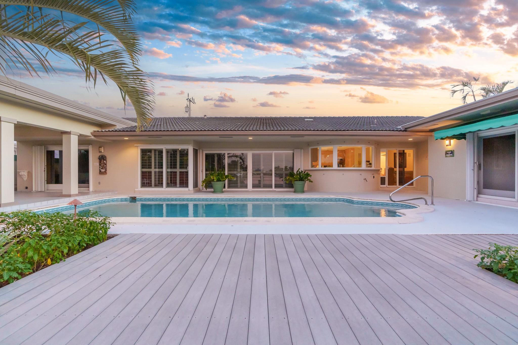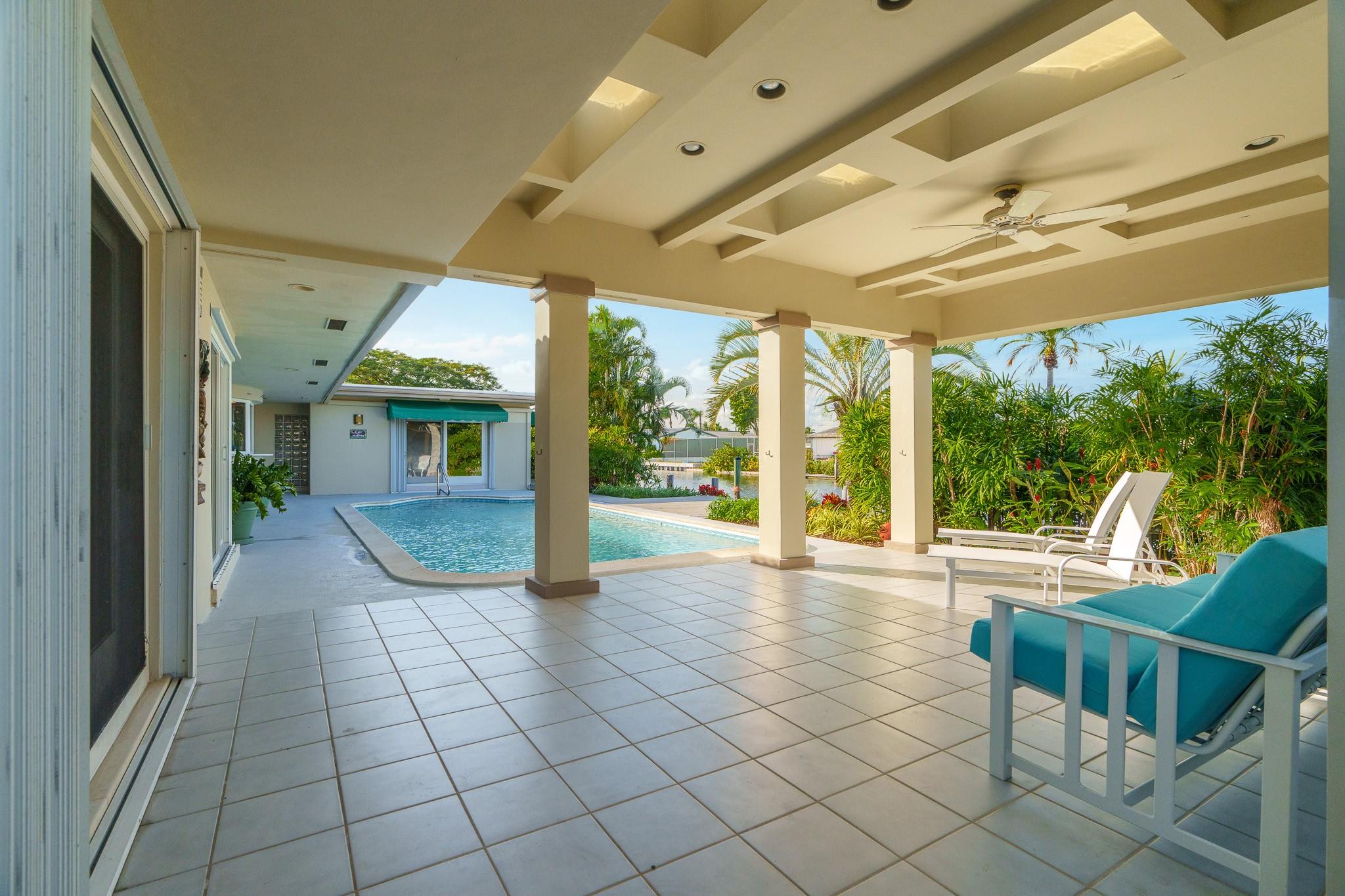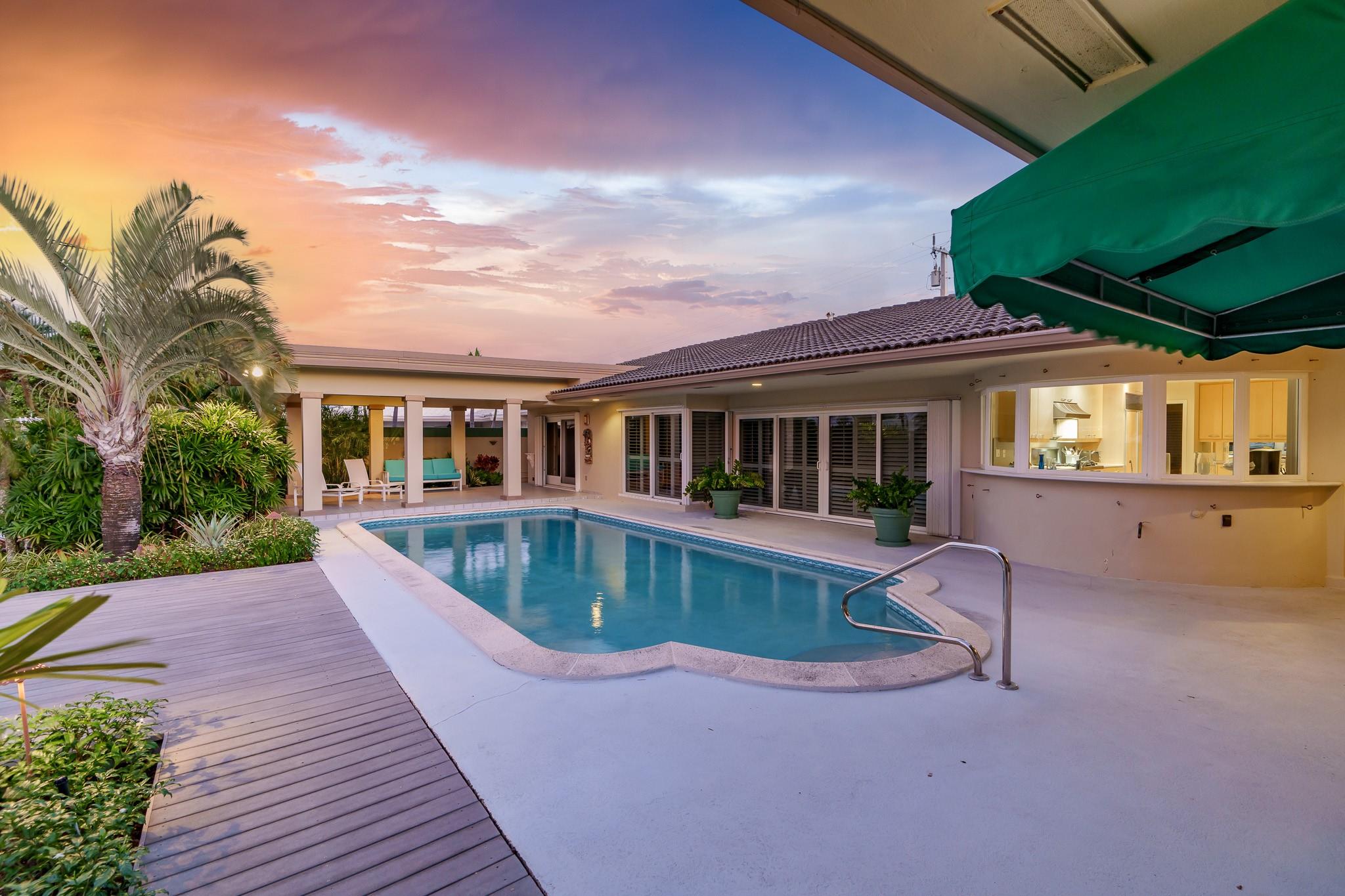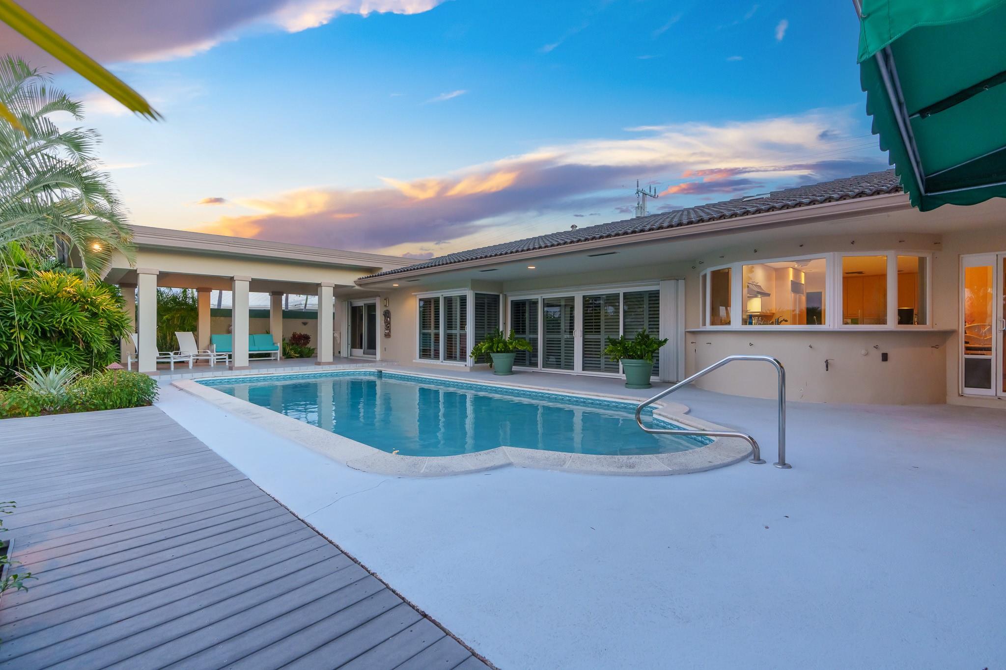 Enter and be awe inspired by expansive, unobstructed views of the canal! An ultra private walled courtyard w/ lush landscaping & lighting is your primary entry into this amazing waterfront pool home. Offering a massive interior space w/ sunken living area, Plantation shutters, an elegant dining area and a split bedroom floorplan w/ 2 primary en suite bedrooms. Each have sliding doors to the exterior pool & dock areas. The spacious primary suite has a walk in closet, a luxurious bath, adjacent sitting area and a huge, architecturally unique covered terrace w/ skylights. Bright, open kitchen w/ plenty of space for preparing meals & entertaining. Equipped w/ high end appliances & plenty of cabinet & storage space. Two car garage & dock with elec & water and 85" of waterfront. Make this yours!
