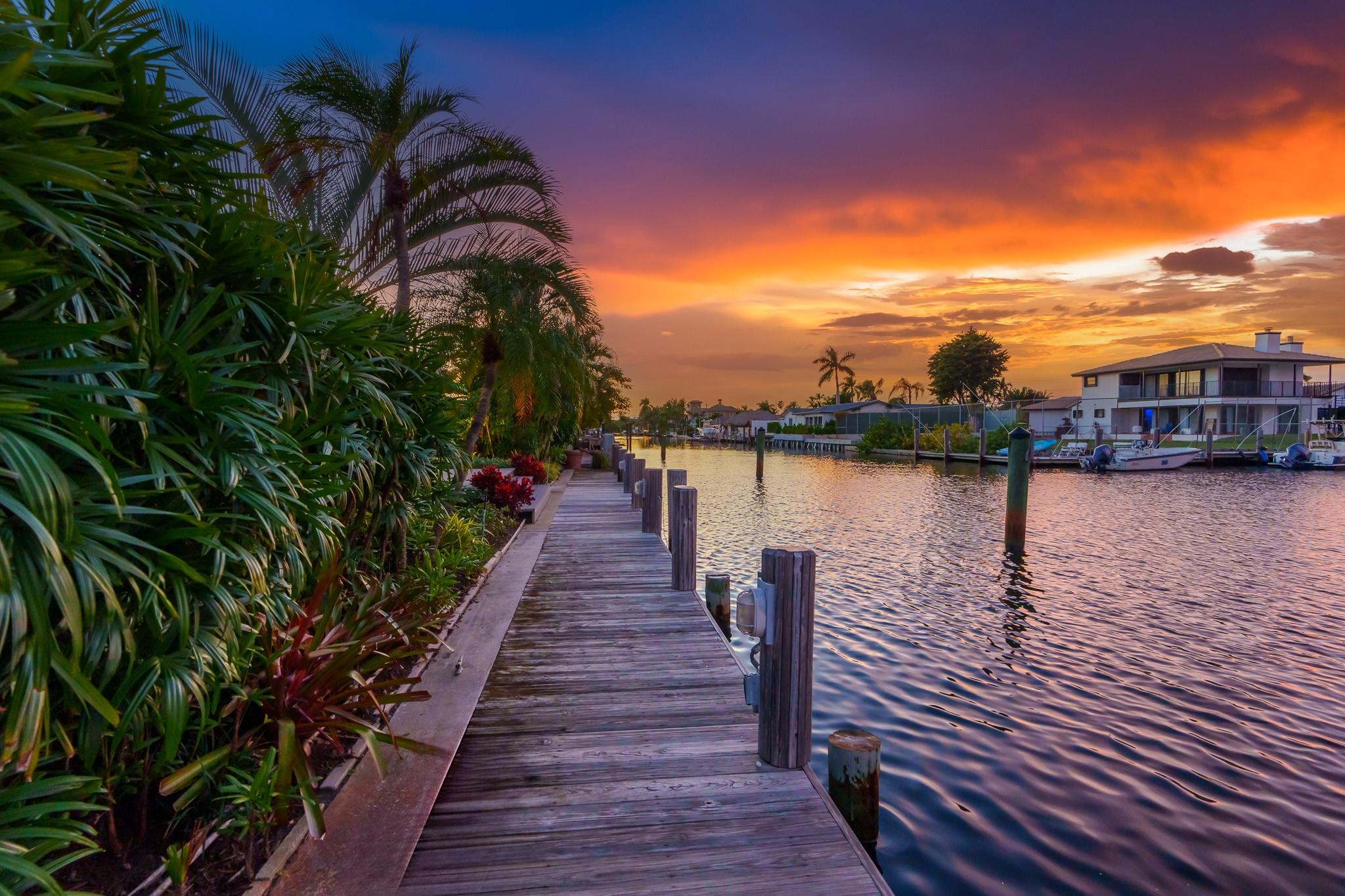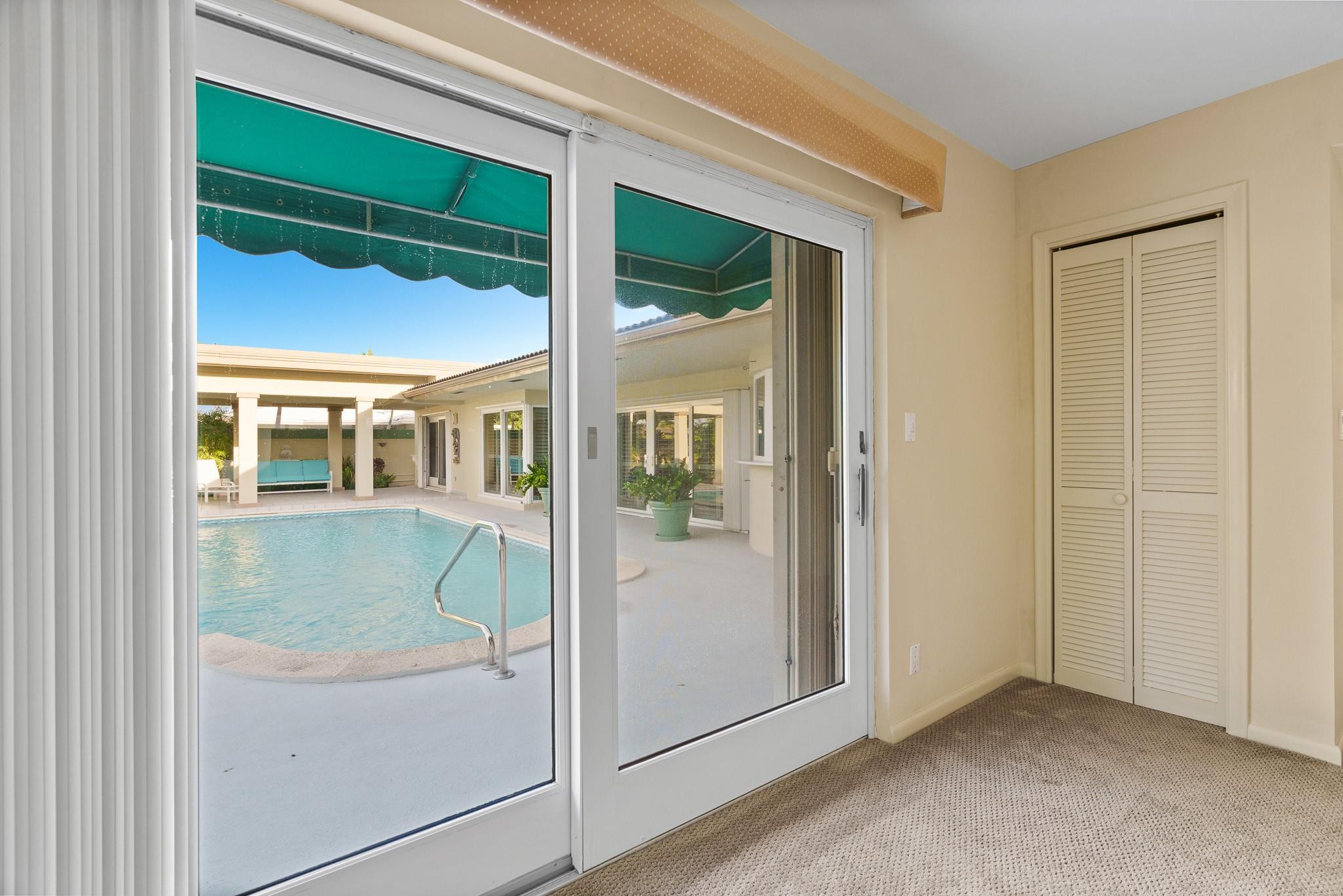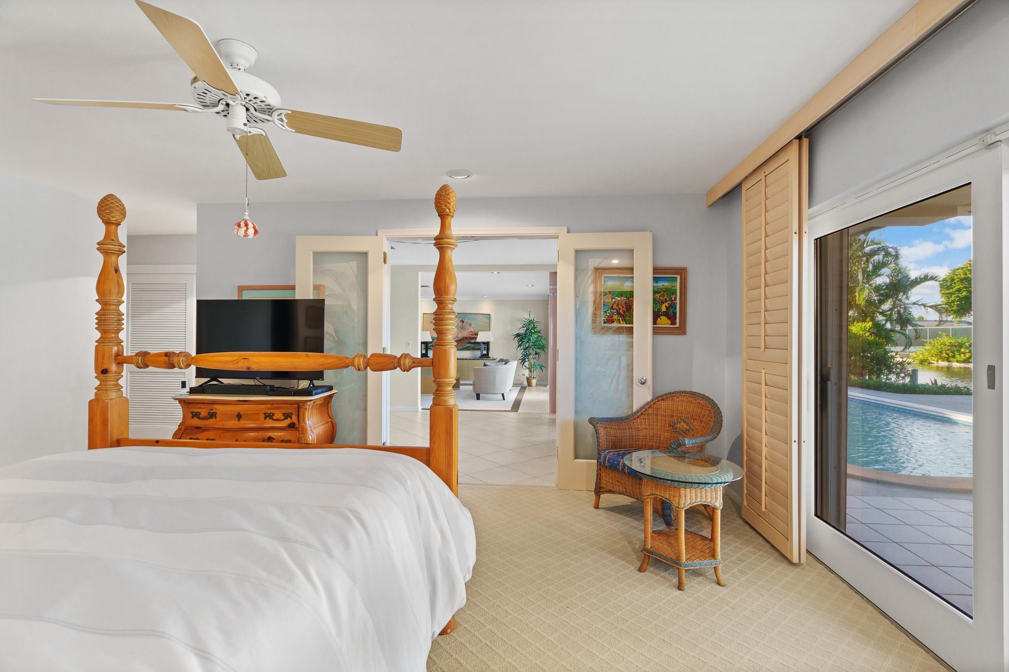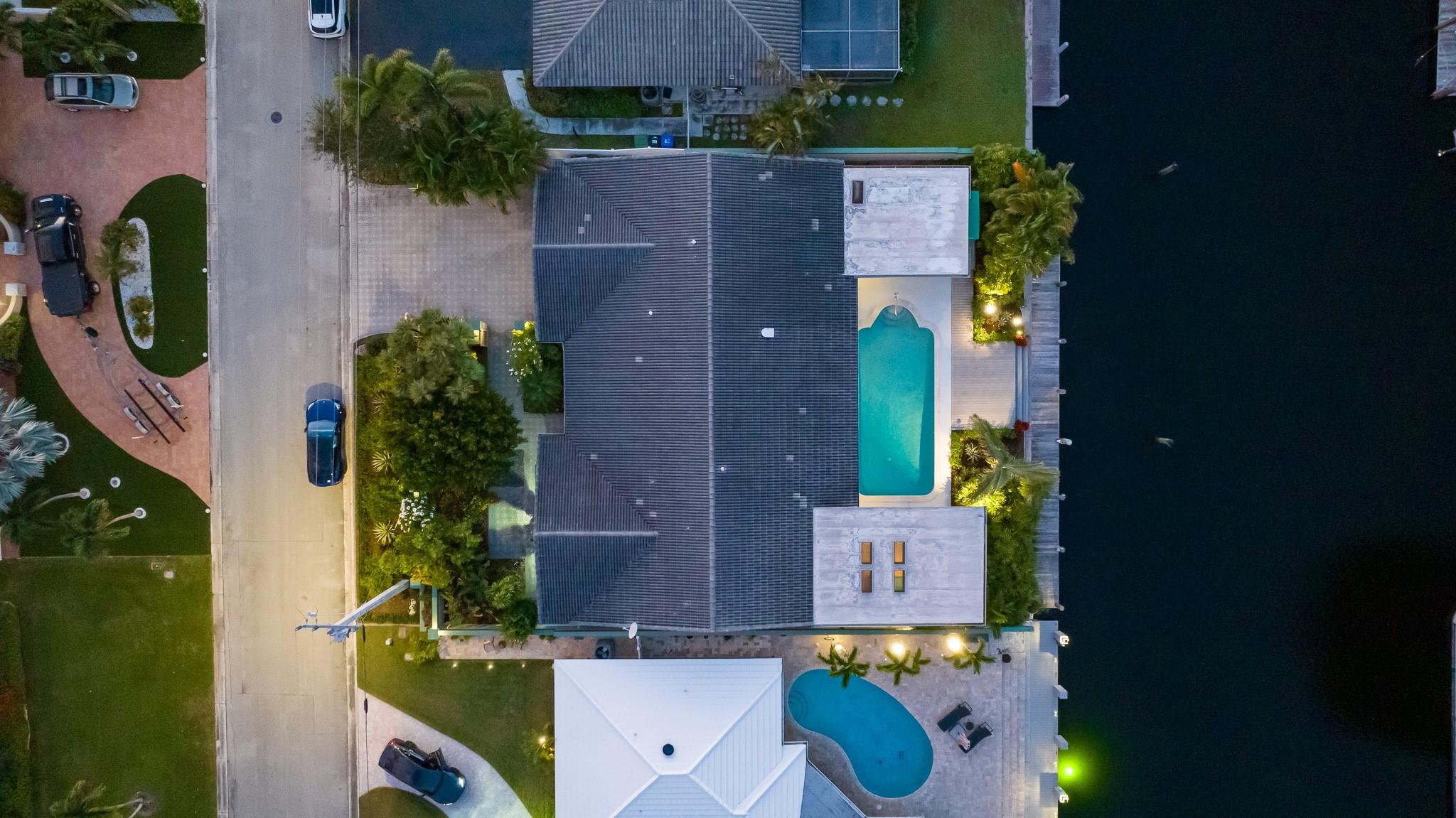 Enter and be awe inspired by expansive, unobstructed views of the canal! An ultra private walled courtyard w/ lush landscaping & lighting is your primary entry into this amazing waterfront pool home. Offering a massive interior space w/ sunken living area, Plantation shutters, an elegant dining area and a split bedroom floorplan w/ 2 primary en suite bedrooms. Each have sliding doors to the exterior pool & dock areas. The spacious primary suite has a walk in closet, a luxurious bath, adjacent sitting area and a huge, architecturally unique covered terrace w/ skylights. Bright, open kitchen w/ plenty of space for preparing meals & entertaining. Equipped w/ high end appliances & plenty of cabinet & storage space. Two car garage & dock with elec & water and 85" of waterfront. Make this yours!