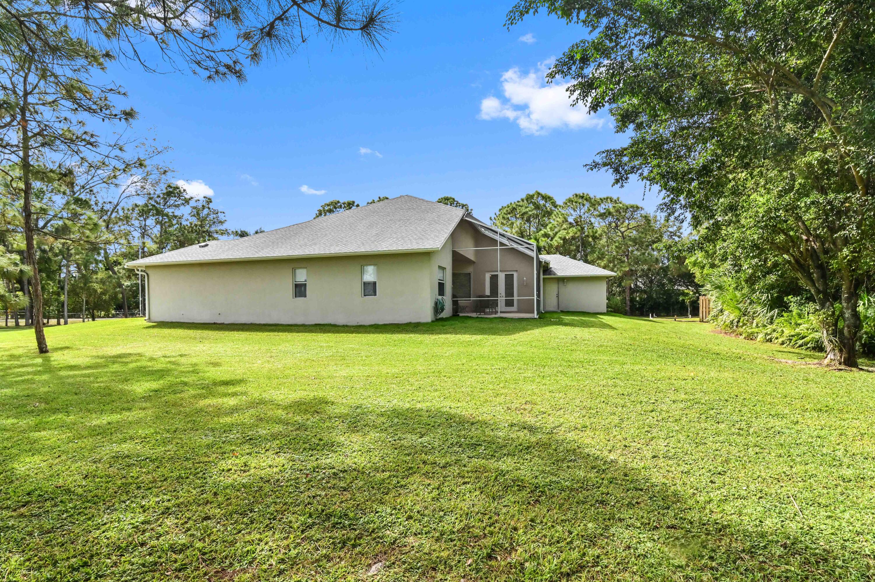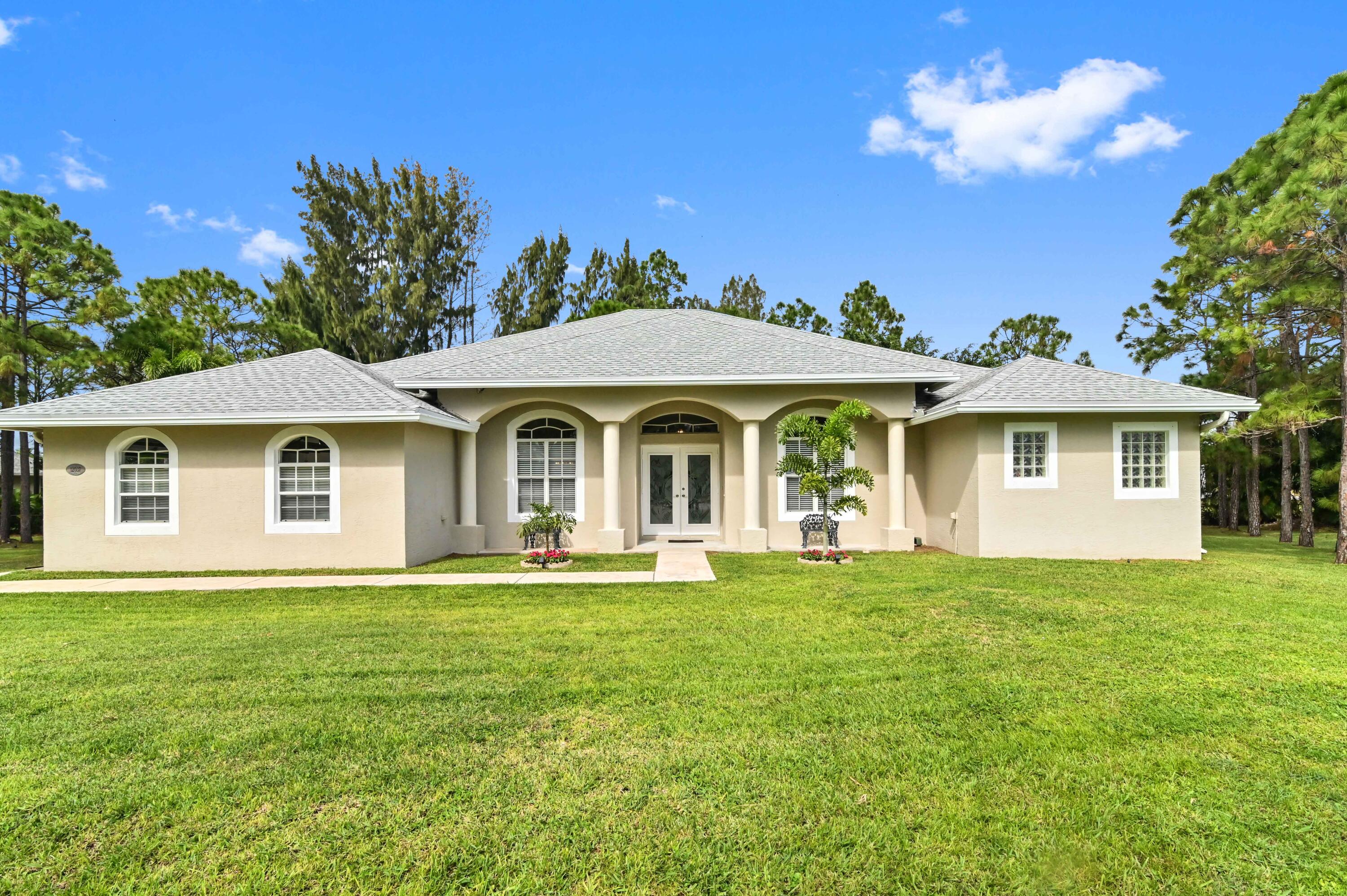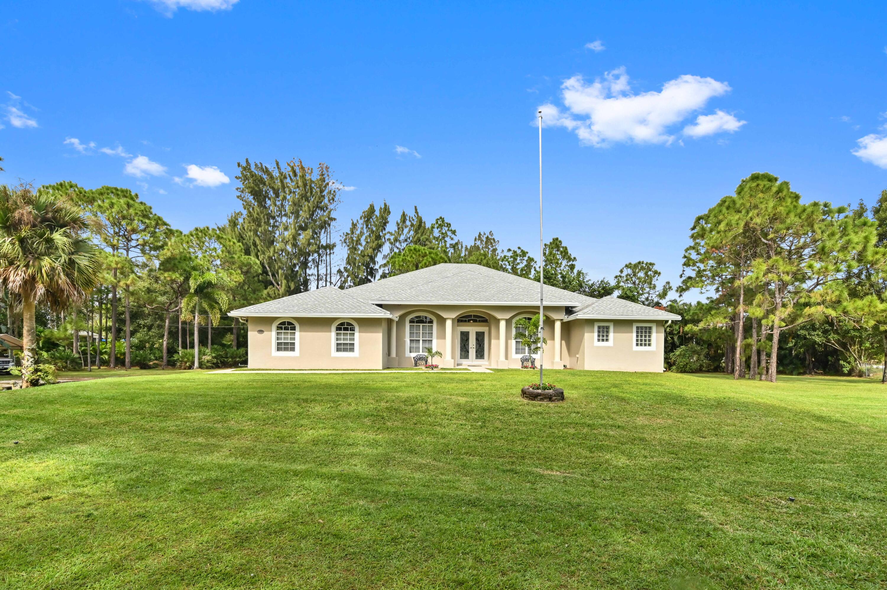 Elevate your lifestyle in this exceptional non-HOA single-story sanctuary in the heart of Acreage, Loxahatchee, FL. Nestled on a corner lot with 2 paved roads this 4-bedroom, 3-bathroom gem with a detached 4-car garage/workshop/man-cave redefines comfort and convenience, offering a lifestyle tailored to your every need. New roof installed 2021!!!As you step through the charming French door entry, you're welcomed by a grand foyer, setting the tone for the elegance that unfolds within. Recently renovated flooring and an inviting office area awaits, perfect for those who seek the ideal work-from-home space.*The refrigerator in the garage and the light fixture in the dining room do not convey.*