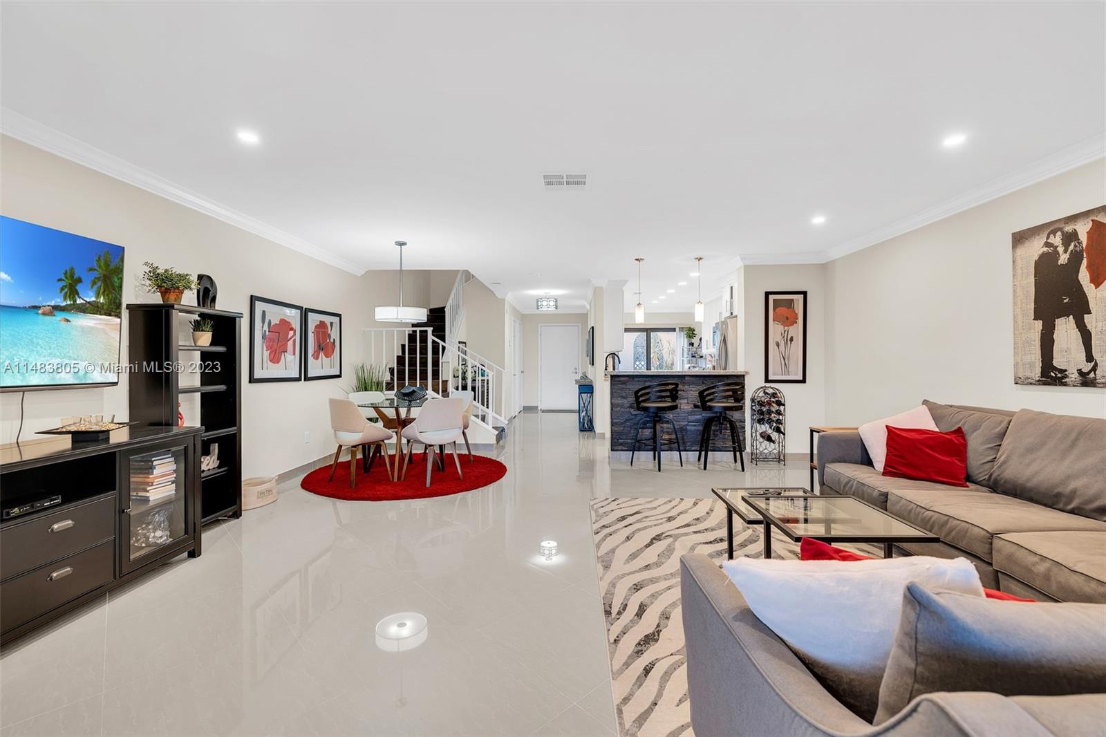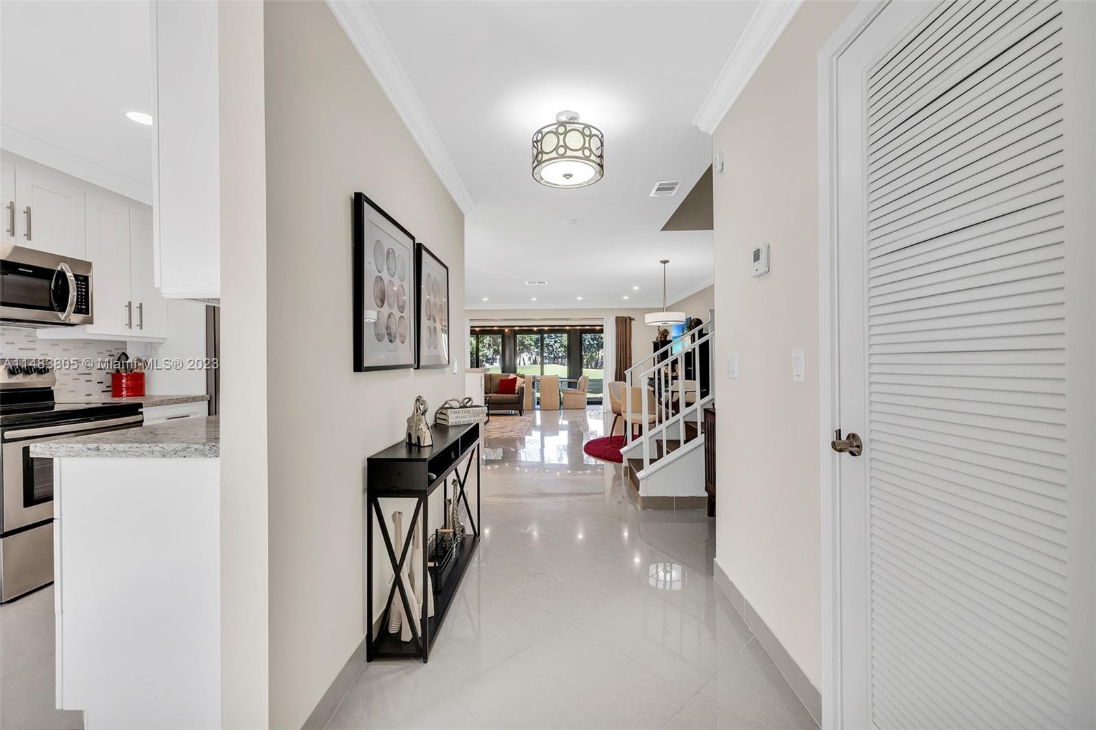 Get ready to call this updated, gorgeous townhouse HOME! Breathtaking golf course views & completely updated with impact windows & doors. Chefs' kitchen is open & offers white shaker cabinets, granite counters, custom backsplash & SS appliances. All bathrooms have been tastefully updated. 24x24 porcelain tile downstairs & high-end wood look laminate upstairs. Primary bedroom has one huge walk-in & two standard closets for ultimate storage. Upstairs offers two large bedrooms each with their own bathrooms. Huge closed in Florida room. Large living area offers loads of natural light. Decorator touches throughout include crown molding, motion sensor lit stairway, neutral colors & shiplap just to name a few. In the heart of Boca, close to everything! Min. 20% down required. 55+ community.