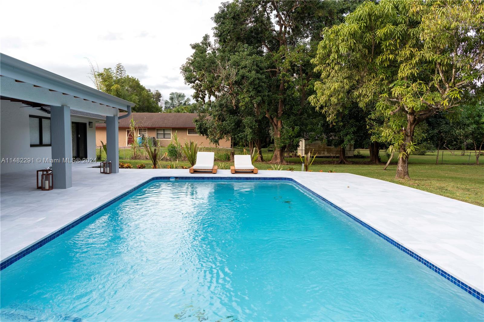 Come and enjoy this stunning and completely renovated Ranch Style Home settled on 1 Acres in sought after Southwest Ranches. This truly move in ready home offers 3 bed,2 bath plus AC garage perfect for gym. This open concept home has a gourmet kitchen with quartzite counter tops oversized island and a private walk in pantry. Porcelain wood look tile threw out entire home including garage. Bathrooms features top of the line finishes, marble tiles and custom floating vanities. New impact windows & doors. Brand new roof installed 2023.Enjoy outdoor living in this spacious covered patio with beautiful views into backyard, remodeled pool and patio all with marble pavers. This property offers the ideal combination of space and privacy with no detail spared. A dream home in a tranquil setting.