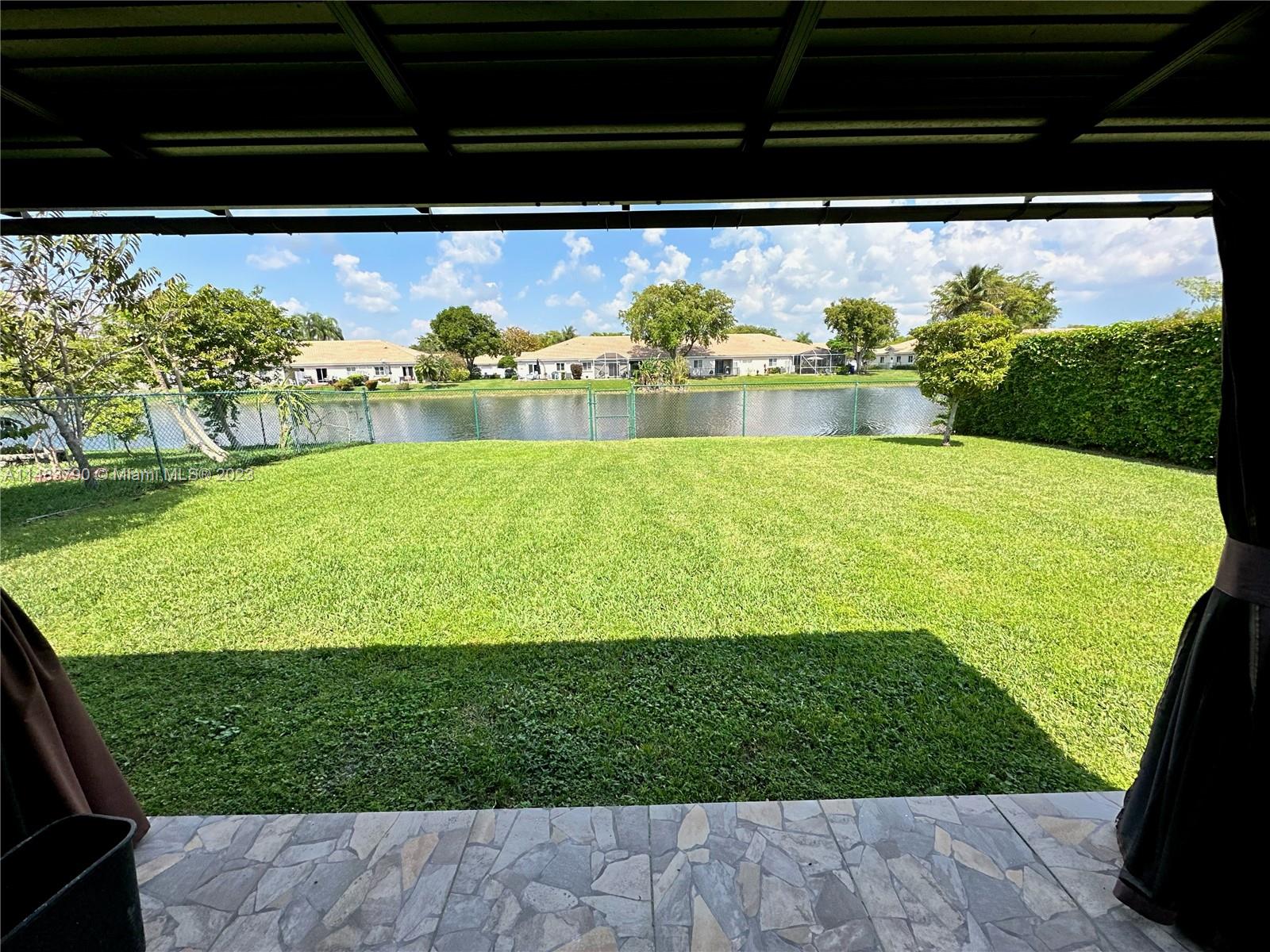 Come and experience West Miramar with this Beautiful lake view home! Close to shopping, restaurants, parks and entertainment. This home is nestled in one of Miramar's private gated communities. Features include, stainless steel appliances, washer/dryer, nice sized backyard for a pool to compliment the lake views, high ceilings, recess lighting, pergola covered patio, ring doorbell, 1 car garage, and remodeled bathrooms. The community features: swimming pool area, tennis courts, play ground, and guard gate. House has been freshly painted and maintained by the sellers.