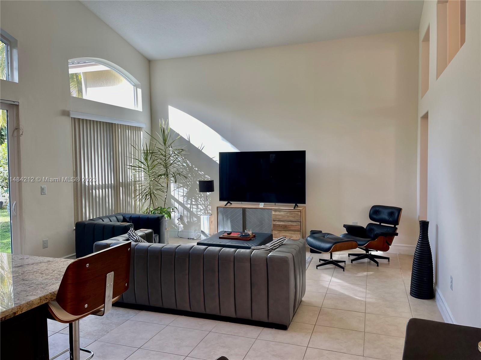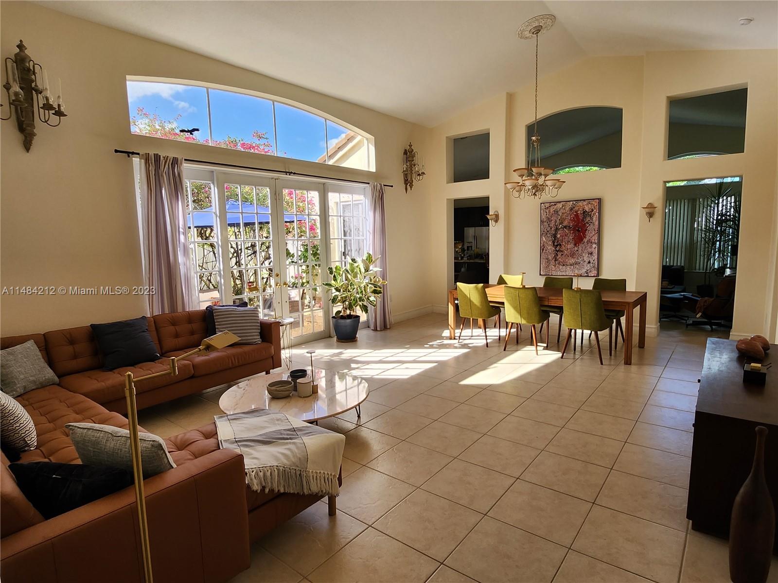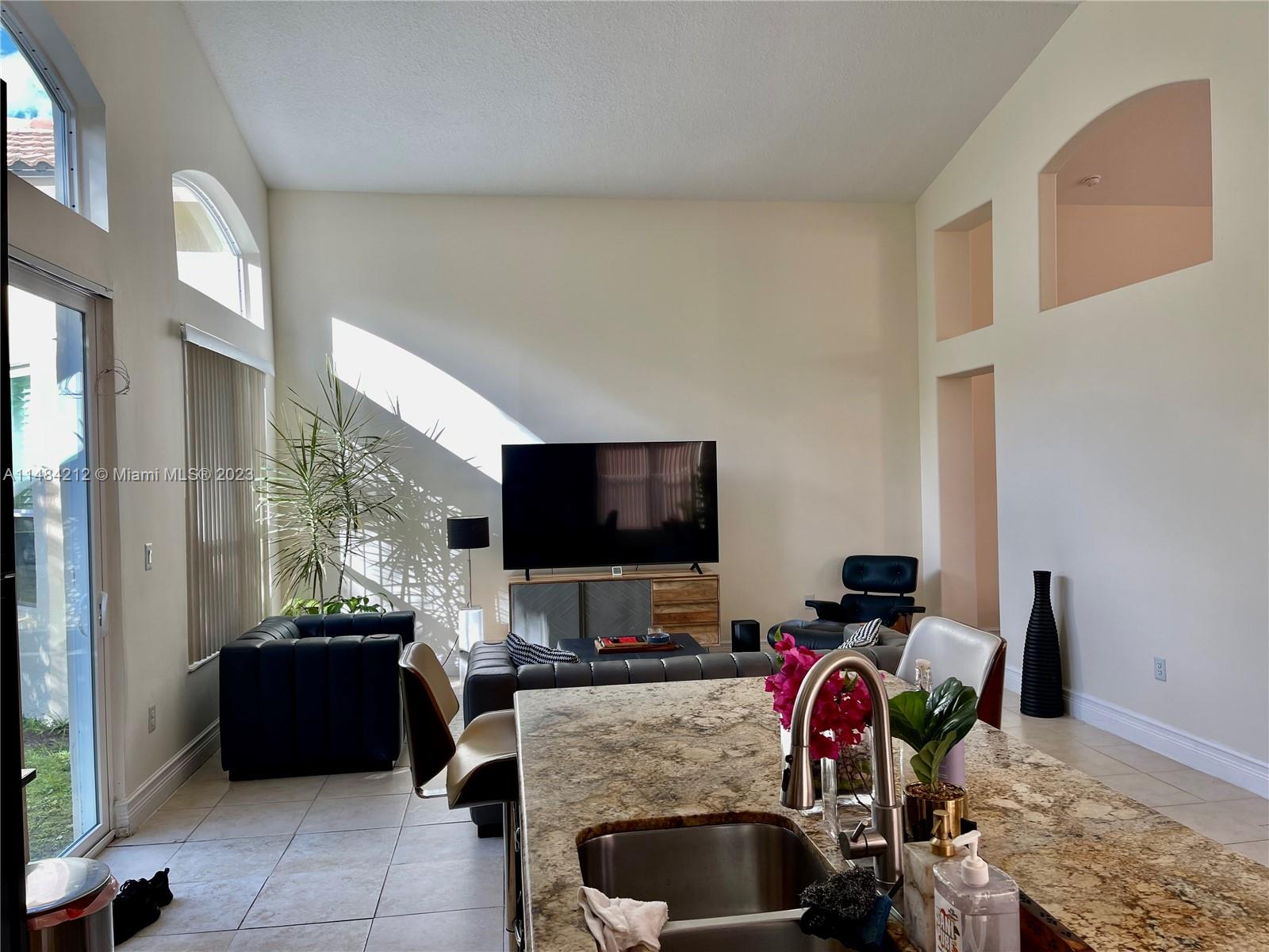 This lovely home offers great open living space w/ vaulted ceilings that provides light airy feel, nice natural light. Family room-kitchen with stainless steel appliances and cooking island. Grand primary suite w/ private bathroom, 2 car garage, half bathroom for guests, impact windows, *SOLAR PANELS* & more! Perfect backyard for gardening and enjoying the beautiful sunny south Florida weather! Located in a gated community that covers basic cable. 5 star Amenities w/ Resort style heated pool, full professional gym, children's playground, volleyball court, tennis courts, basketball court. Just minutes away from Sunset Lakes Elementary, shopping and restaurants. Windows are impact, French doors & sliders are not and have shutters. Roof is original. Don't let this opportunity pass you by!