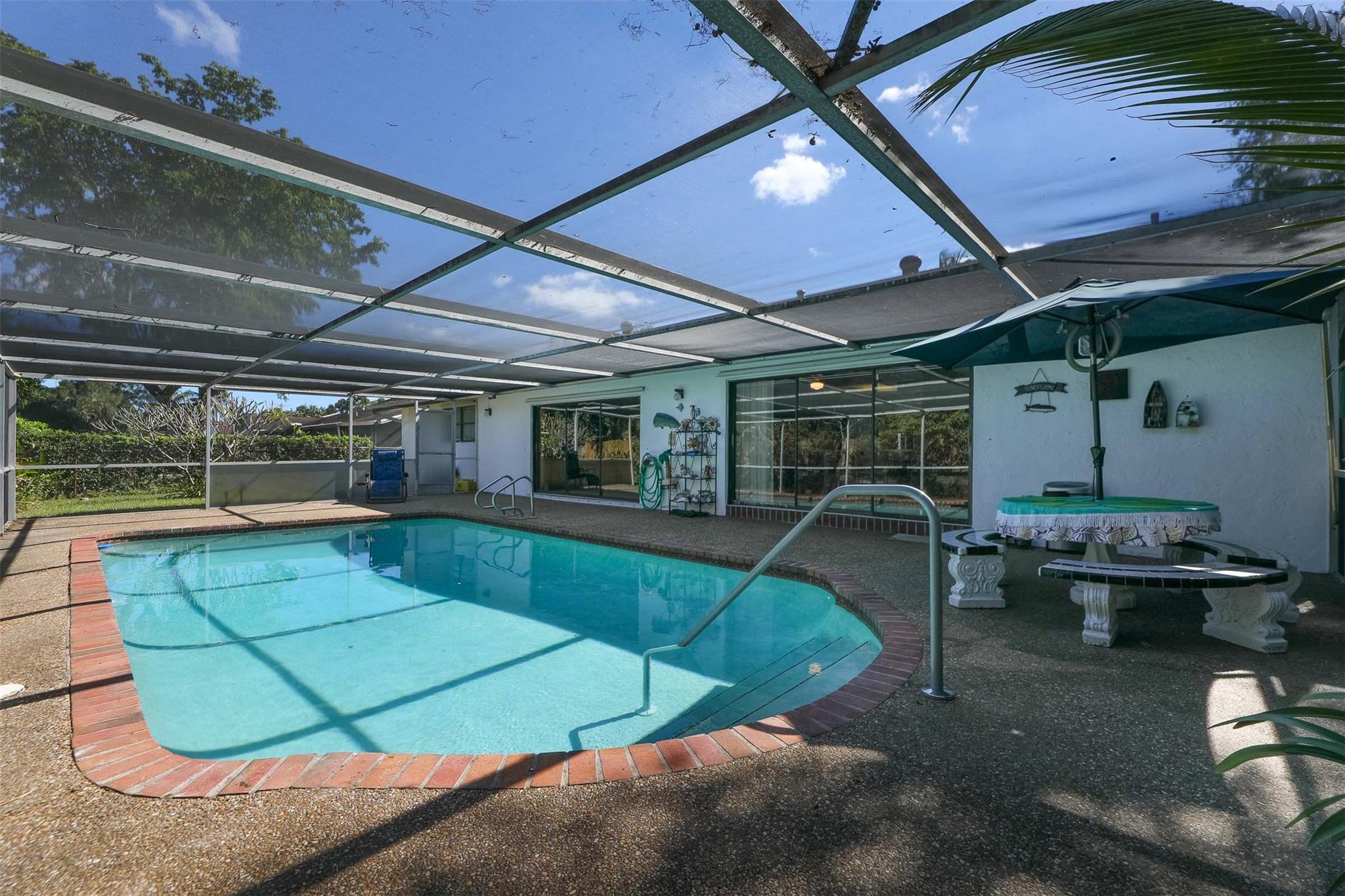 WELL SOUGHT AFTER NEIGHBORHOOD IN DAVIE, MARLBORO ESTATES. MAKE A GRAND ENTRANCE FROM THE FOYER DOUBLE DOORS INTO THE VERY LARGE LIVING ROOM WITH VAULTED CEILINGS. BIG HOME 2,154 SQ FT . 3 BEDROOMS AND 2/1/2 BATHS. 2 1/2 CAR GARAGE. SCREENED IN POOL. BEAUTIFUL CURB APPEAL ON A CUL DE SAC. HIDDEN BEAUTY. NO HOA.