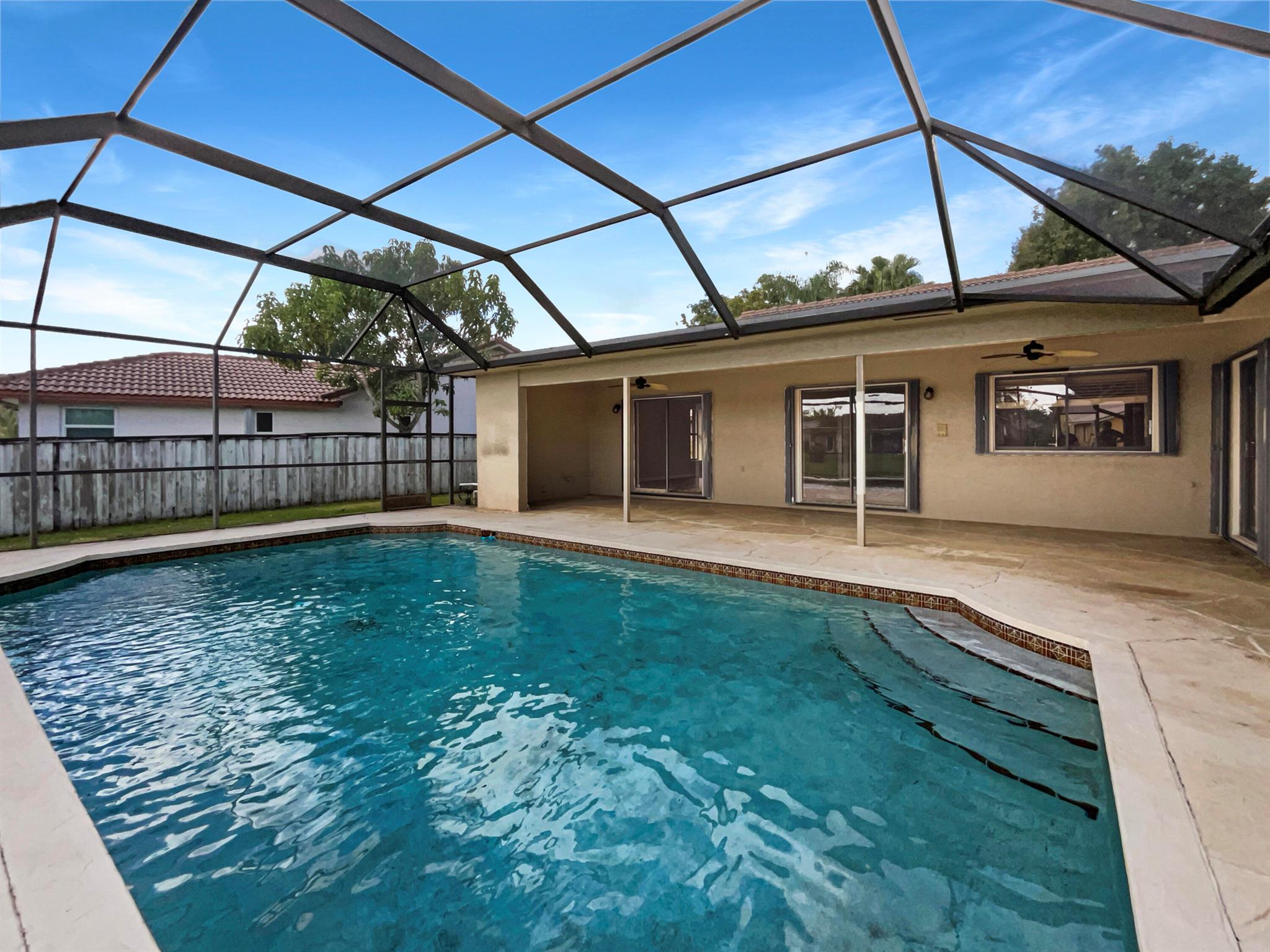 Welcome to this stunning property.The natural color palette throughout the house creates a warm and inviting ambiance, making you feel right at home. The kitchen boasts a nice backsplash, adding a touch of elegance. The master bedroom is a true retreat with a spacious walk-in closet to keep your belongings organized and easily accessible. The additional rooms offer flexible living space, allowing you to create a home office, gym, or playroom to suit your needs. The primary bathroom is a sanctuary with a separate tub, shower, Double sinks and good under sink storage in the primary bathroom ensure convenience and ample space for all. Step outside into the fenced backyard, where you'll find a private in-ground pool, perfect for relaxing or entertaining. Indulge in the covered sitting area, p