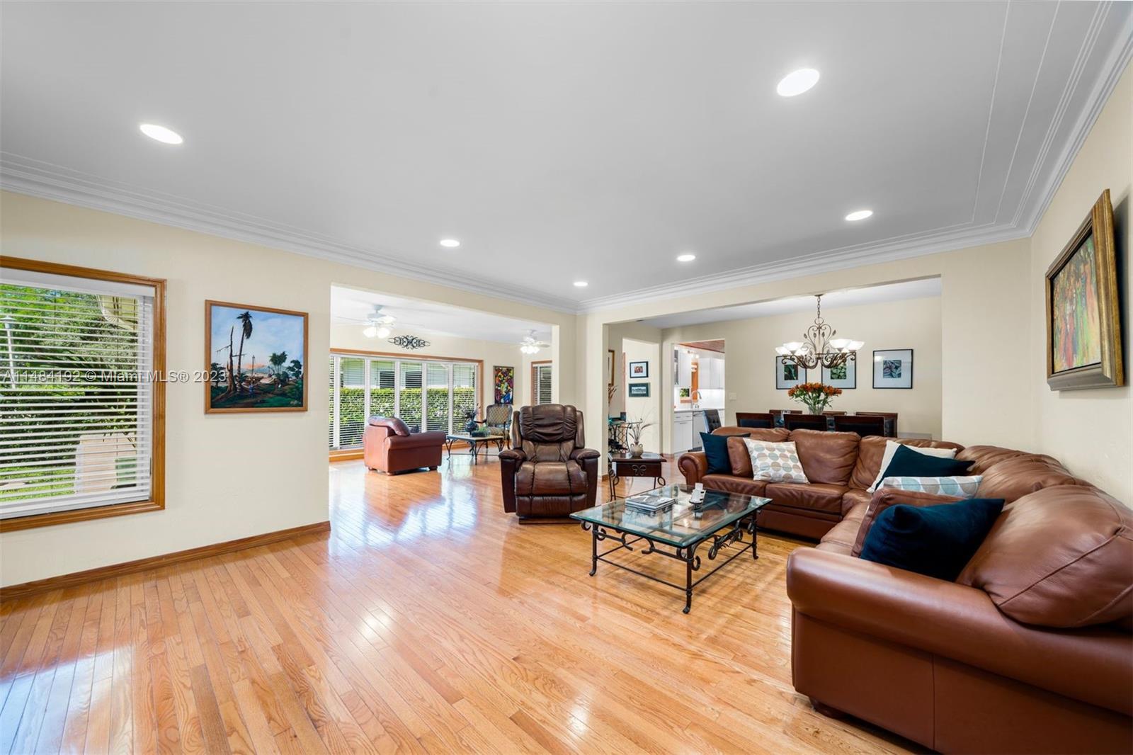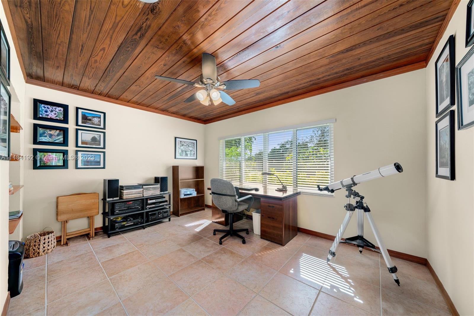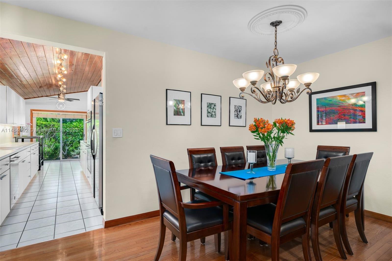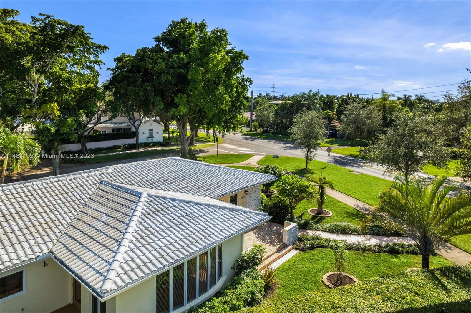 Charming 3-bed 2-bath home on a 10,000 sq ft corner lot in the heart of Coral Gables. Natural light bathes hardwood floors in the main living areas, and wooden millwork accents extend to the kitchen and bedrooms with tongue and groove ceilings. The light and airy kitchen comes with a double oven and Corian countertops. The bathrooms were remodeled in 2016; impact windows and doors and a new storm door for the 2-car garage were installed in 2017; and in 2023 a new air conditioning unit and septic tank were put in. Mature landscaping and a Calusa privacy-hedge borders the generously sized backyard, with room for plantings around existing fruit trees, or installing a deck or pool for entertaining. Within minutes of a Metrorail Station, Coral Gables Youth Center, Merrick Park and Miracle Mile.