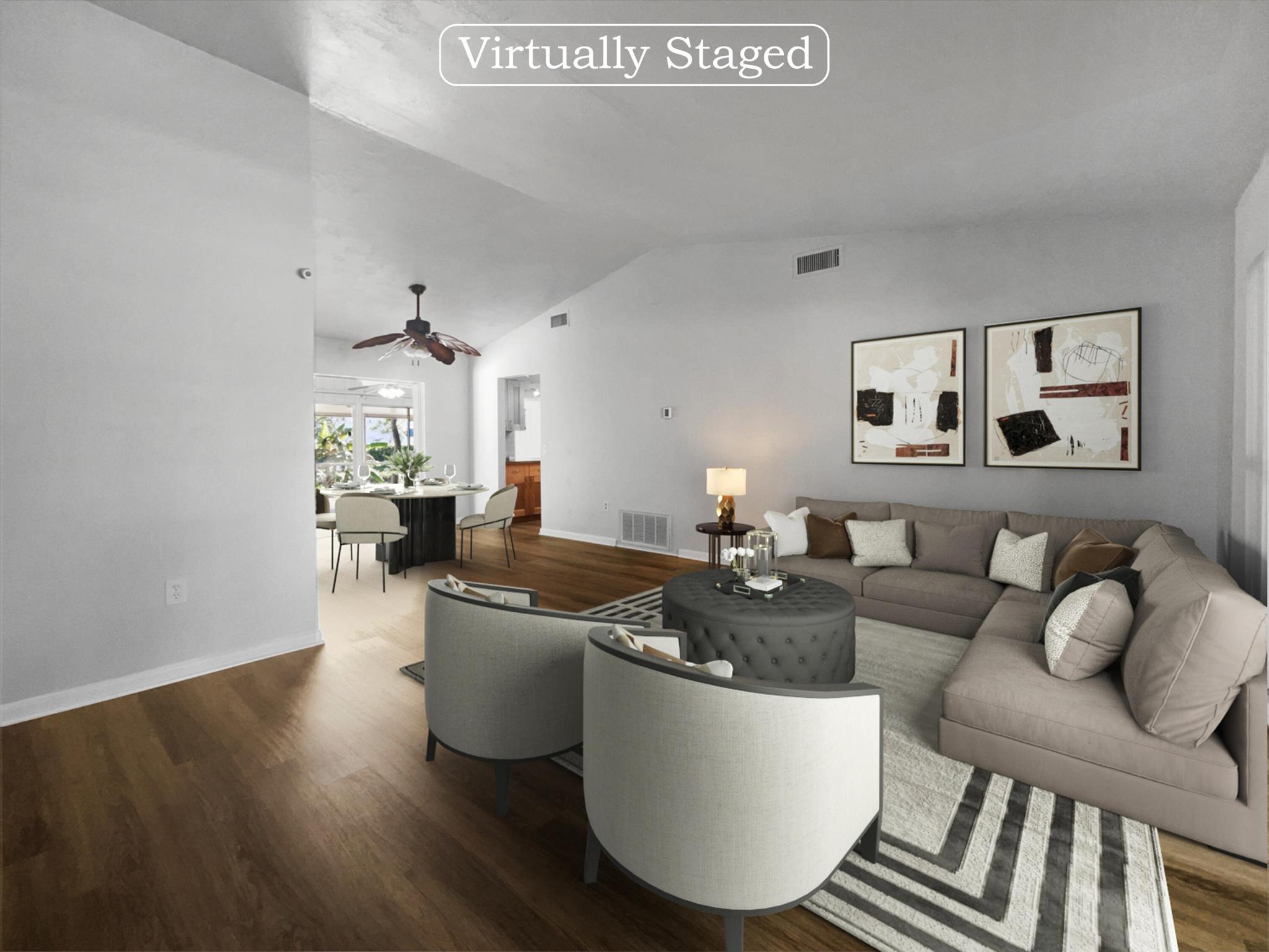 Introducing a lovely property boasting a natural color palette throughout, creating a soothing atmosphere that welcomes you into every room. The kitchen features a nice backsplash, adding a touch of elegance to the space, while other rooms offer flexible living options to suit your needs. The primary bathroom provides ample under sink storage, ensuring a clutter-free environment. Step outside and find a covered sitting area in the backyard, perfect for enjoying the fresh air and peaceful surroundings. This property also benefits from fresh exterior paint, giving it a crisp and inviting appearance. With partial flooring replacement in some areas, this home is ready for you to make your mark. Don't miss the opportunity to make this charming property your own.