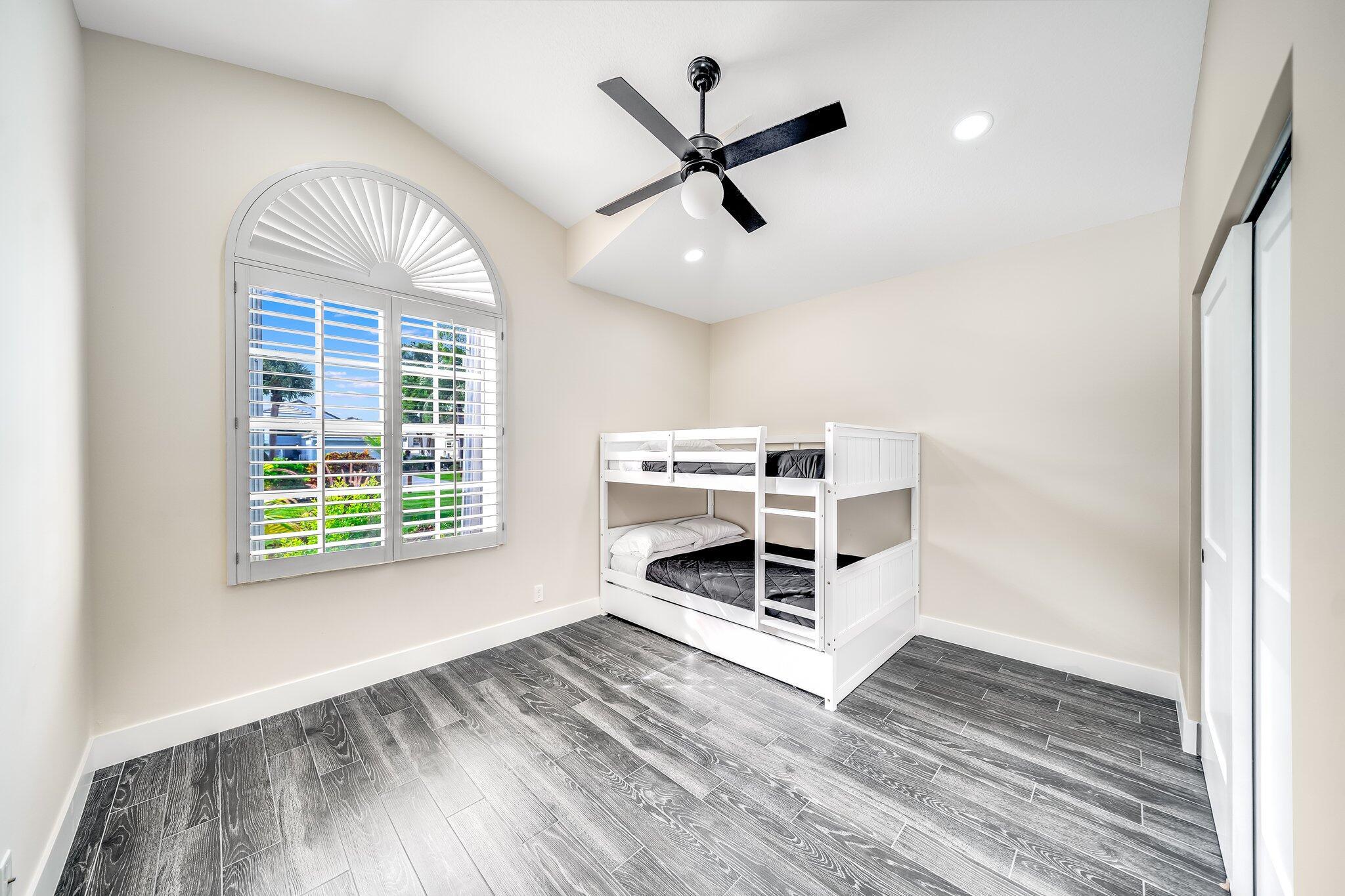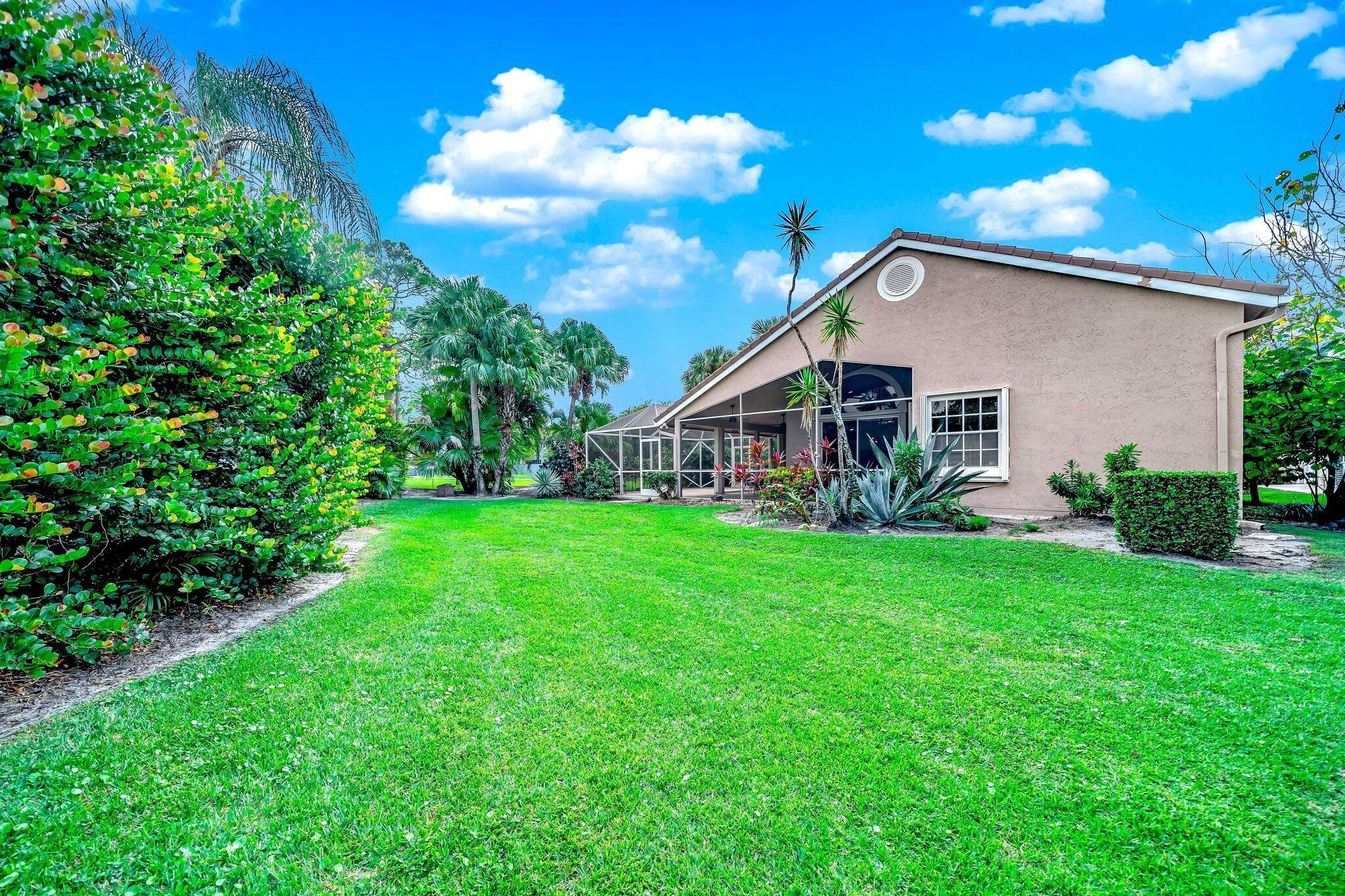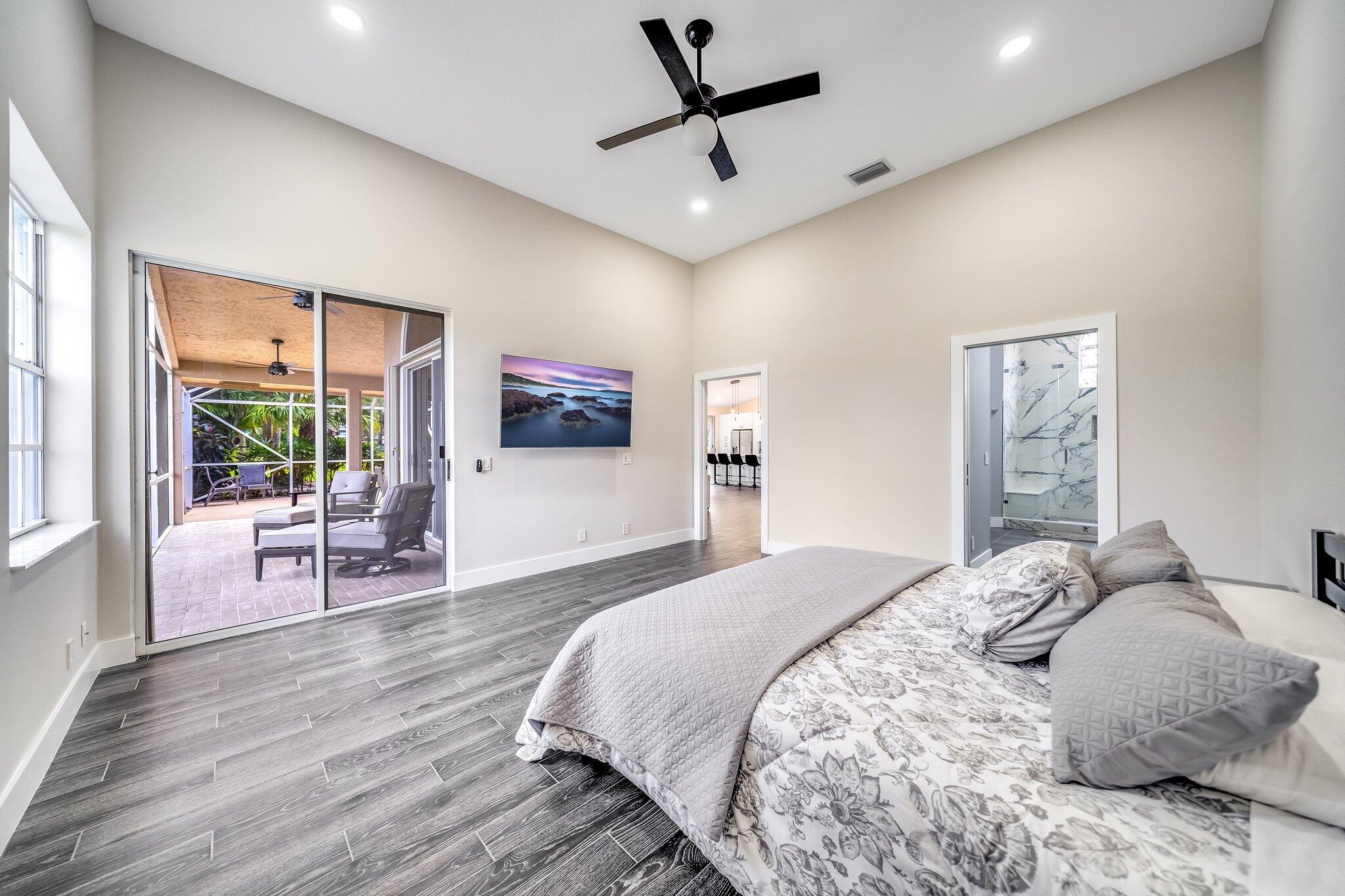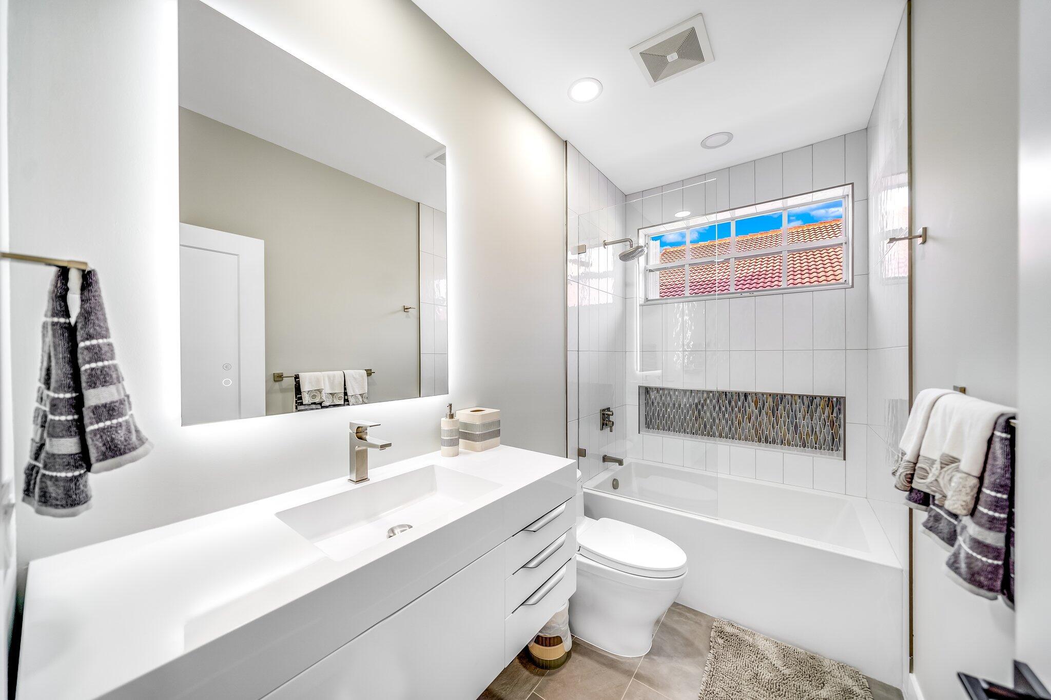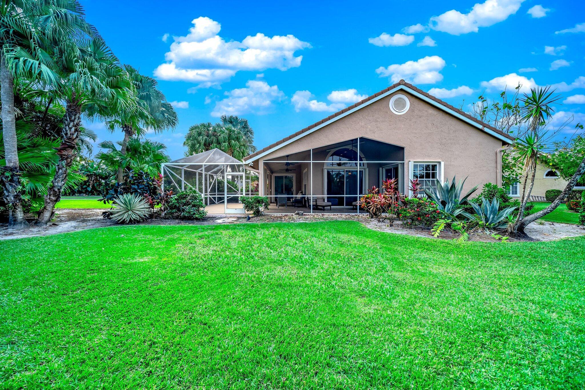 Nestled in the heart of Palm Beach Gardens, within the highly desirable Golf and Country Club Community of Eastpointe, this fully renovated 3 bedroom, 2 full bath property is move-in ready! Remodeled in 2023, it features a bright open spacious living area boasting high ceilings, the gourmet kitchen features a beautiful island, stainless steel appliances and separate bar area. Multiple sliders leading to the screened lanai extend the living area to the outdoors. The wrap around patio, which can be accessed from the kitchen, living room and primary bedroom, is surrounded by lush landscaping and offers plenty of room to relax in privacy and enjoy the fresh air. The primary bedroom boasts high ceilings, a large custom designed walk-in-closet & a brand new luxurious en-suite (cont.)