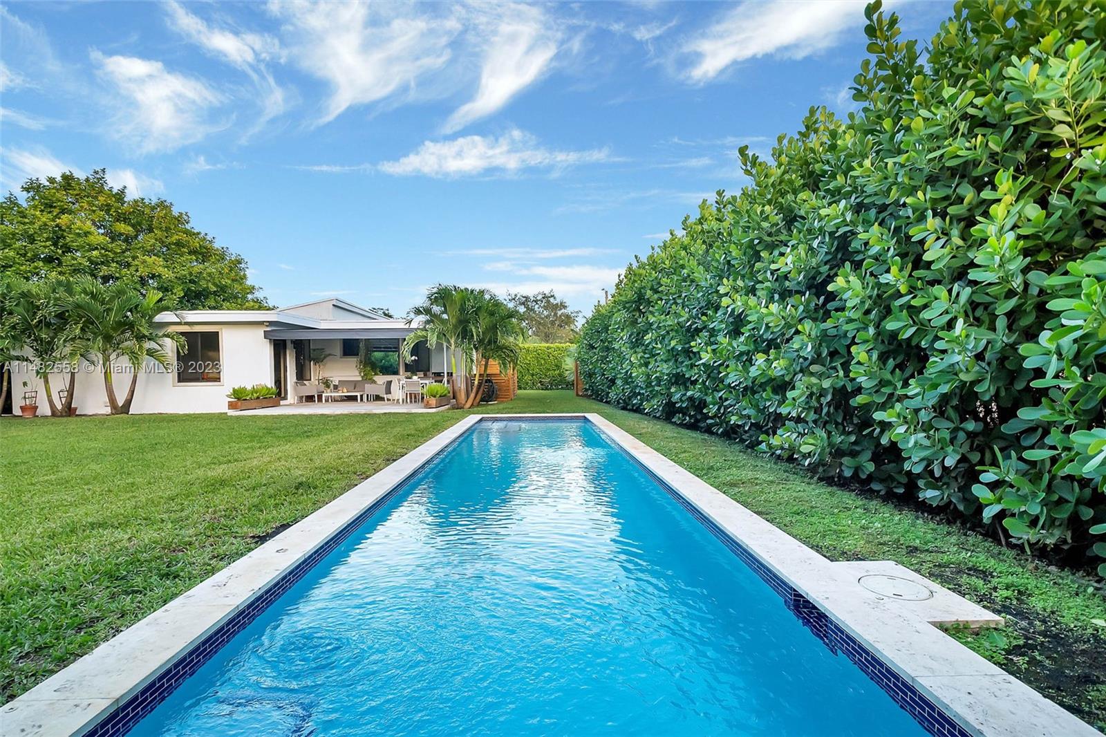 Welcome to this stunning, move-in ready pool home on a 10,800 sq ft lot in the heart of South Miami. This immaculately maintained residence features light-filled living spaces, a brand new pool, outdoor shower and expansive garden. The newly renovated kitchen, 3 bedrooms, and 2 modern-style baths with frameless glass shower enclosures provide a luxurious touch. 2019 total renovation- new roof, updated electrical and plumbing systems, and impact windows throughout. Step outside to your own private oasis – a covered terrace overlooking the oversized, fenced backyard and a sparkling pool. Located in a quiet neighborhood, this property is just moments away from vibrant South Miami.