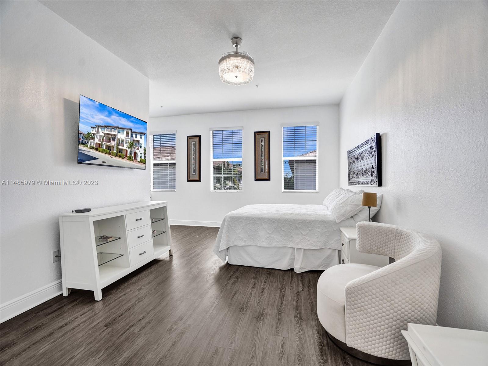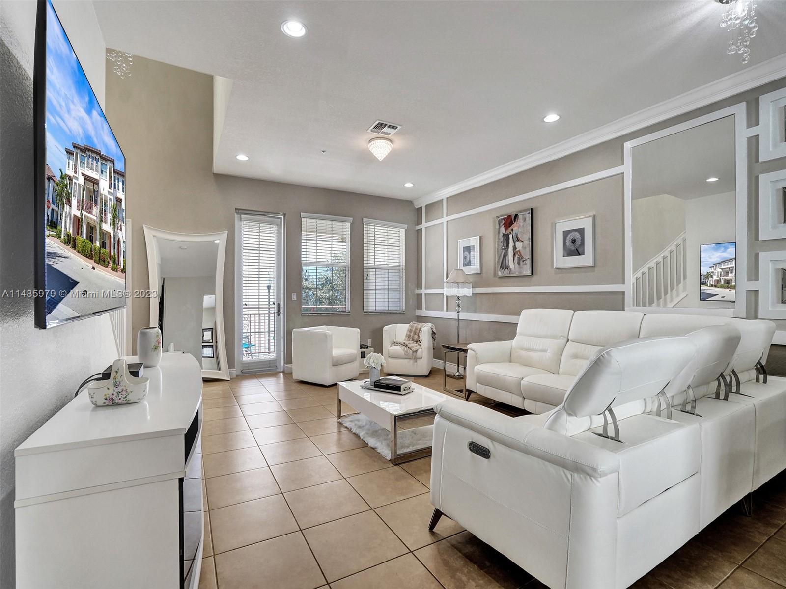 Discover the largest 3-story townhome model in Montclair's gated community in Miramar. This residence boasts 3 bedrooms, 3.5 bathrooms, and a 2-car garage with hurricane impact windows and a spacious balcony. The kitchen features 42" European-style wood cabinetry, a large island, quartz countertops, and stainless-steel Whirlpool appliances. Stylish upgrades include an elegant glass chandelier, tile, and laminate flooring. The master bedroom offers Ikea custom closets. Centrally located with amazing amenities including a clubhouse, gym, pool, and more. A ground-floor bedroom with an ensuite bathroom adds convenience. Residents can unwind in the scenic pool area overlooking a serene lake. Enjoy tranquility in this quiet, upscale community.